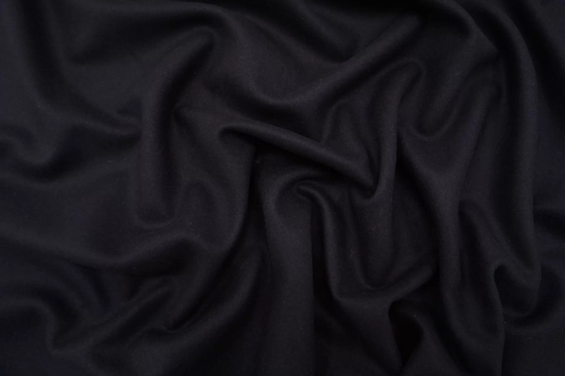 Итальянская пальтовая шерсть в очень темном синем оттенке. Средняя по толщине, пластичная, не просвечивает. Приятная тактильно, не колется. Подойдет для пошива пальто.