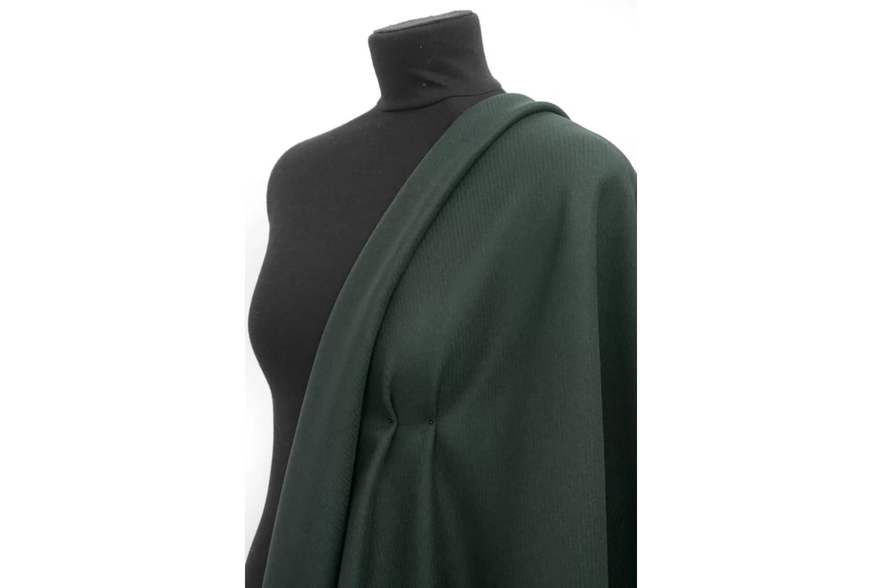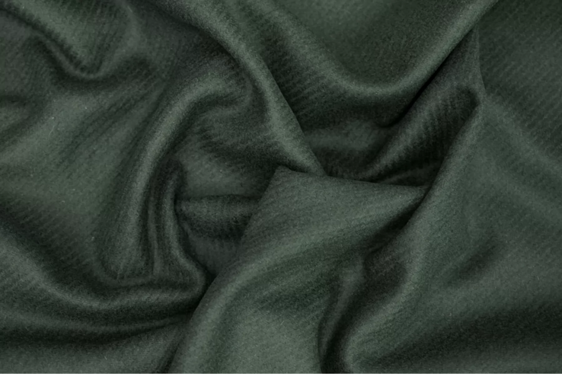Пальтовая шерсть диагонального плетения в ненасыщенном темно-зеленом оттенке. Материал тактильно мягкий, суховатый - чувствуется, что шерсть, но не колется, гладкий. С легким лоском. Не просвечивает. Не тянется. Материал плотненький , нетолстый ~1 мм. Неплохо держит форму. Сминается, но восстанавливается. Прекрасно подойдет для пошива пальто любого кроя - от классического до пальто-рубашки.