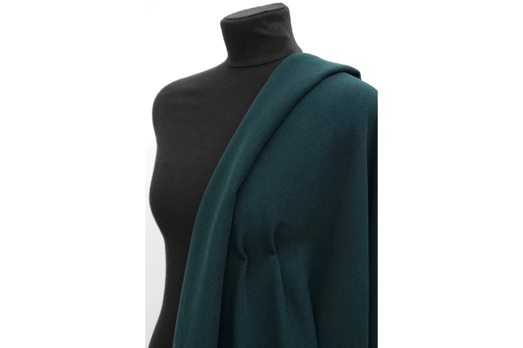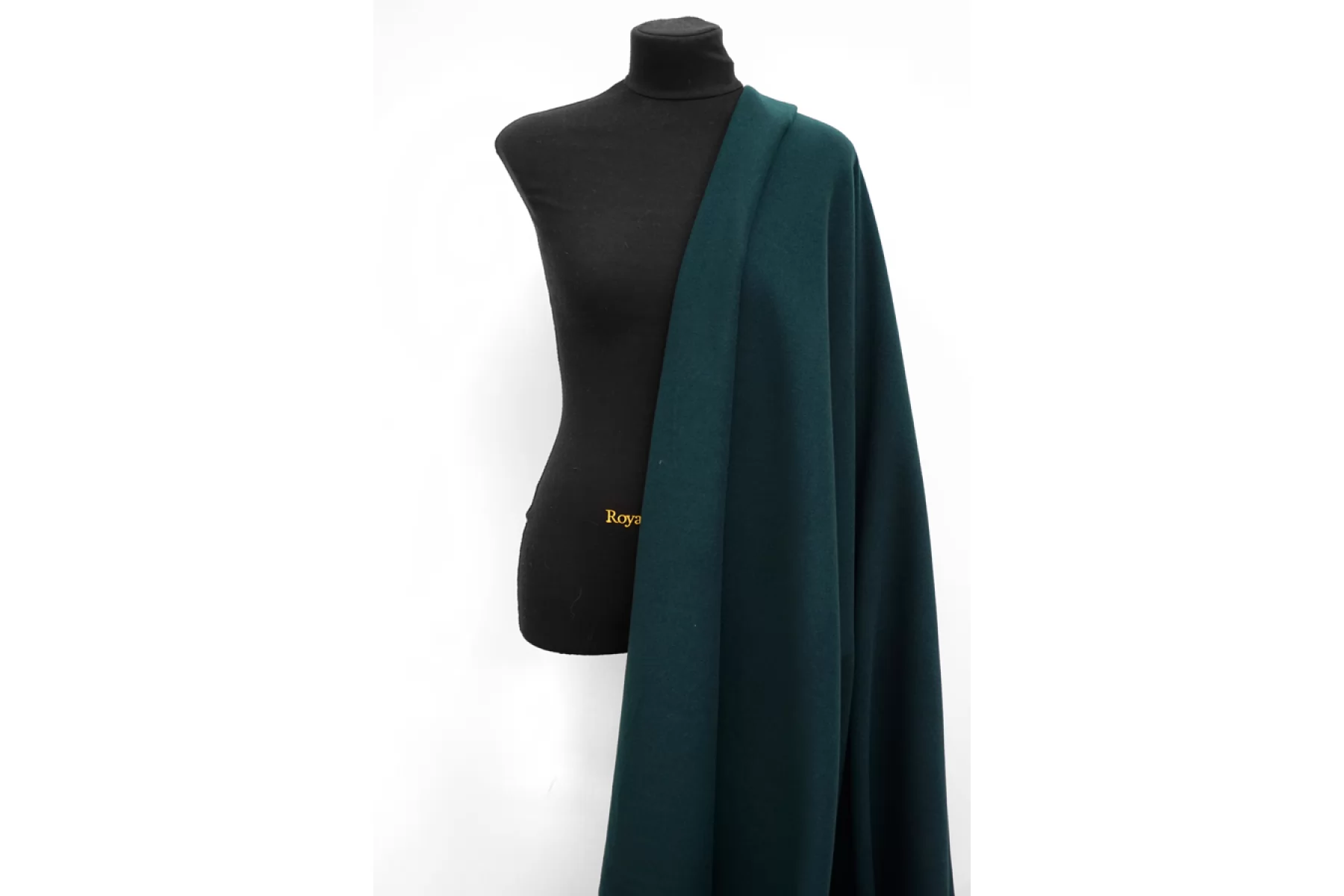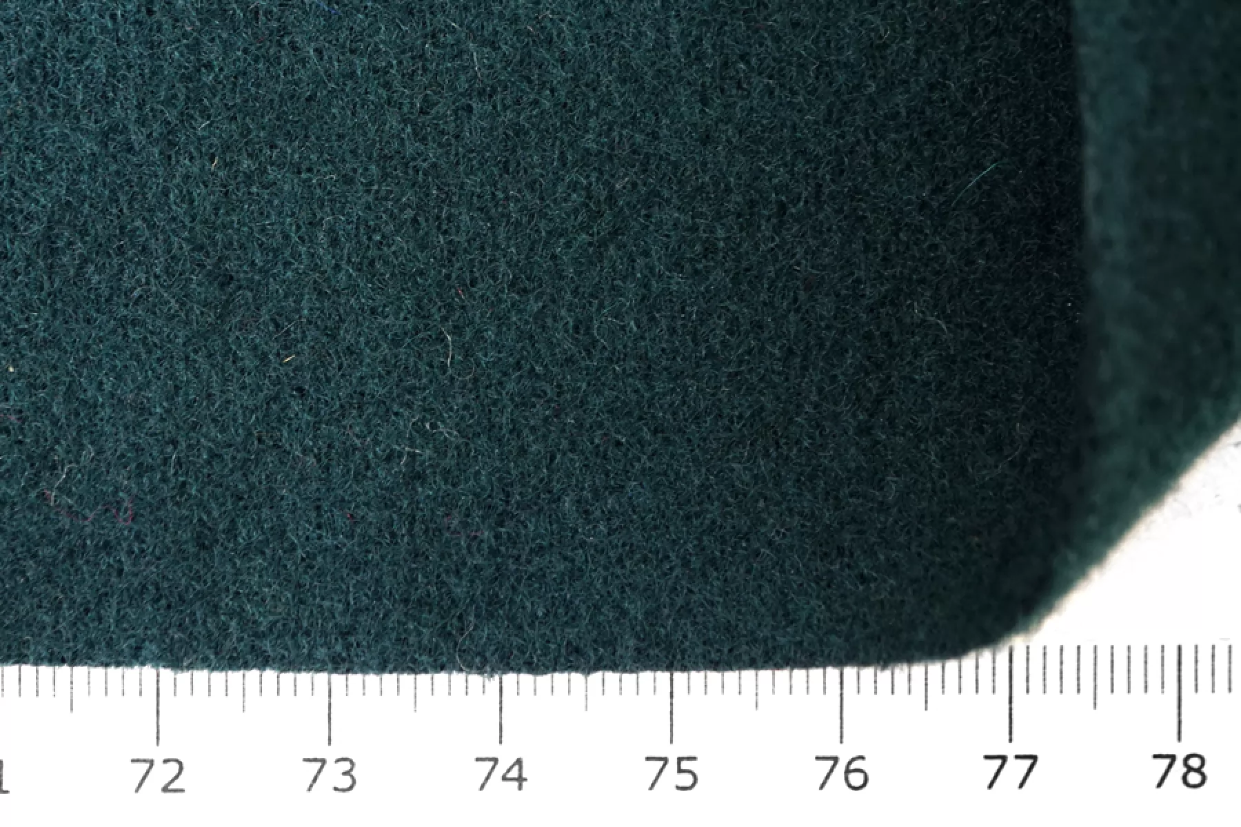 Прекрасный пальтовый велюр из шерсти красивого сине-зеленого оттенка. Ворс короткий ненаправленный. Материал очень мягкий и приятный наощупь. Толстенький , примерно 1 мм толщиной. Совсем немного суховата наощупь, не колется. Не тянется. Форму держит. Не мнется. Пластичный, не просвечивает. Красиво драпируется. Отличный вариант на пальто. Уход деликатный.