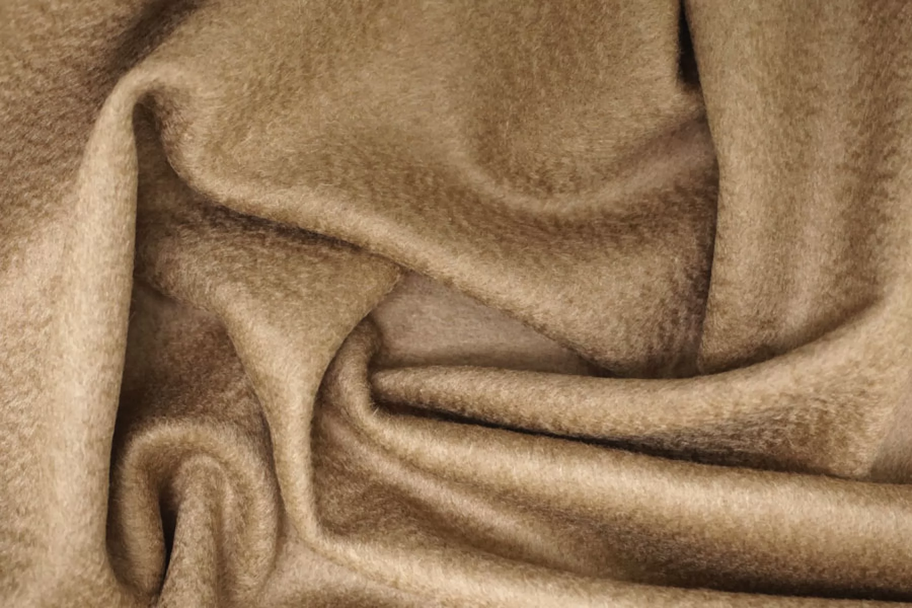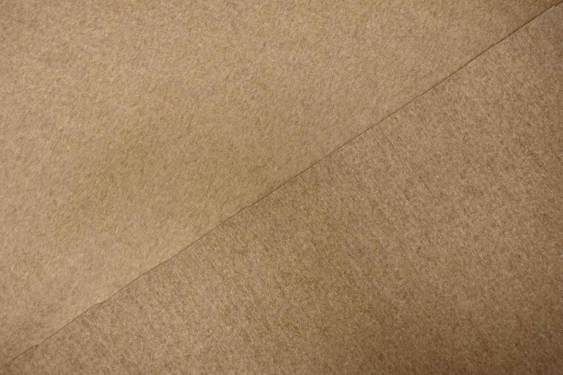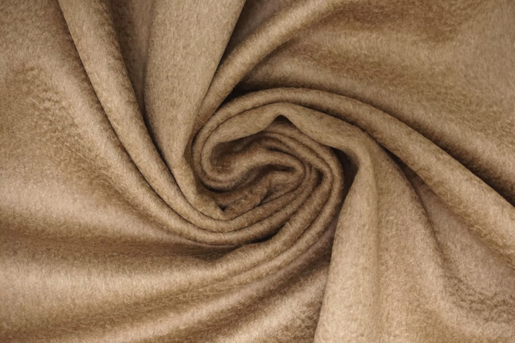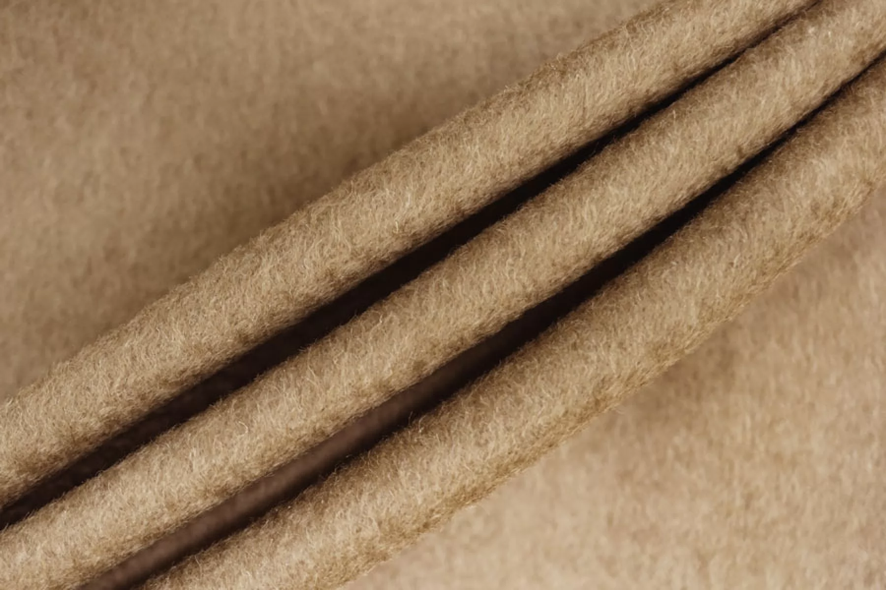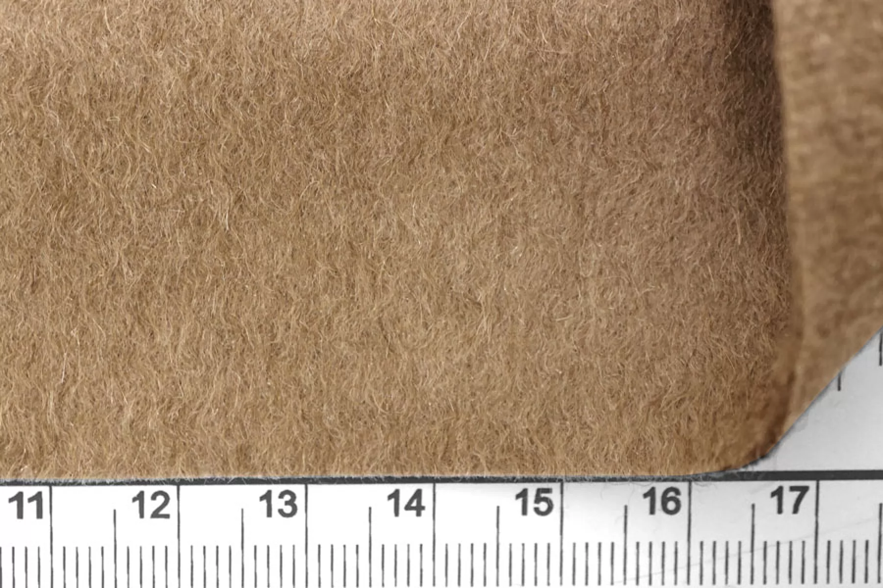 Шикарная пальтовая ткань из шерсти верблюда в чуть высветленном, бежевом оттенке кэмел. Невероятно мягкий и приятный наощупь. Имеет короткий направленный ворс (около 4 мм). Характерная для zibeline красивая волна на поверхности. Не колется. Не толстый, около 1,5 мм толщиной. Пластичный, форму держит, не мнется. Шьем рубашки, теплые жакеты и облегченные пальто. Уход - деликатный.