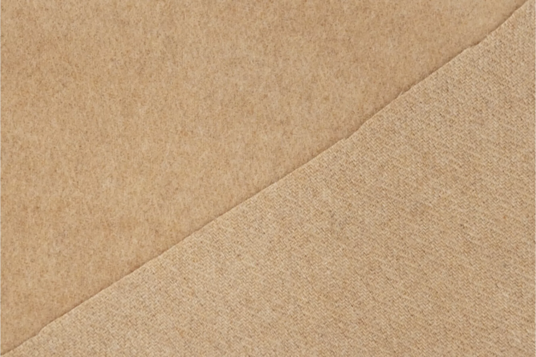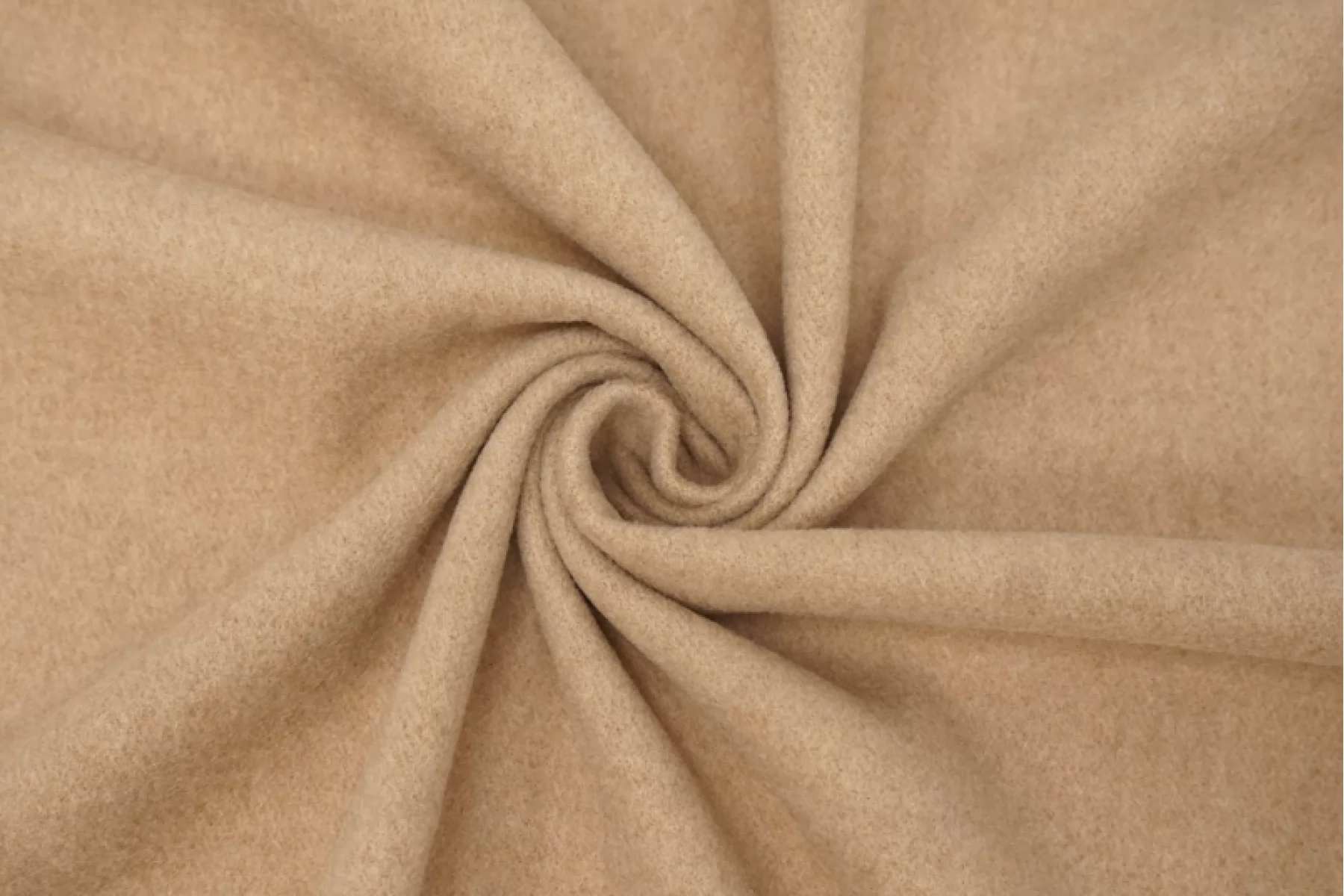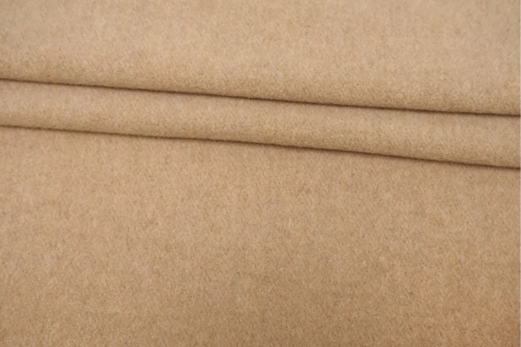 Достаточно тонкая, но плотненькая, пальтово-костюмная шерсть бежевого оттенка. Тактильно приятная и очень мягкая, суховатая. Лицевая сторона с легким ворсом, а с обратной стороны читается плетение елочкой. Слегка заметен контур силуэта, если смотреть прямо на просвет. Чувствуется, что шерсть, но совсем не колется. Не тянется. Слегка сминается, но восстанавливается. Отличный вариант для пошива верхней группы одежды, а также костюмных вариантов и мягких жакетов.