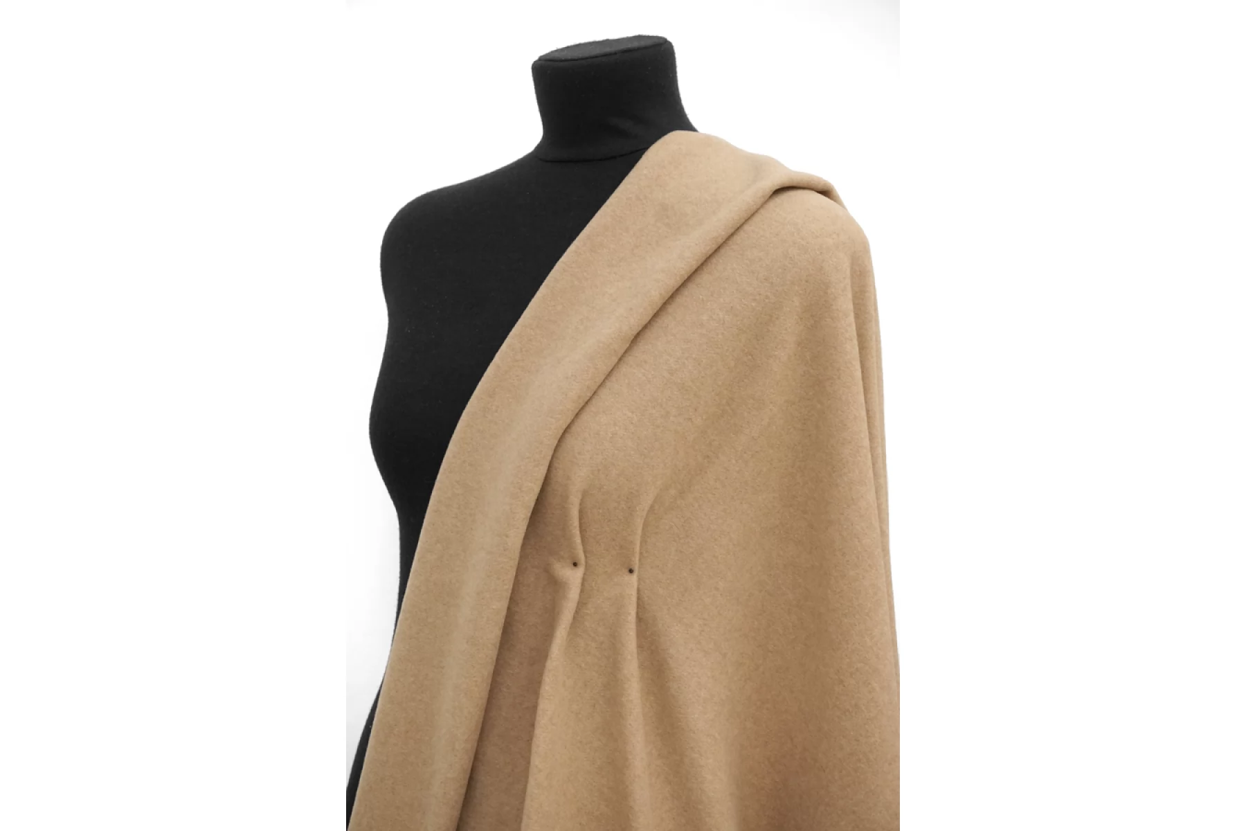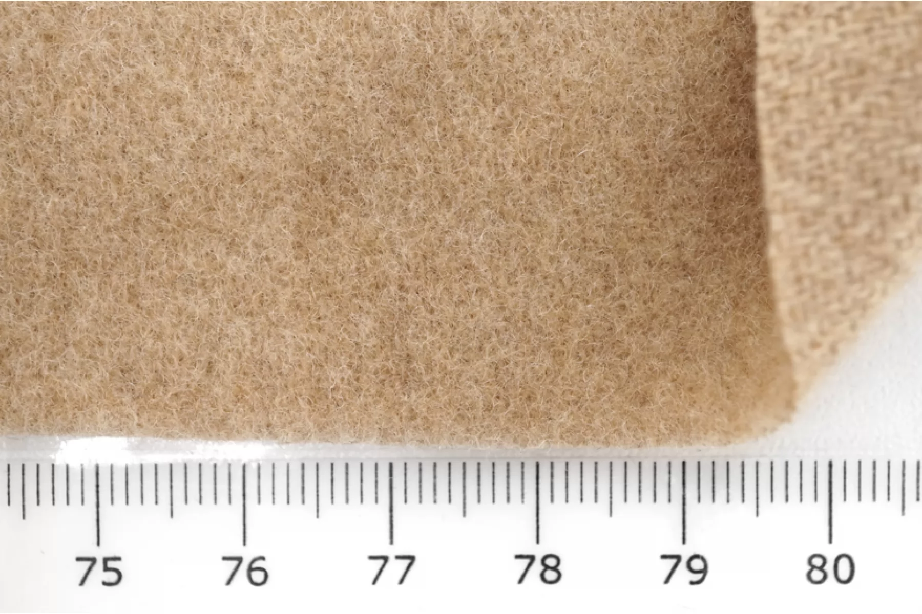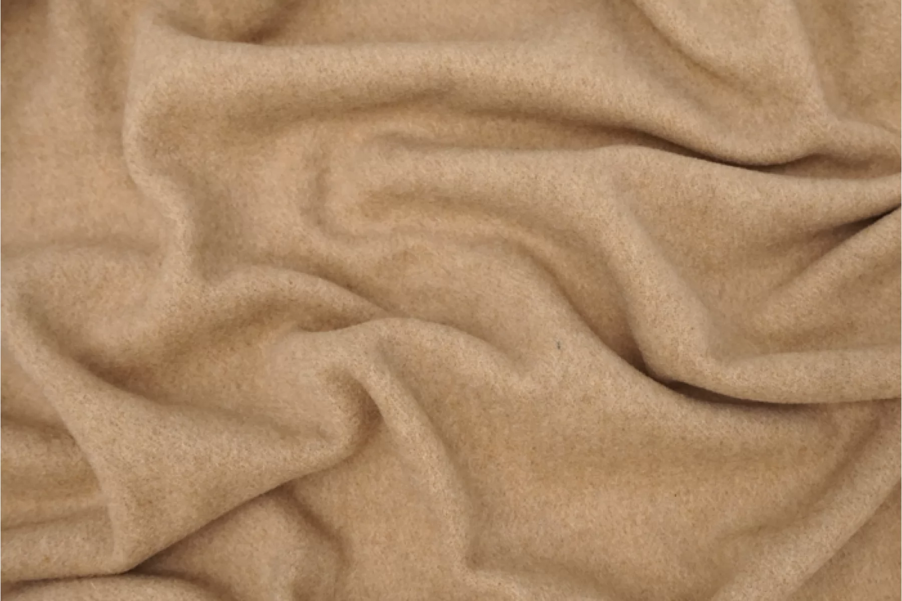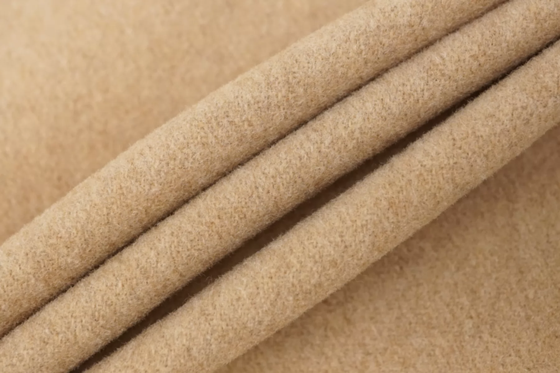 Достаточно тонкая, но плотненькая, пальтово-костюмная шерсть бежевого оттенка. Тактильно приятная и очень мягкая, суховатая. Лицевая сторона с легким ворсом, а с обратной стороны читается плетение елочкой. Слегка заметен контур силуэта, если смотреть прямо на просвет. Чувствуется, что шерсть, но совсем не колется. Не тянется. Слегка сминается, но восстанавливается. Отличный вариант для пошива верхней группы одежды, а также костюмных вариантов и мягких жакетов.