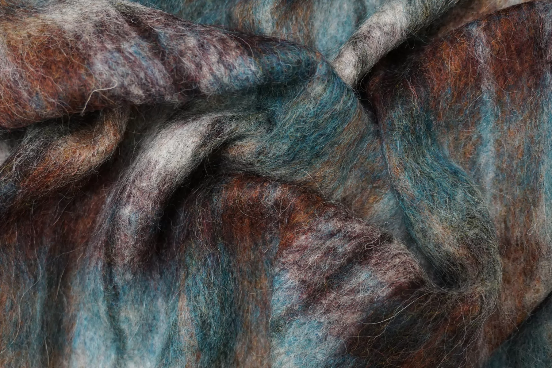 Характеристики: Состав 40% мохер 32% шерсть 28% акрил. Плотность ~415 гр/м2. Ширина 152 см.