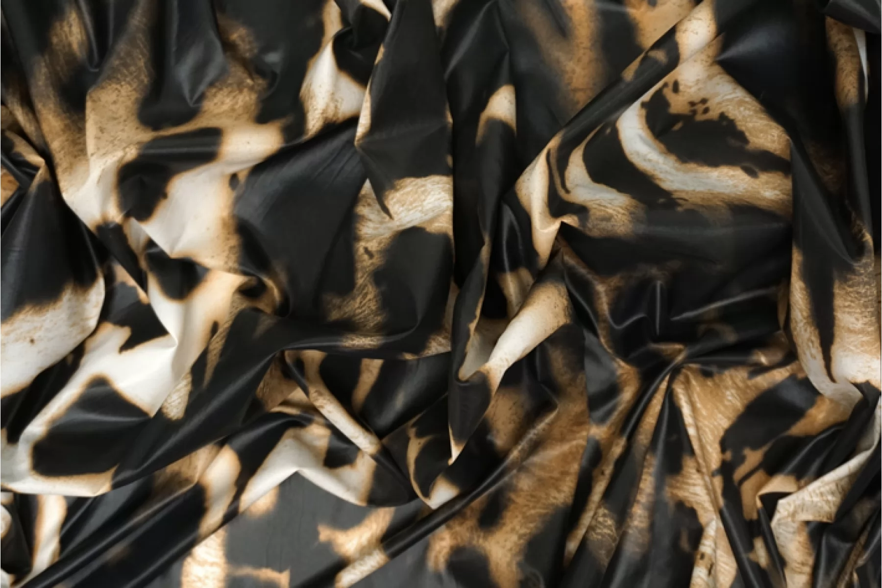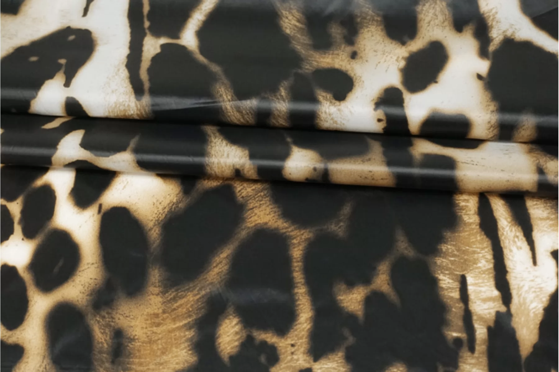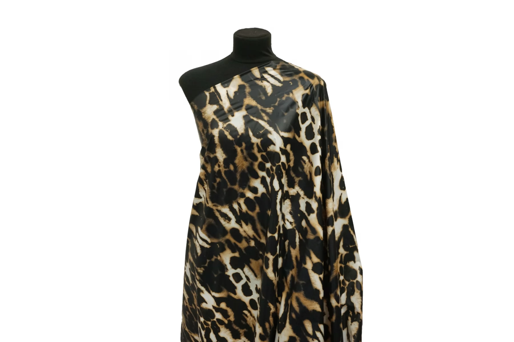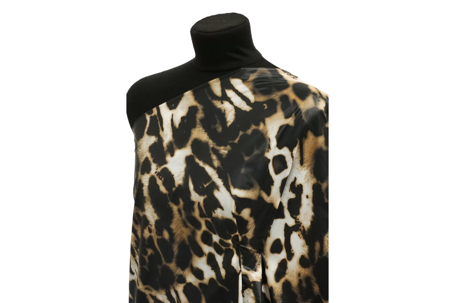 Плащевый плотный и тонкий нейлон с рисунком пятен леопарда с имитацией фактуры шерсти. Ткань с матовым лоском, гладкая, мягкая и приятная. Ветрозащитная, капли легко скатываются и не впитываются. Слегка сминается. Не просвечивает. Шьем куртки, плащи и пуховики (простегать с наполнителем и подкладкой).