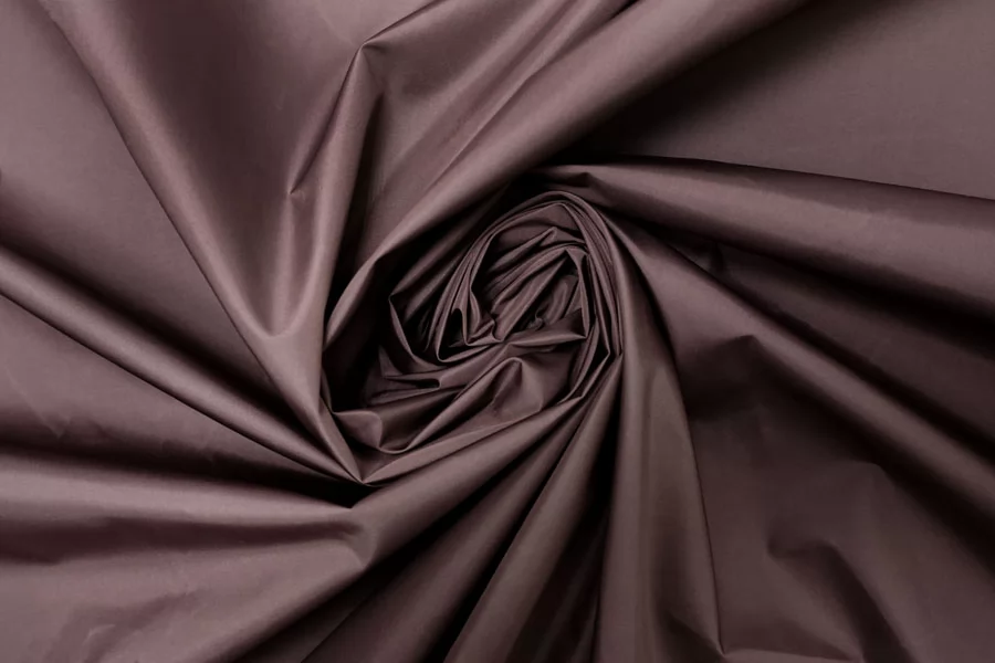 Плащевка тонкая, цвет приглушённый, спелой черешни от MAX MARA. Обладает матовым отблеском. Тактильно очень приятная, мягкая. Немного шуршит. Плотная, легкая. Ветрозащитная, вода скатывается с поверхности но под сильным дождем со временем начинает промокать. Сминается. Может слегка просвечивать силуэт. Слегка держит форму, пластичная. Прекрасно подойдет для пошива дождевика, куртки, плаща, жилета (простегать с наполнителем и подкладкой).
