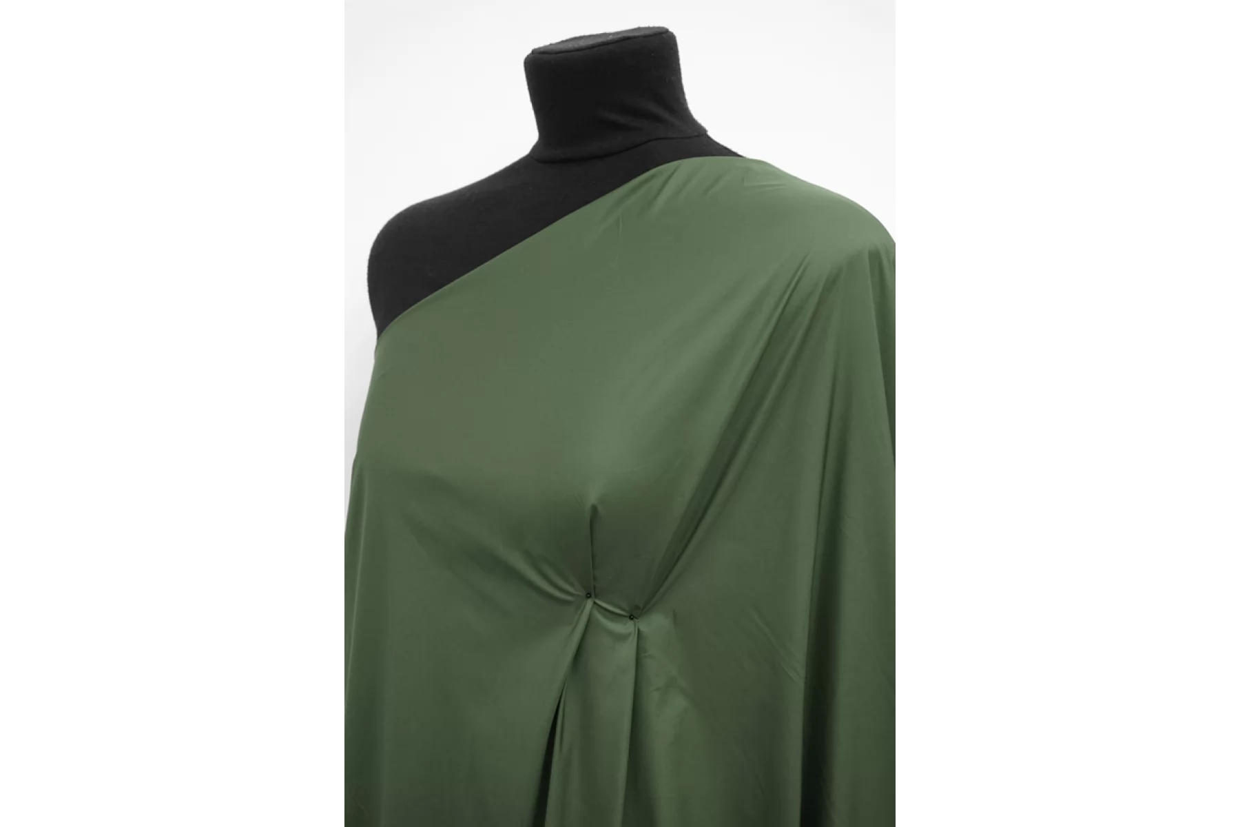Плащевая тонкая ткань зеленого оттенка от MAX MARA. Матовая, приятная, мягкая. Плотная, легкая. Ветрозащитная, капли легко скатываются, но не влагостойкая - спустя 10 минут капли начинают впитываться в материал. Слегка сминается. Отлично подойдет для пошива куртки, плаща(простегать с наполнителем и подкладкой).