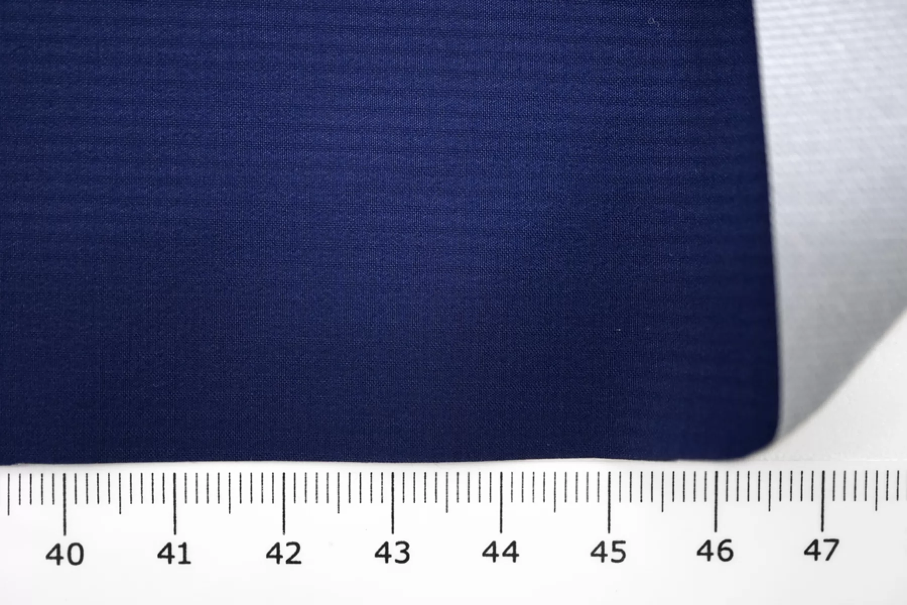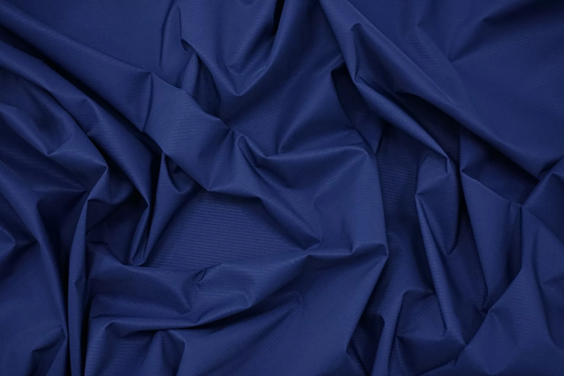 Плащевая ткань фактурная в темно-синем цвете имеет мембрану (100% полиамид) между тканью и дублерином (100% полиэстер). Плотная, тонкая, легкая, вода стекает и не впитывает, ветрозащитная. Подойдет для пошива куртки, плаща, пуховика (простегать с наполнителем и подкладкой).
