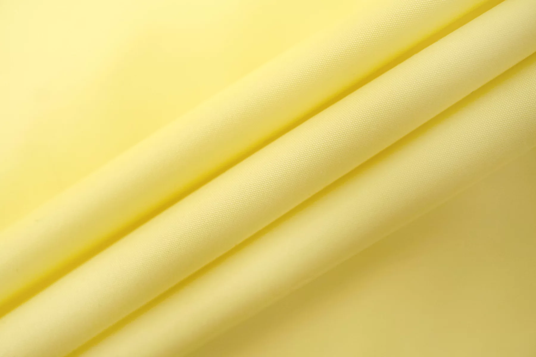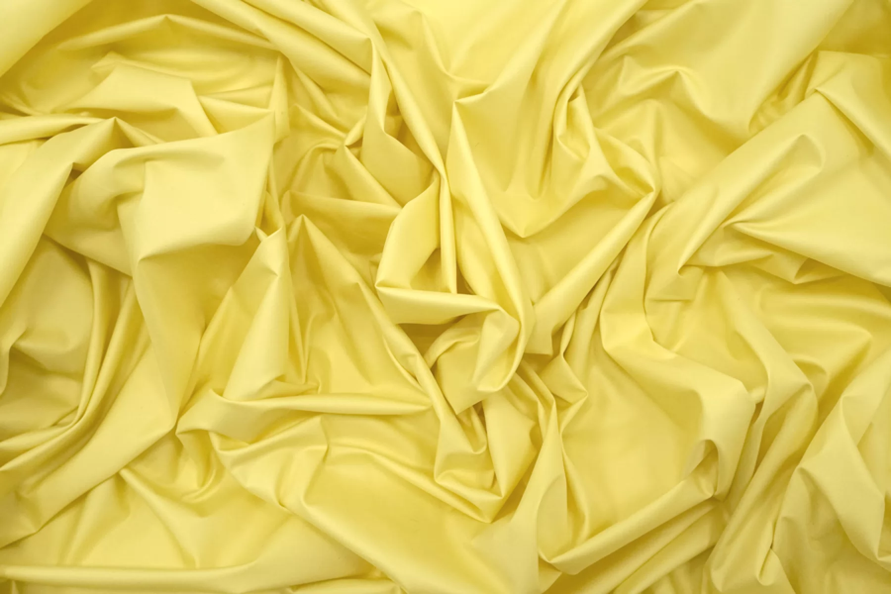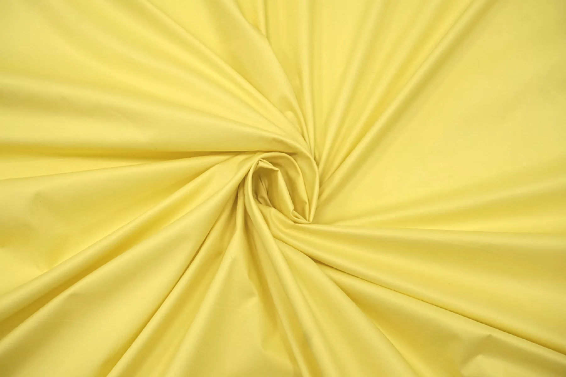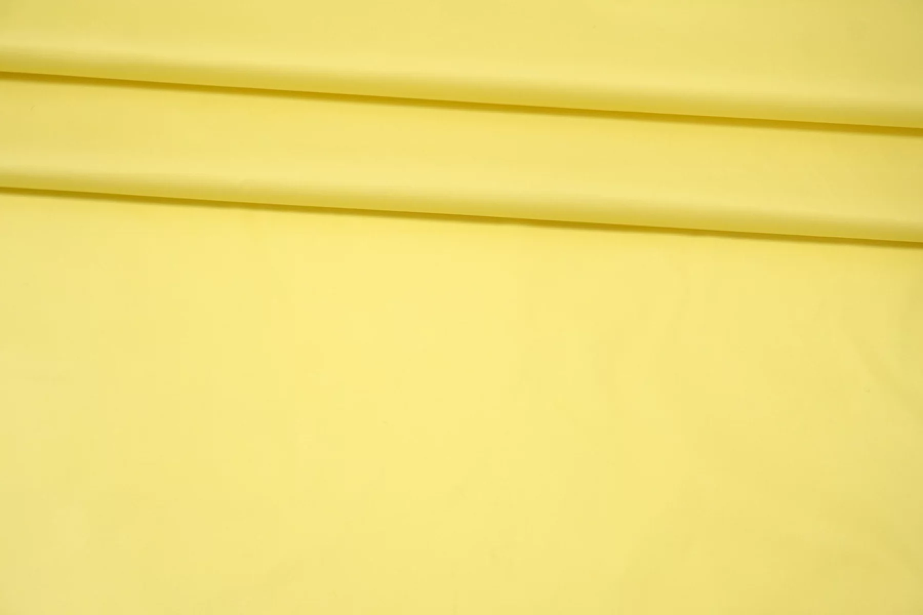 Плащевая ткань желтого цвета. Достаточно матовая. Плотная, тонкая, легкая, вода стекает и немного впитывает, если долго держать, ветрозащитная. Подойдет для пошива куртки, плаща, пуховика (простегать с наполнителем и подкладкой).