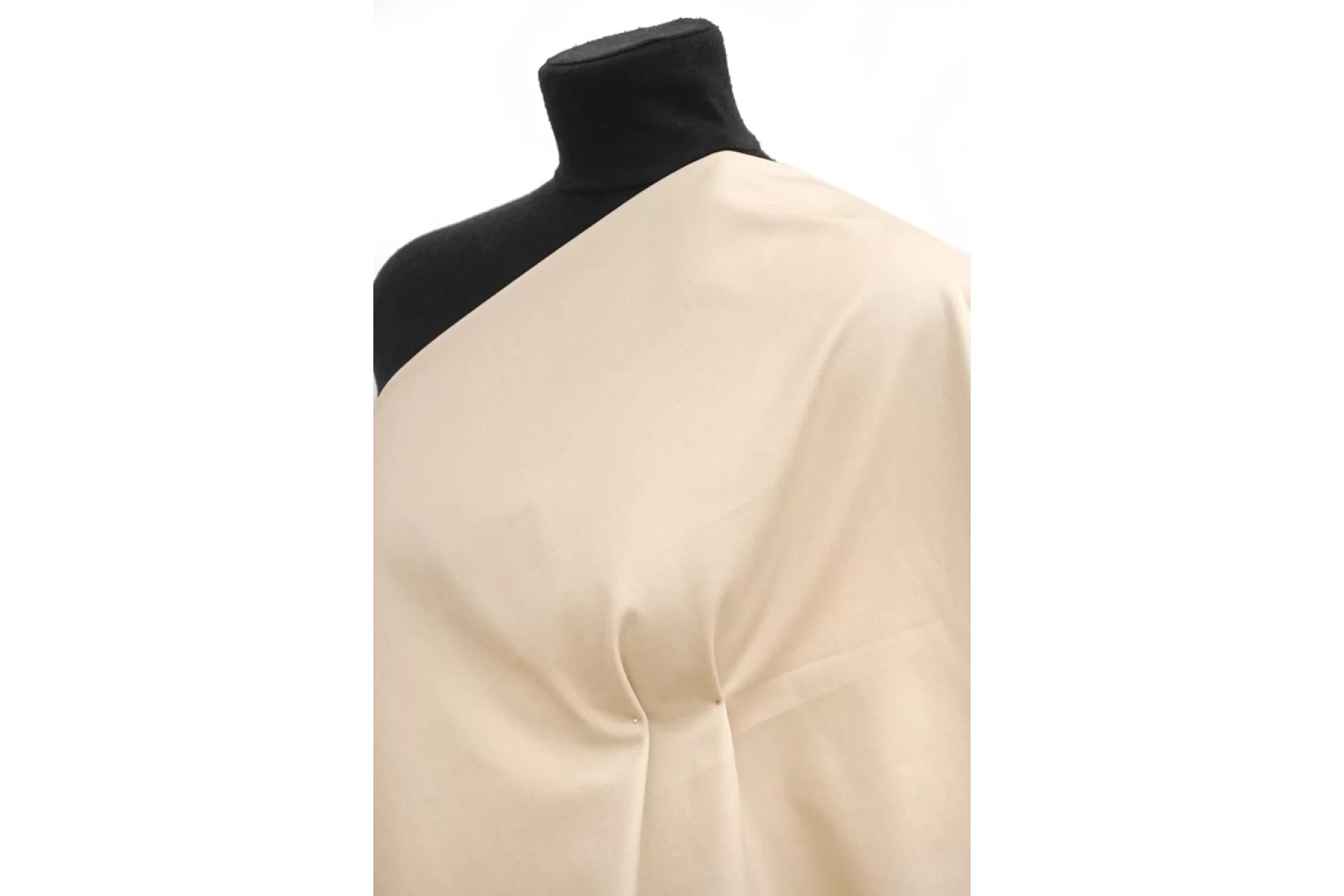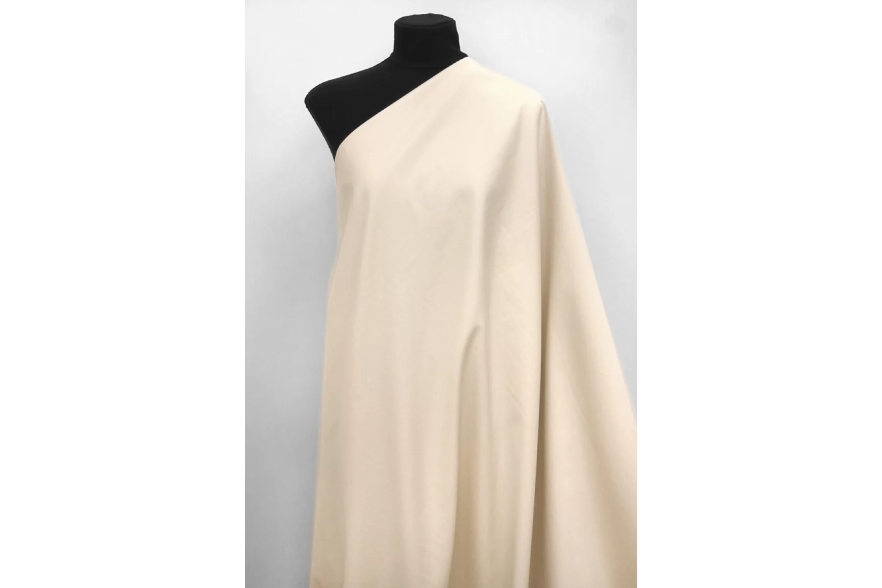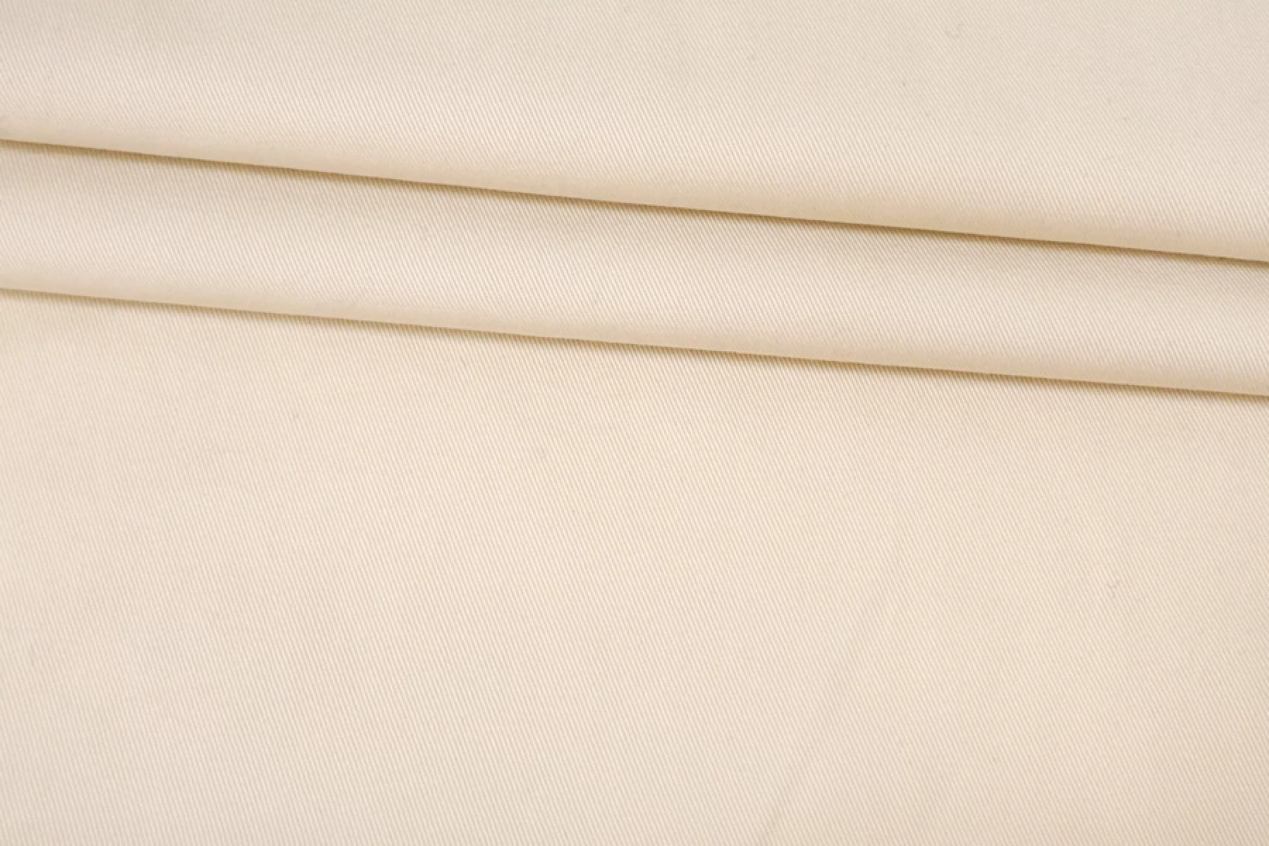 Шикарный итальянский плащевый хлопок от BURBERRY диагонального плетения в молочном оттенке. Вода легко стекает с поверхности, но со временем впитывается. Материал плотный, ветрозащитный. Тактильно приятный, лицевая сторона обладает легким лоском. Пластичный. Сминается. Отлично держит форму, не тянется и не просвечивает. Прекрасен для пошива тренча, куртки, парки и плащей.