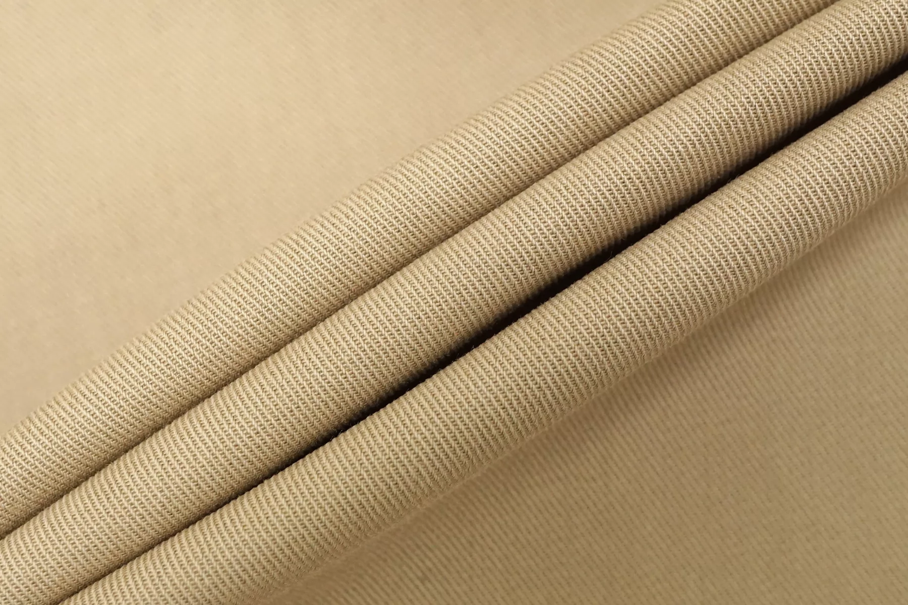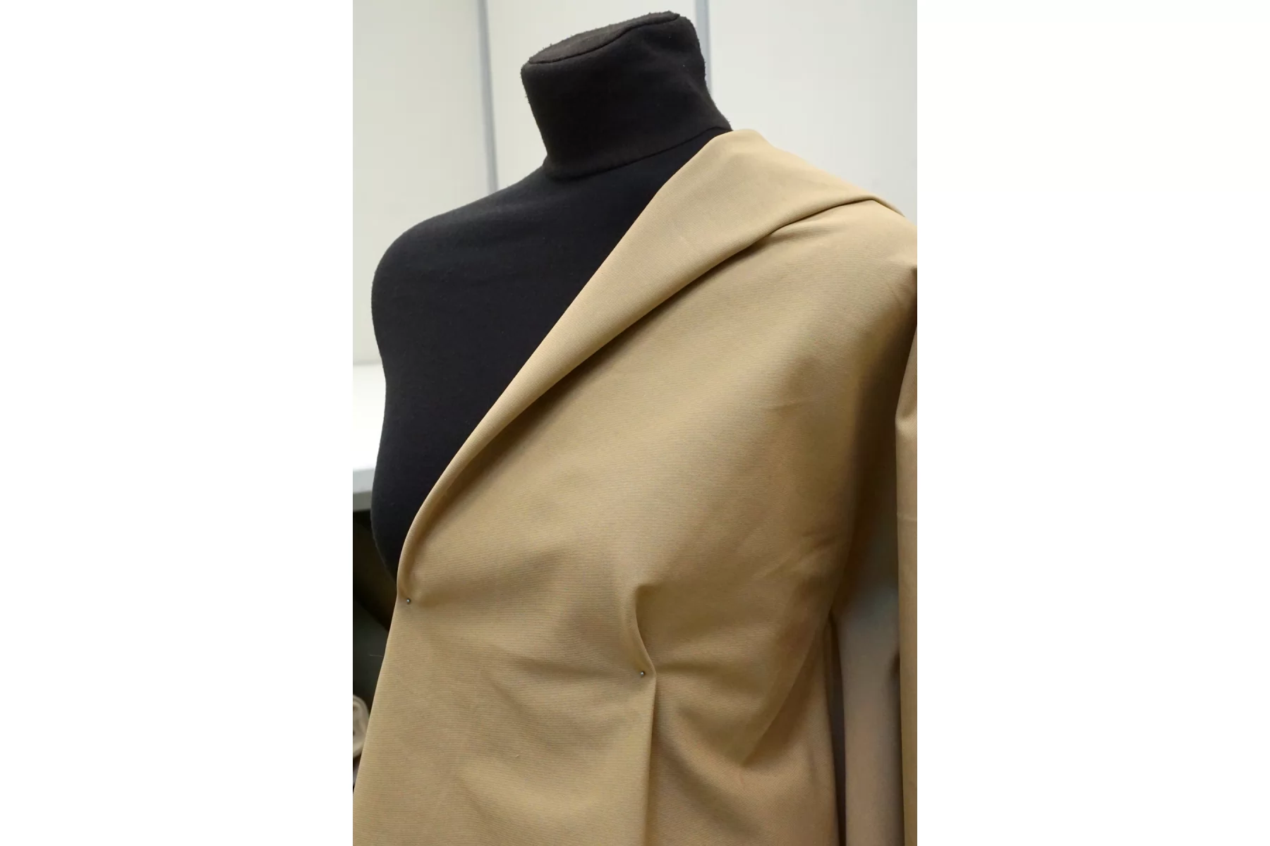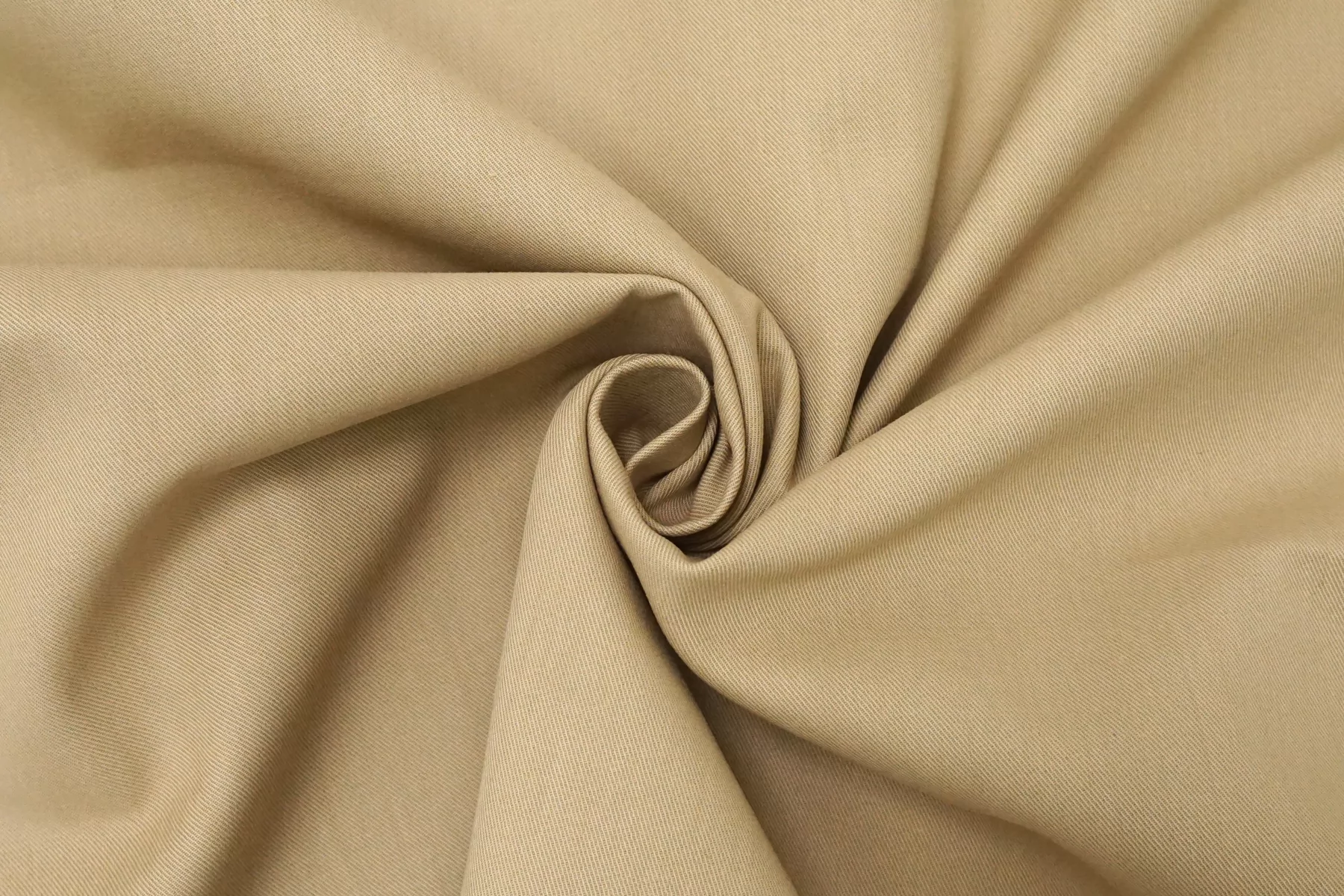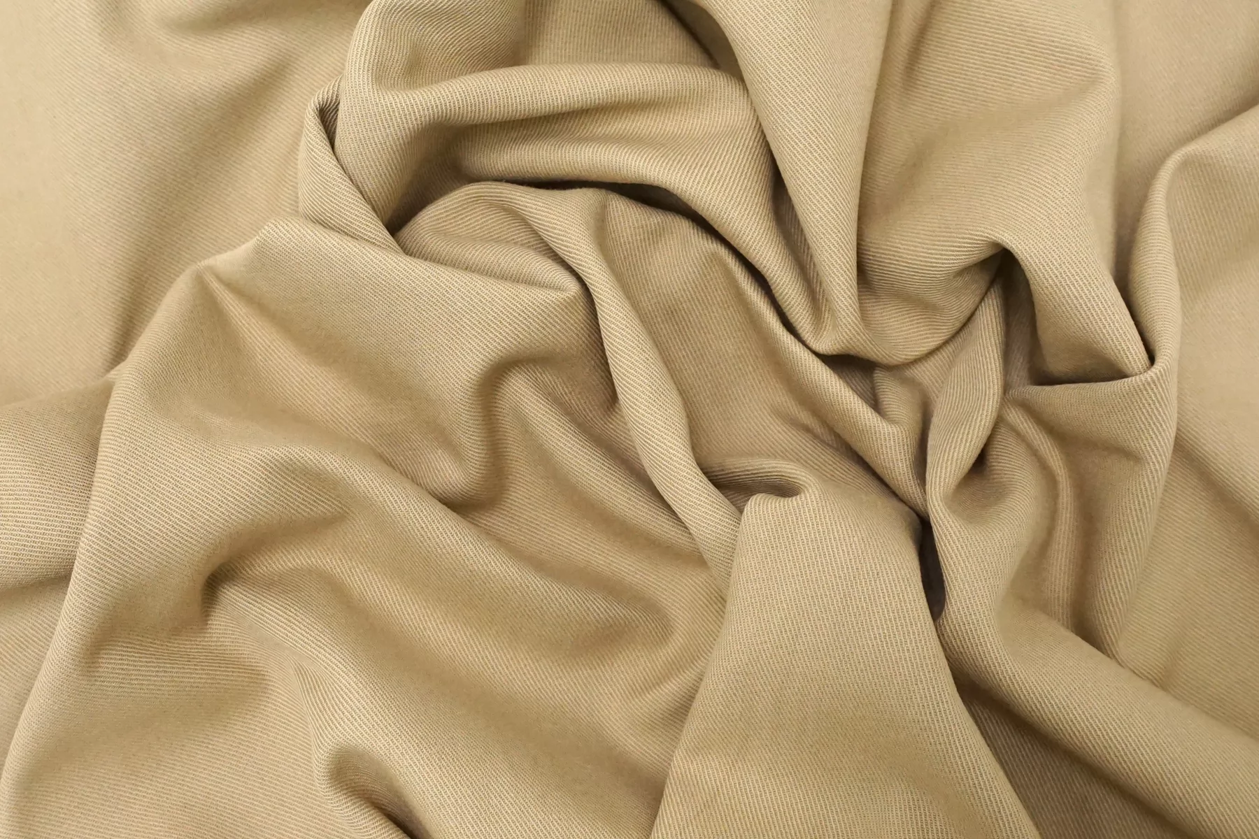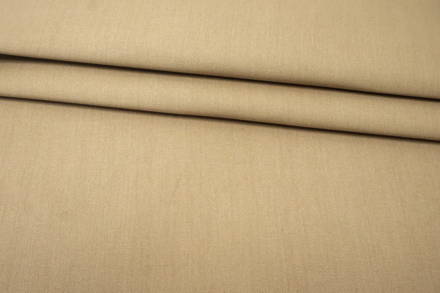 Отличного качества плащевый хлопок в песочно-бежевом цвете. Тактильно материал приятный, гладкий. Не просвечивает, не тянется. Мнется средне, хорошо держит форму. При попадании воды намокает. Шьем формодержащие костюмы, куртки и юбки в джинсовом стиле, можно использовать для пошива парки (учитывайте, что материал сразу промокает).