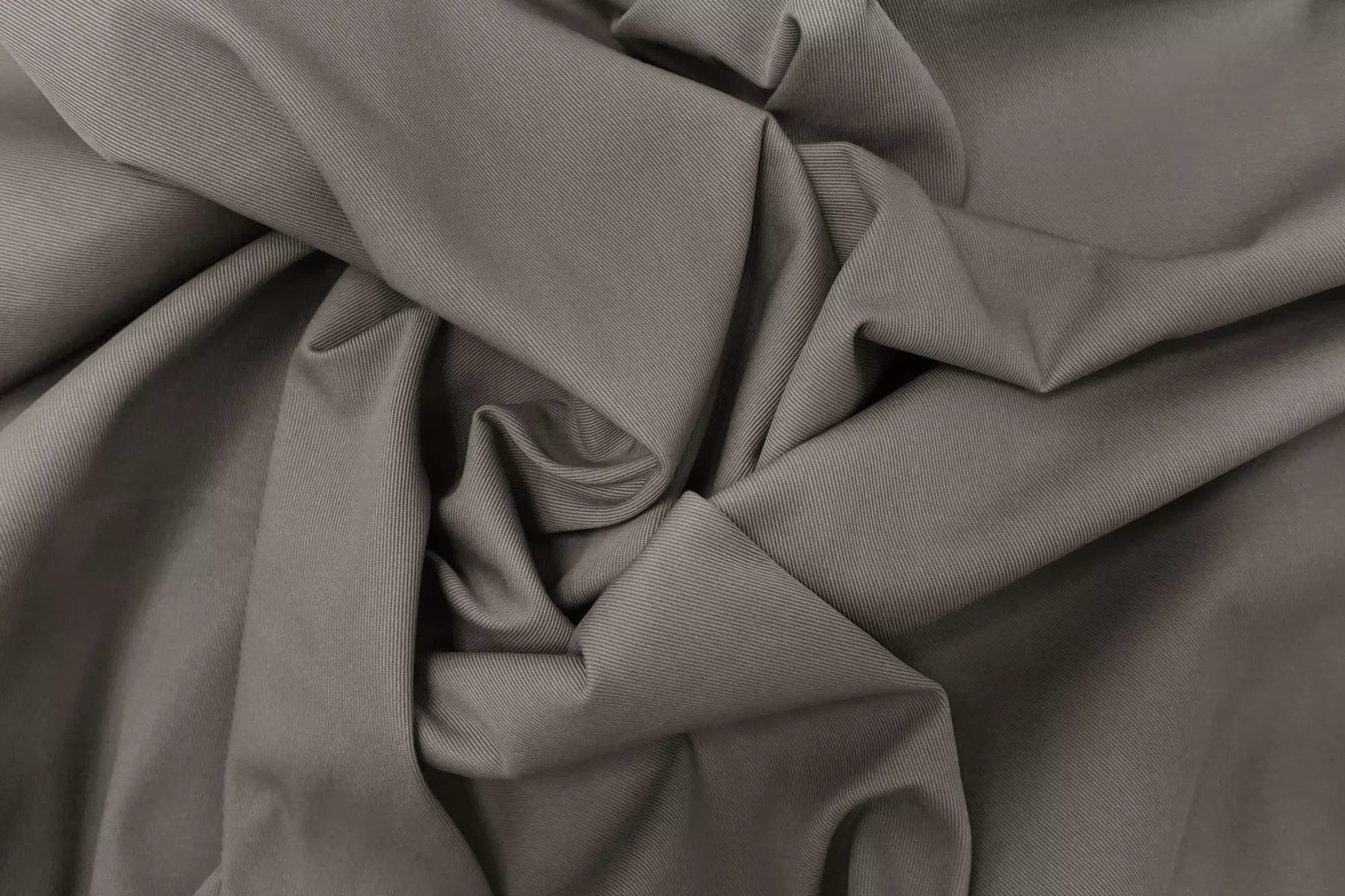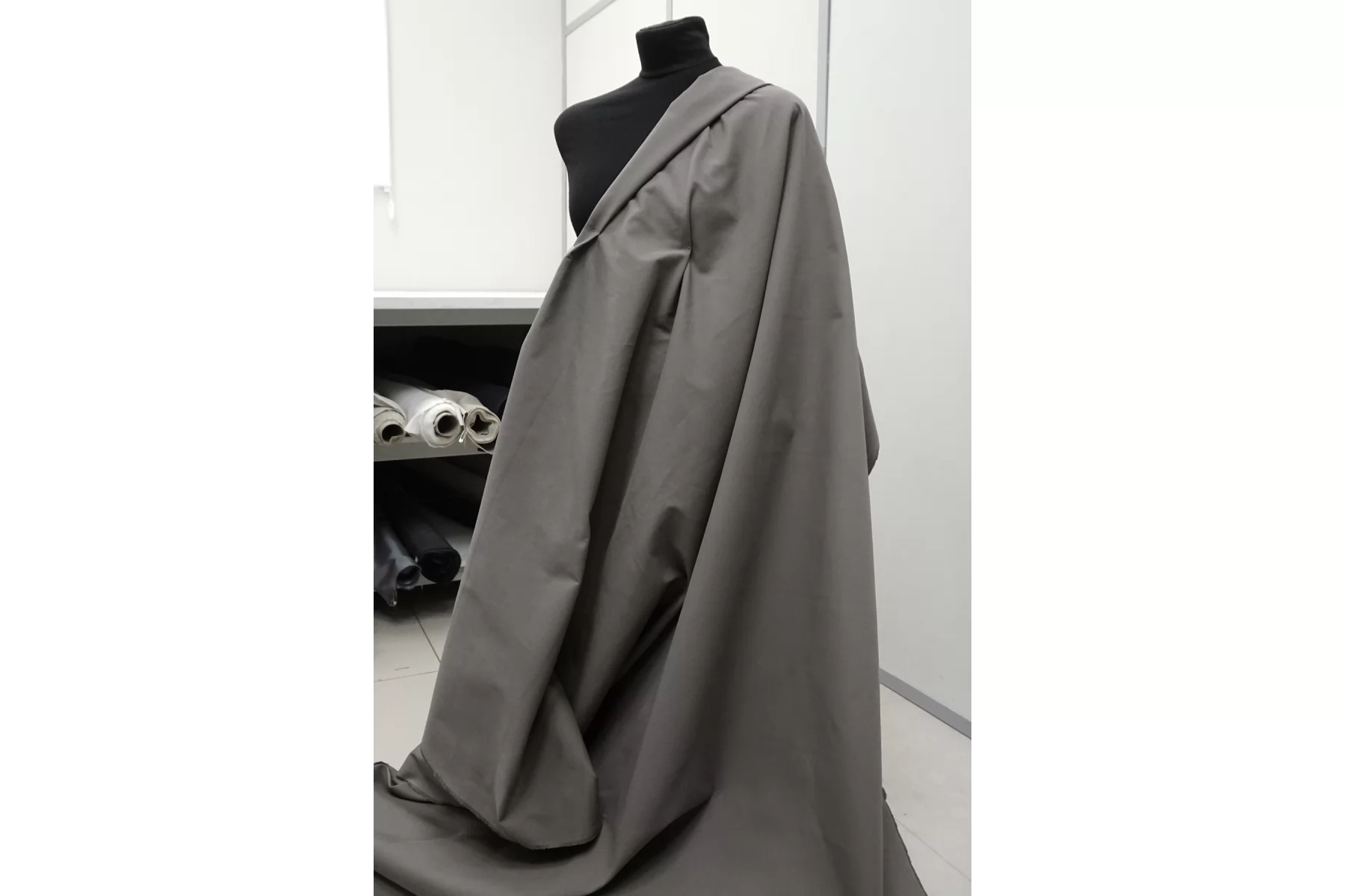 Отличного качества плащевый хлопок в сером цвете. Тактильно материал приятный, не грубый. Не просвечивает, не тянется. Мнется средне, хорошо держит форму. При попадании воды намокает. Шьем формодержащие костюмы, куртки и юбки в джинсовом стиле, можно использовать для пошива парки (учитывайте, что материал сразу промокает).
