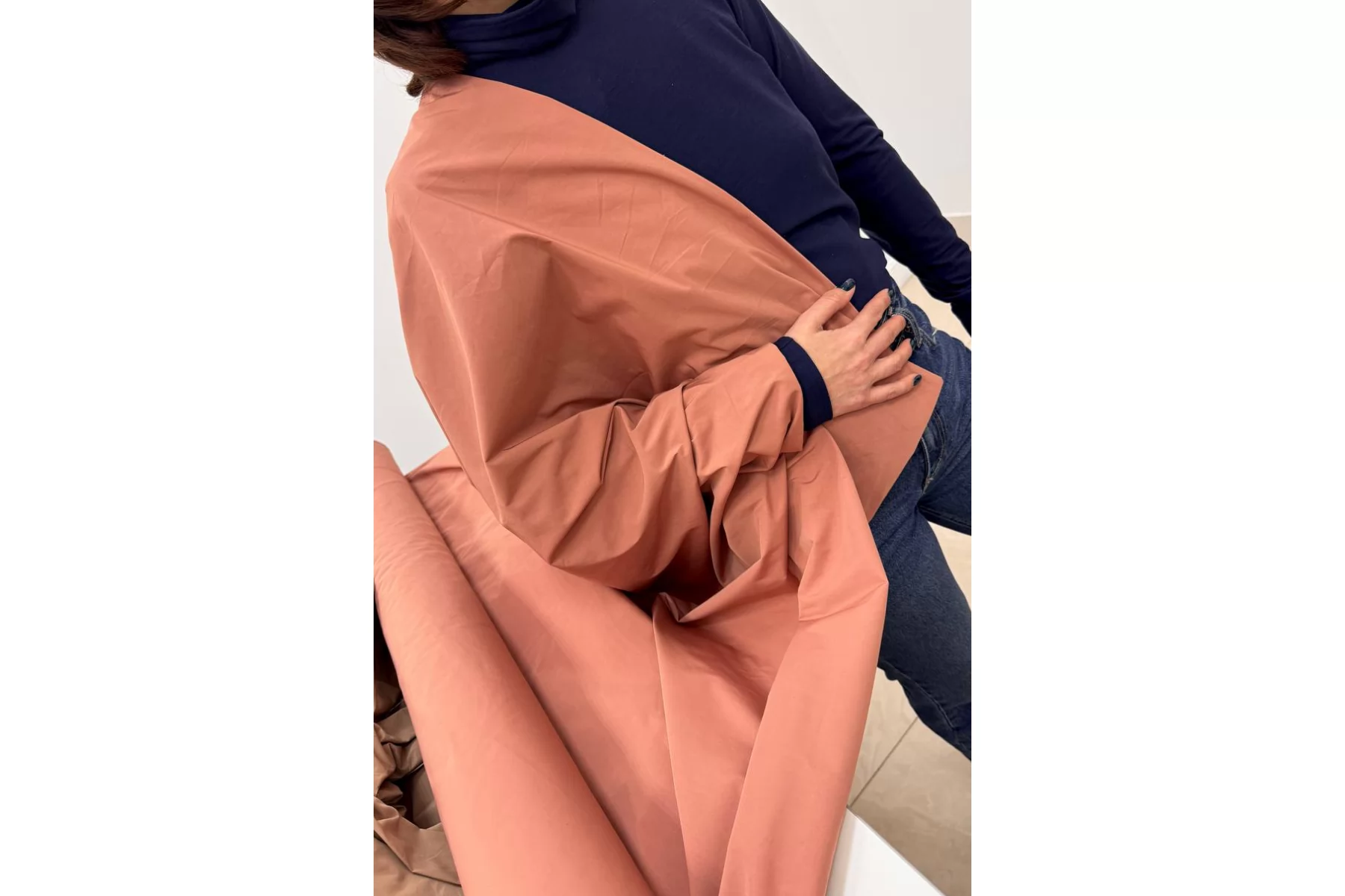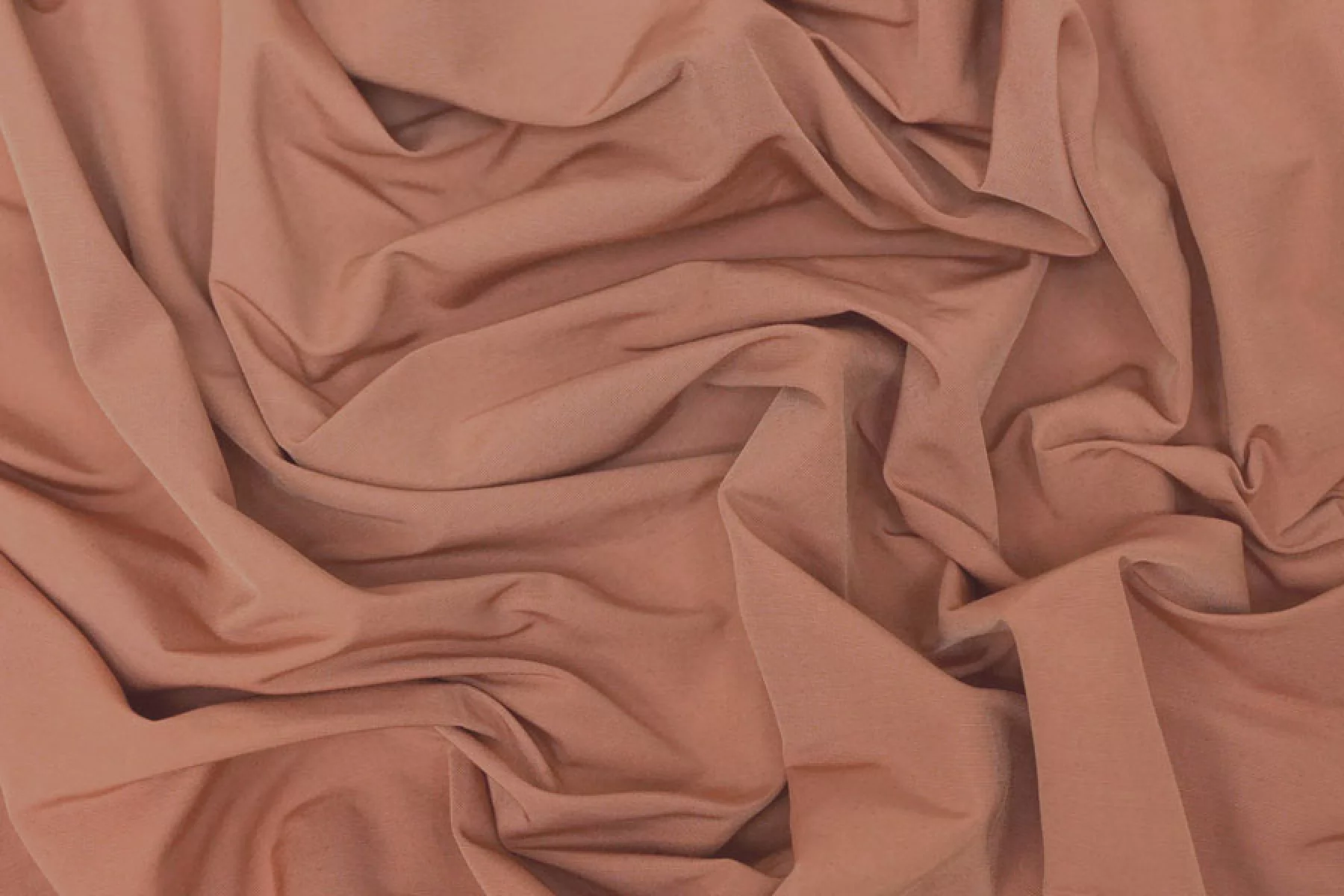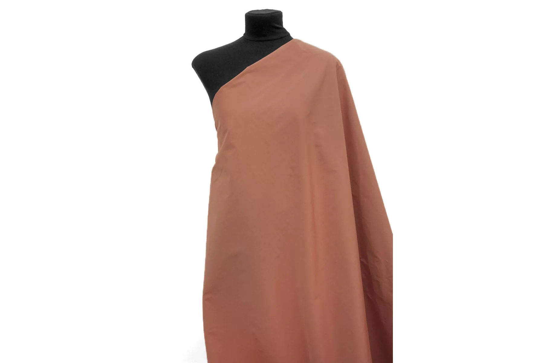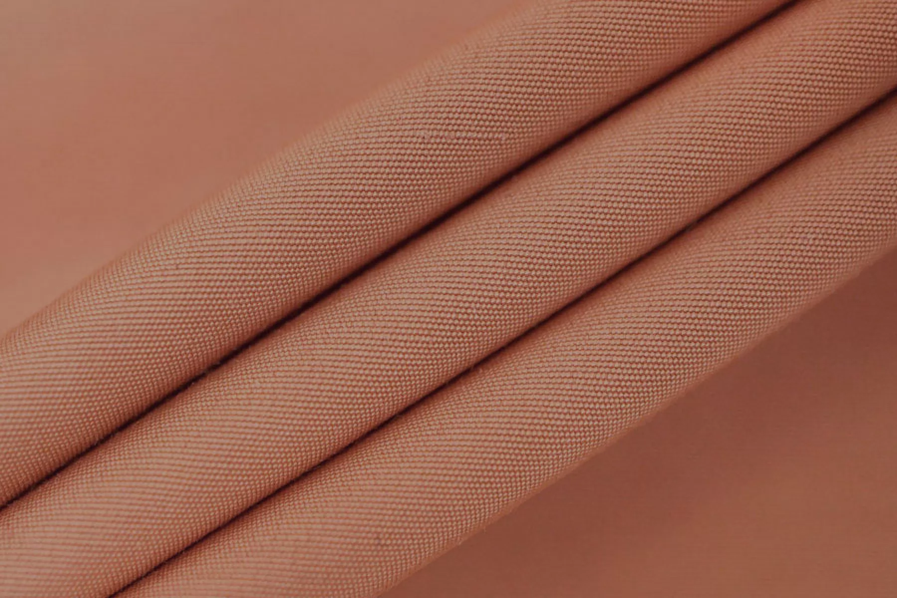 Плащевый водоотталкивающий хлопок мелкого репсового плетения в сложном персиково-терракотовом оттенке. Тактильно приятный, мягкий, слегка шуршащий, немного напоминает тафту. Капли не держит, но достаточно быстро впитывает в поверхность материала. Сминается, частично восстанавливается. Обладает приятным лоском. Не просвечивает. Хорошо драпируется и держит форму. Вариант на плащи, тренчи, жакеты, бомберы, куртки и не только.