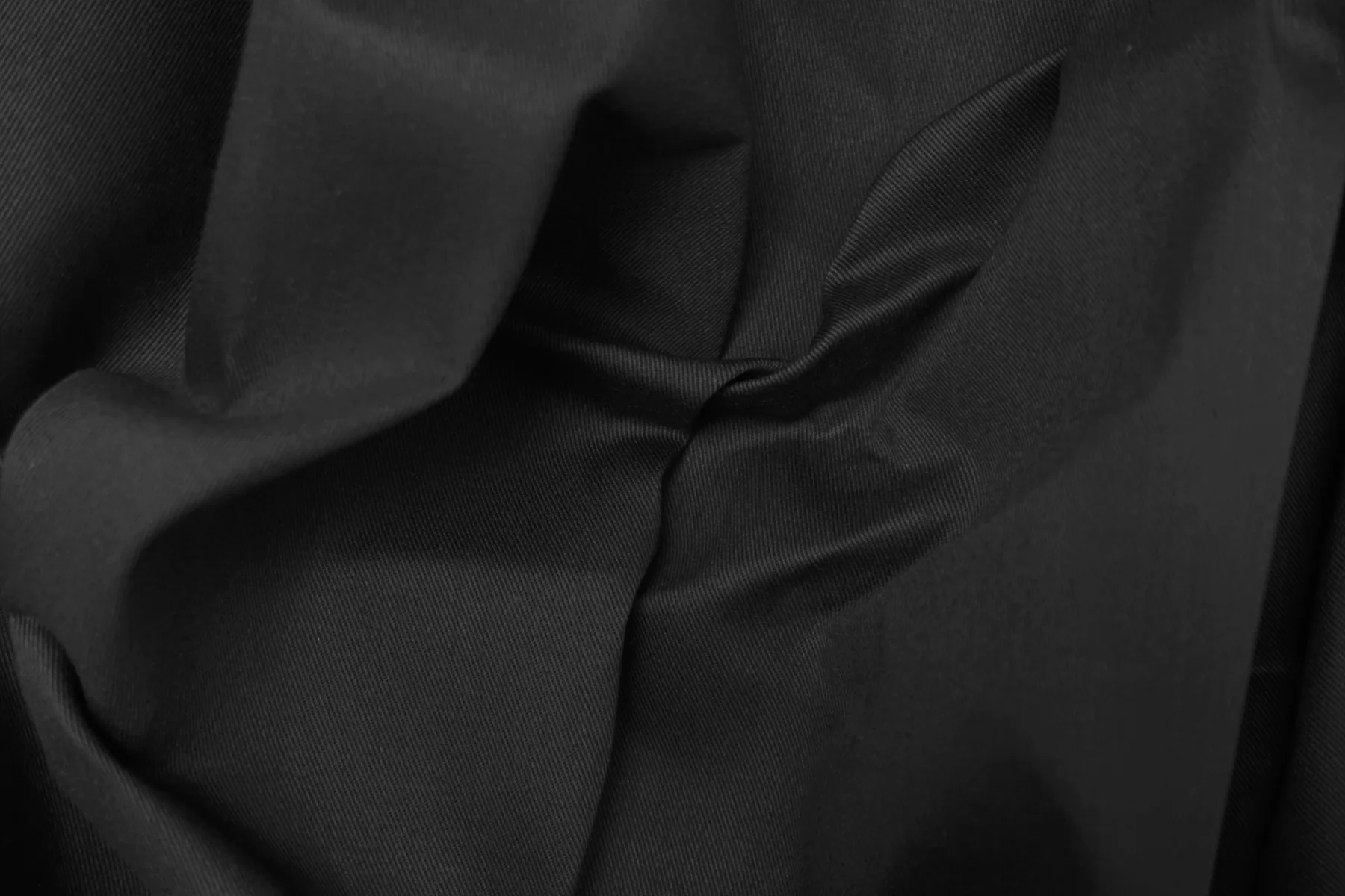 Итальянский плащевый хлопок диагонального плетения в тёмно-сером, графитовом цвете. Вода легко стекает с поверхности, не впитывается. Под длительным воздействием воды может немного промокнуть. Тактильно приятный, мягкий. Хорошей плотности. Сминается. Держит форму, не тянется и не просвечивает. Напоминает джинсу. Прекрасен для пошива тренча, куртки, парки и плащей.