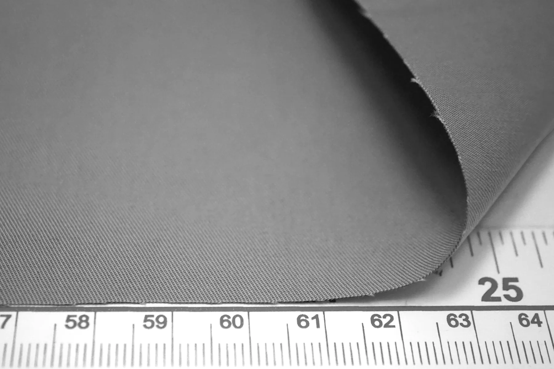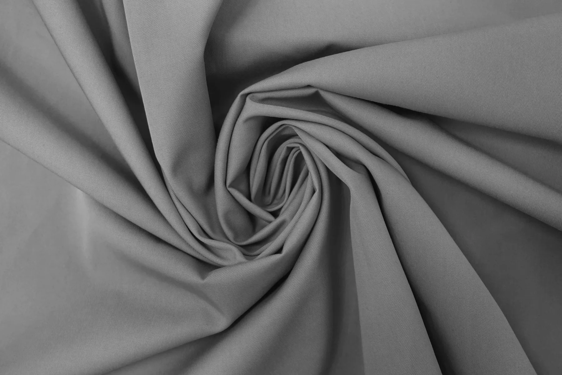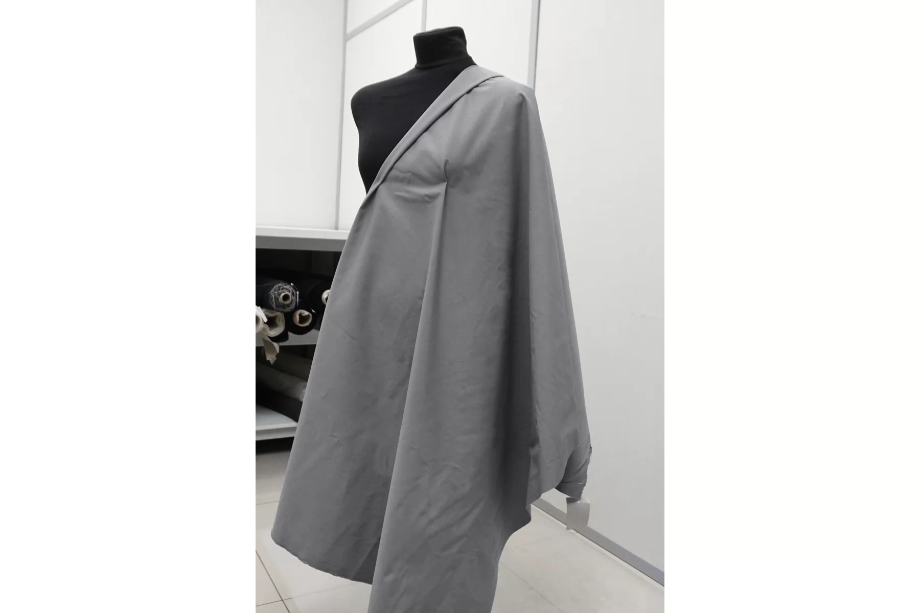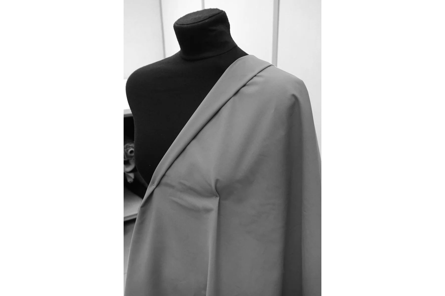 Итальянский плащевый хлопок от BURBERRY в сером цвете, водоотталкивающий. Вода легко стекает с поверхности, но через какое-то время впитывается. Плетение диагональное. Материал гладкий, приятный наощупь, плотный, но тонкий. Не тянется. Держит форму, сминается. Подойдет для пошива тренча, куртки, парки, плаща и т.д.
