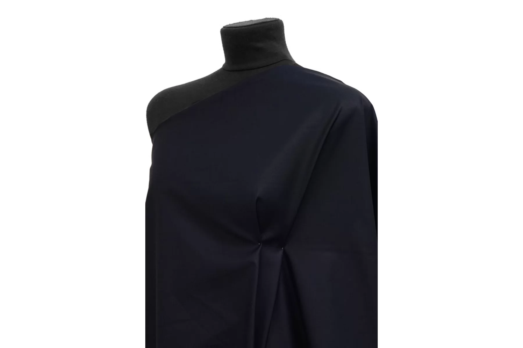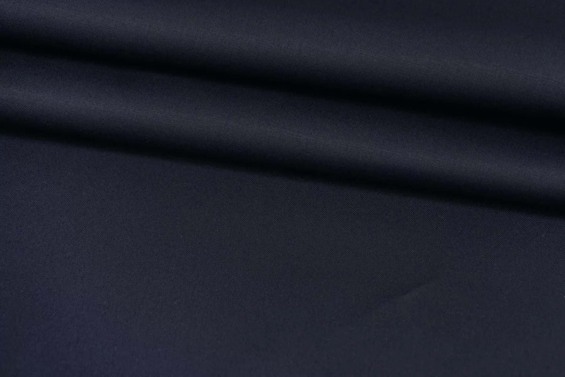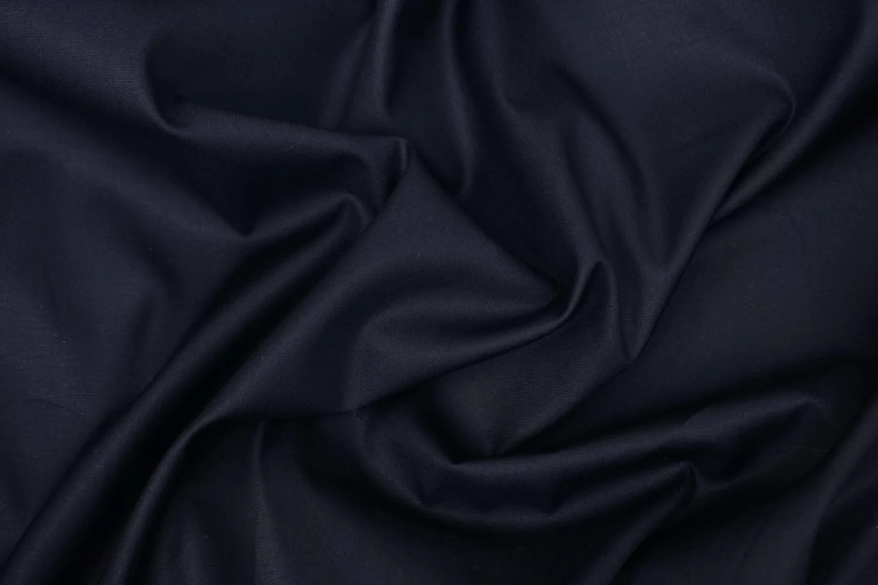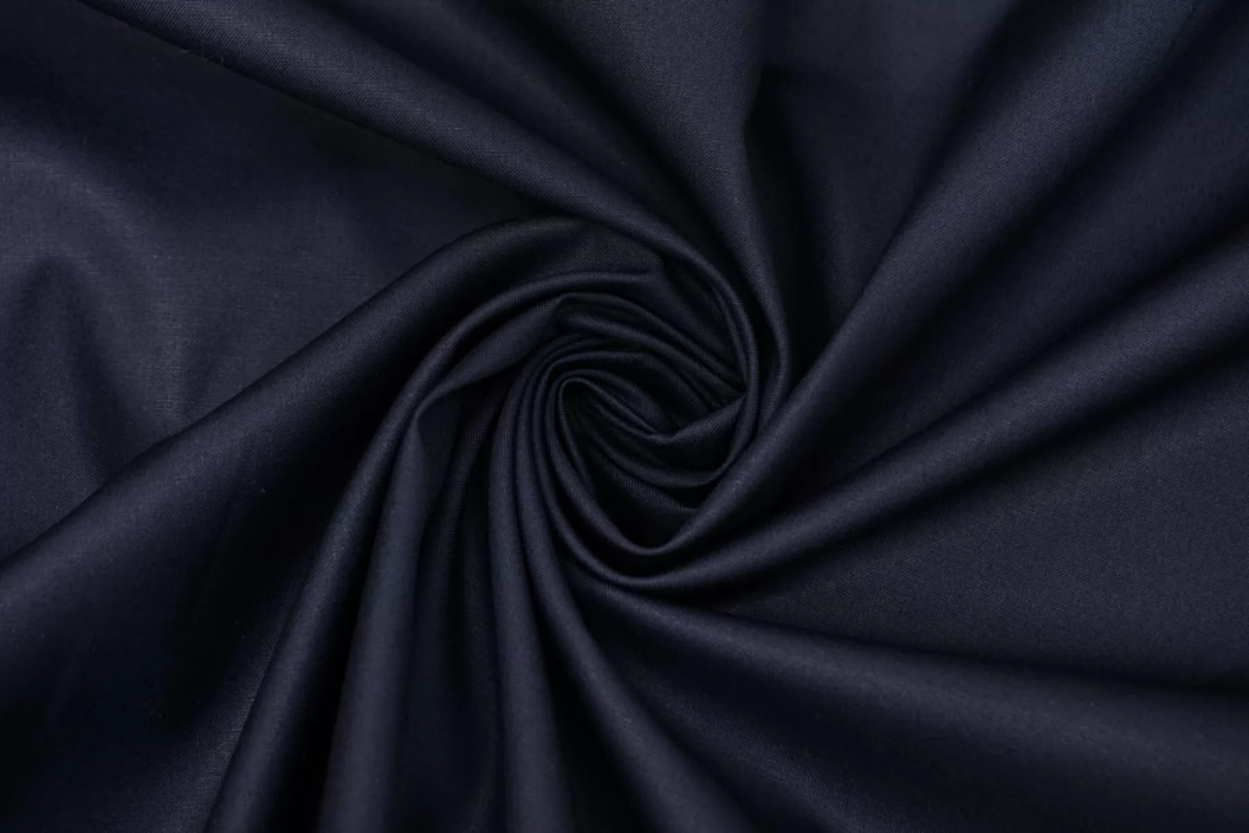 Классный плащевый хлопок темно-синего оттенка от BURBERRY, водоотталкивающий. Плетение диагональное крупное. Вода легко стекает с поверхности, но впитывается через некоторое время. Материал гладкий, шуршащий, приятный наощупь. Тонкий, но плотный. Пластичный, не тянется. Форму держит хорошо, сминается. Подойдет для пошива тренча, куртки, парки, плаща и т.д.