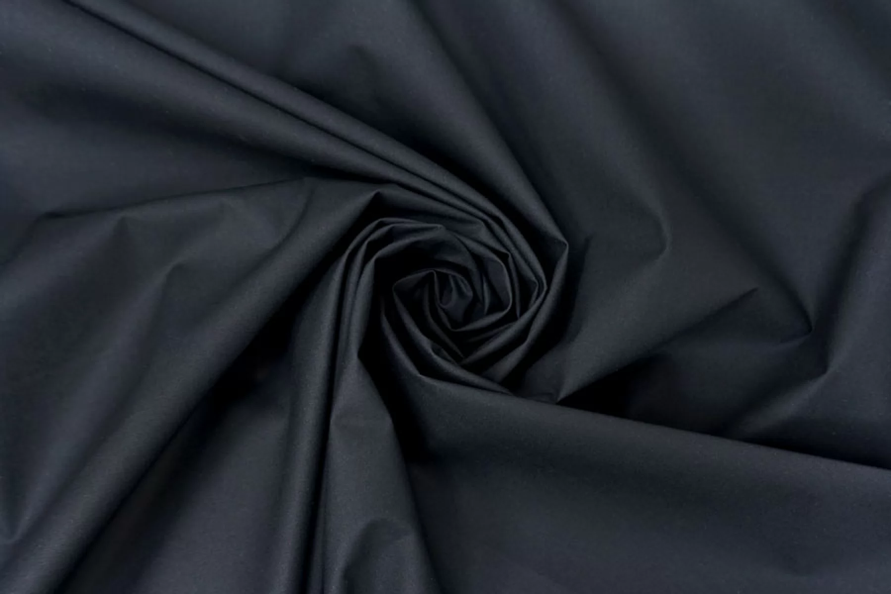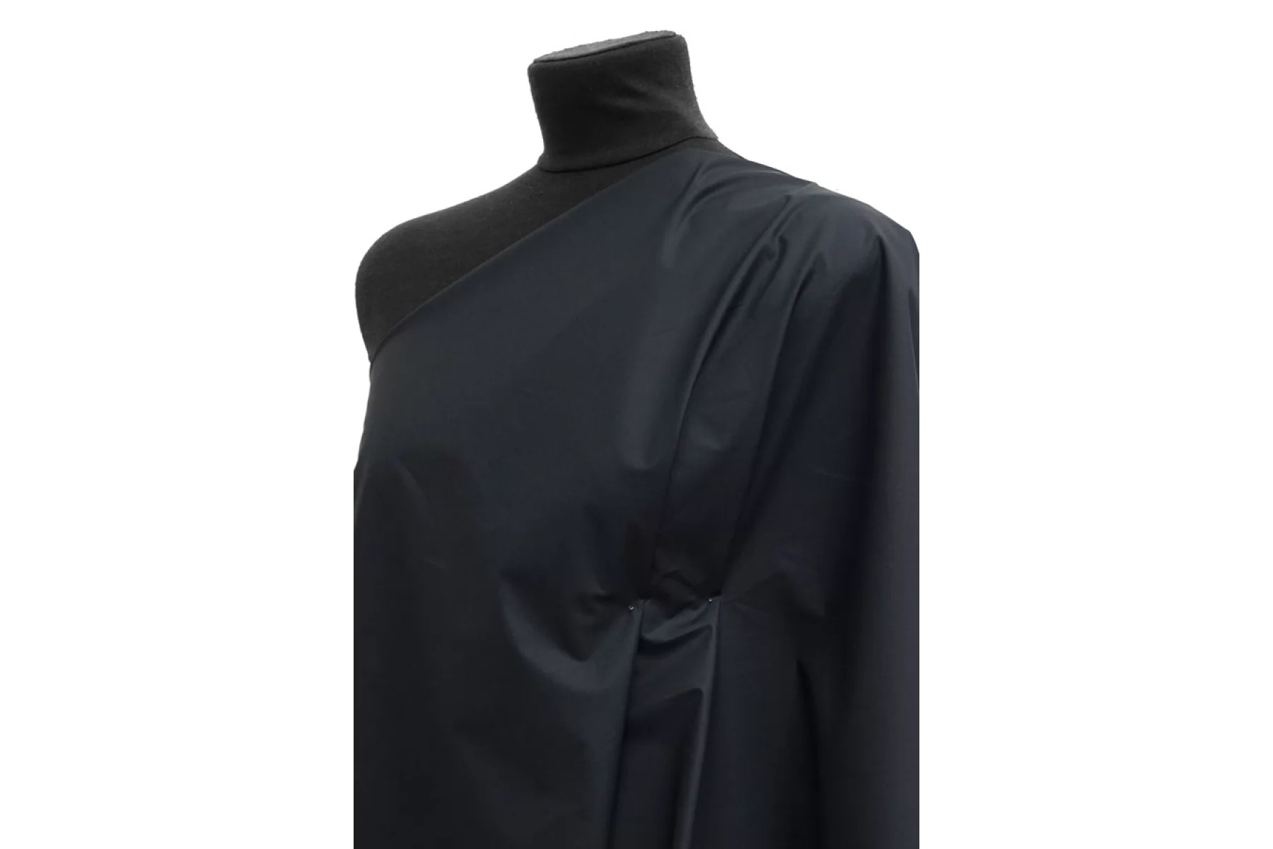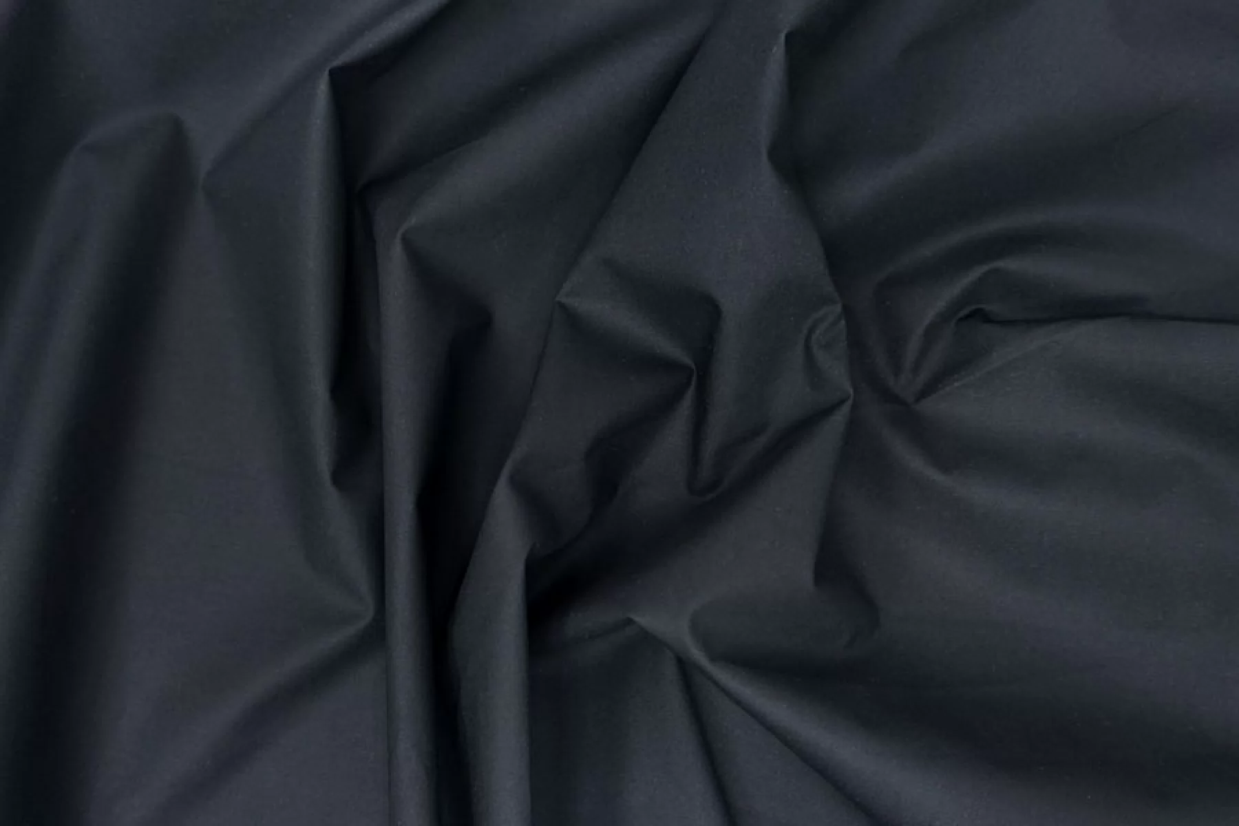 Классный плащевый хлопок с пропиткой в приглушенном темно-синем оттенке от BURBERRY, водоотталкивающий. Плетение диагональное. Вода легко стекает с поверхности, но через некоторое время впитывается. Материал гладкий, скользящий, приятный, чувствуется, что с пропиткой наощупь. Тонкий, но плотный. Пластичный, не тянется. Форму держит хорошо, сминается. Подойдет для пошива тренча, куртки, парки, плаща и т.д.