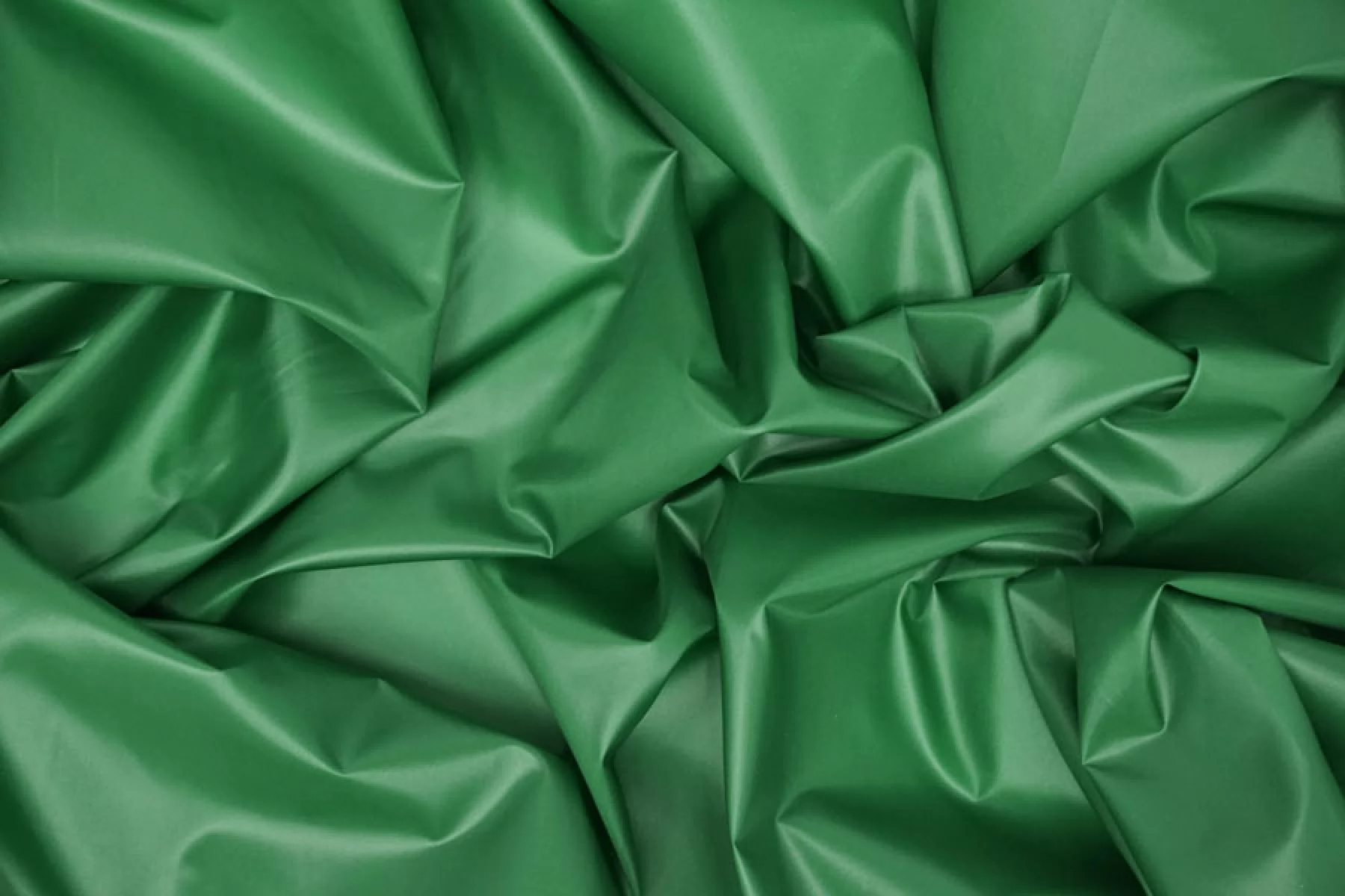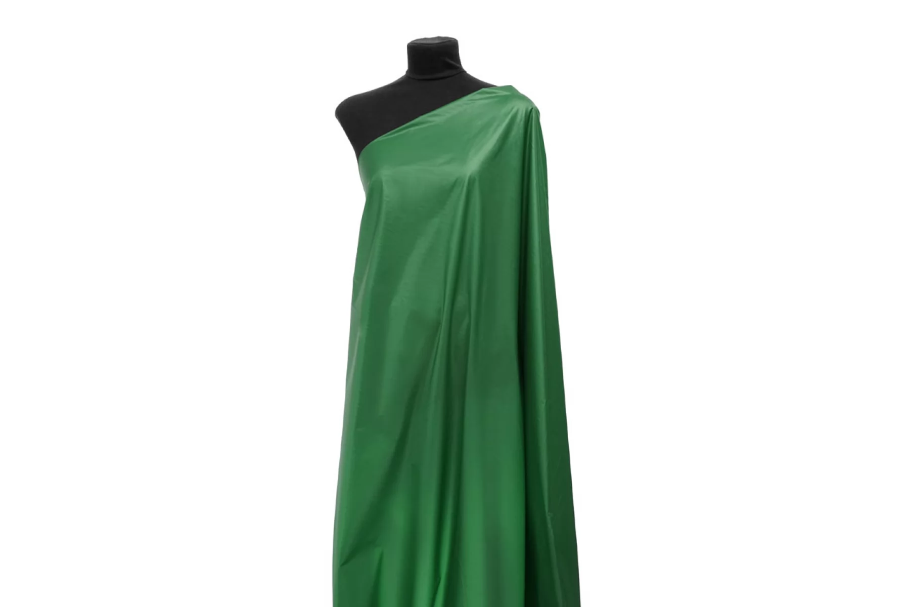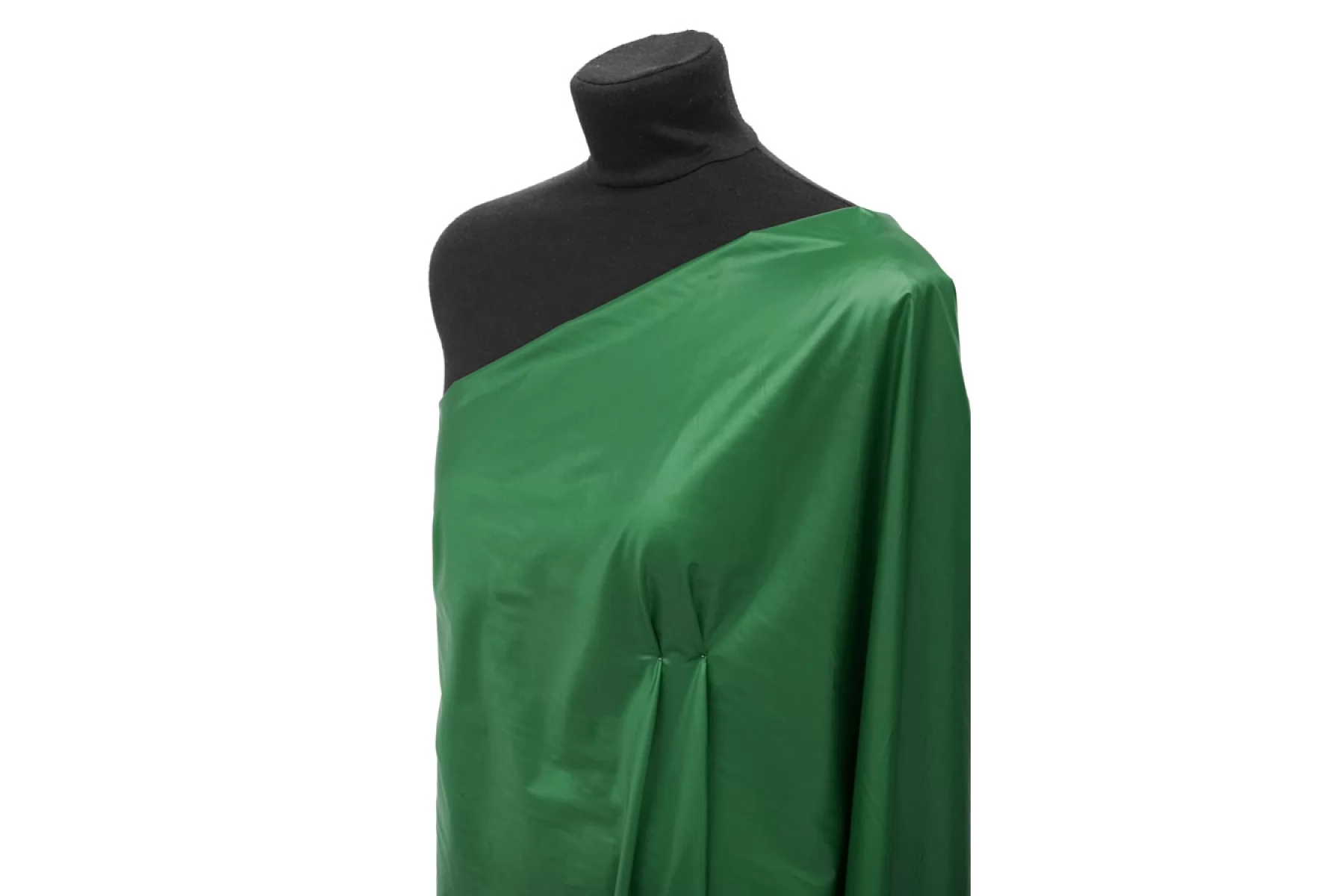 Плащевка тонкая, красивого травяного зеленого оттенка от MAX MARA. Обладает матовым блеском. Тактильно очень приятная, мягкая. Плотная, легкая. Ветрозащитная, вода скатывается с поверхности. Сминается. Может слегка просвечивать силуэт. Прекрасно подойдет для пошива куртки, плаща, жилета (простегать с наполнителем и подкладкой).