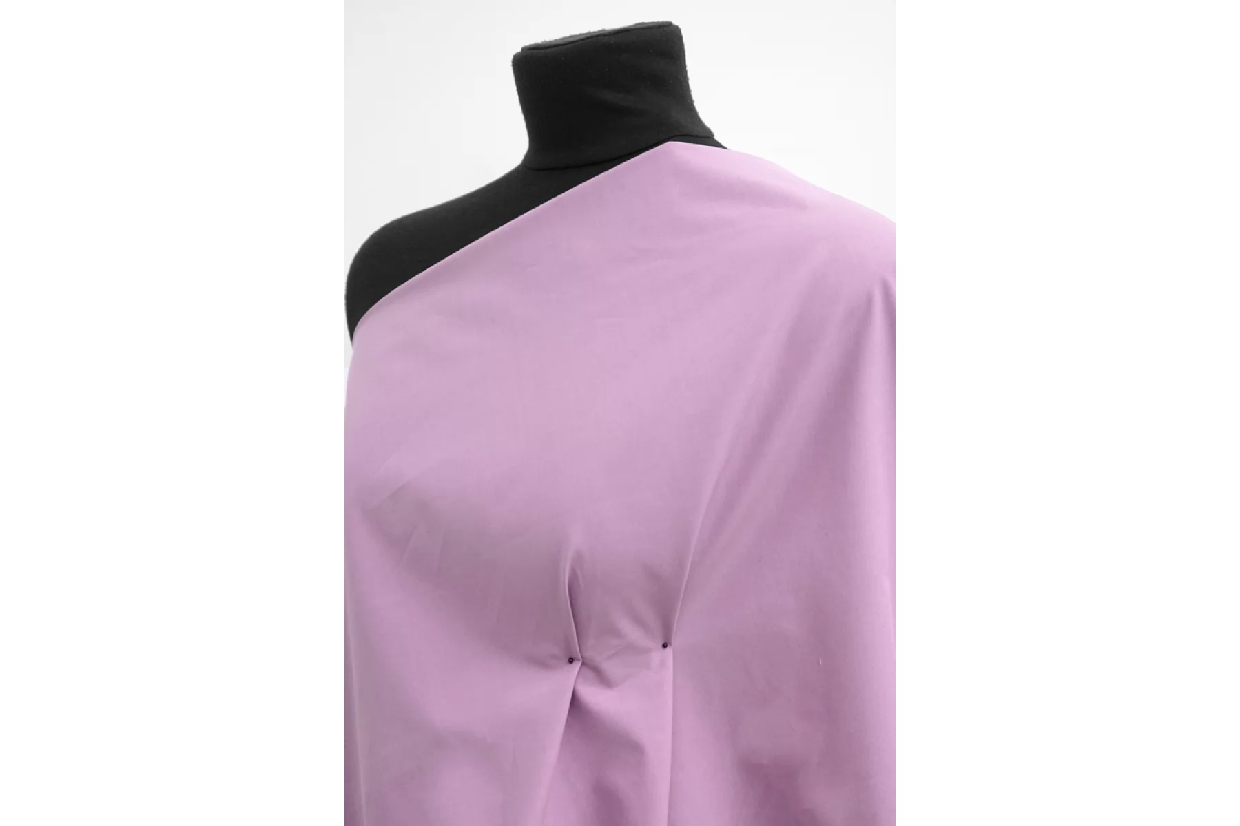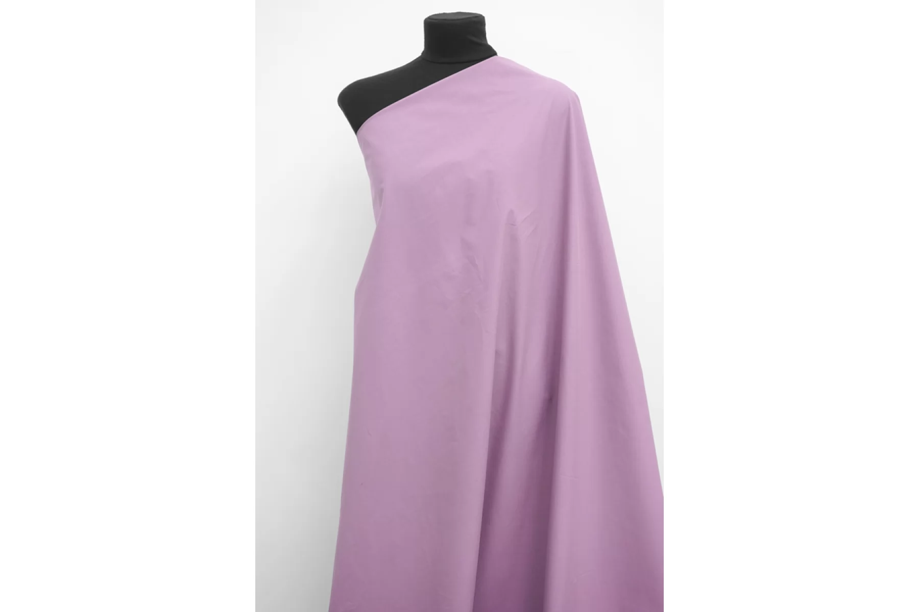 Плащевый хлопок красивого сиренево-лилового оттенка. Тактильно плащевка плотная, матовая, бархатистая. Вода легко стекает и не впитывается (только через время начинает слегка впитывать капли в поверхность, но не насквозь), ветрозащитная. Похрустывает. Отлично драпируется и держит форму. Не тянется. Не просвечивает. Прекрасно подойдет для пошива куртки, плаща, пуховика (простегать с наполнителем и подкладкой).
