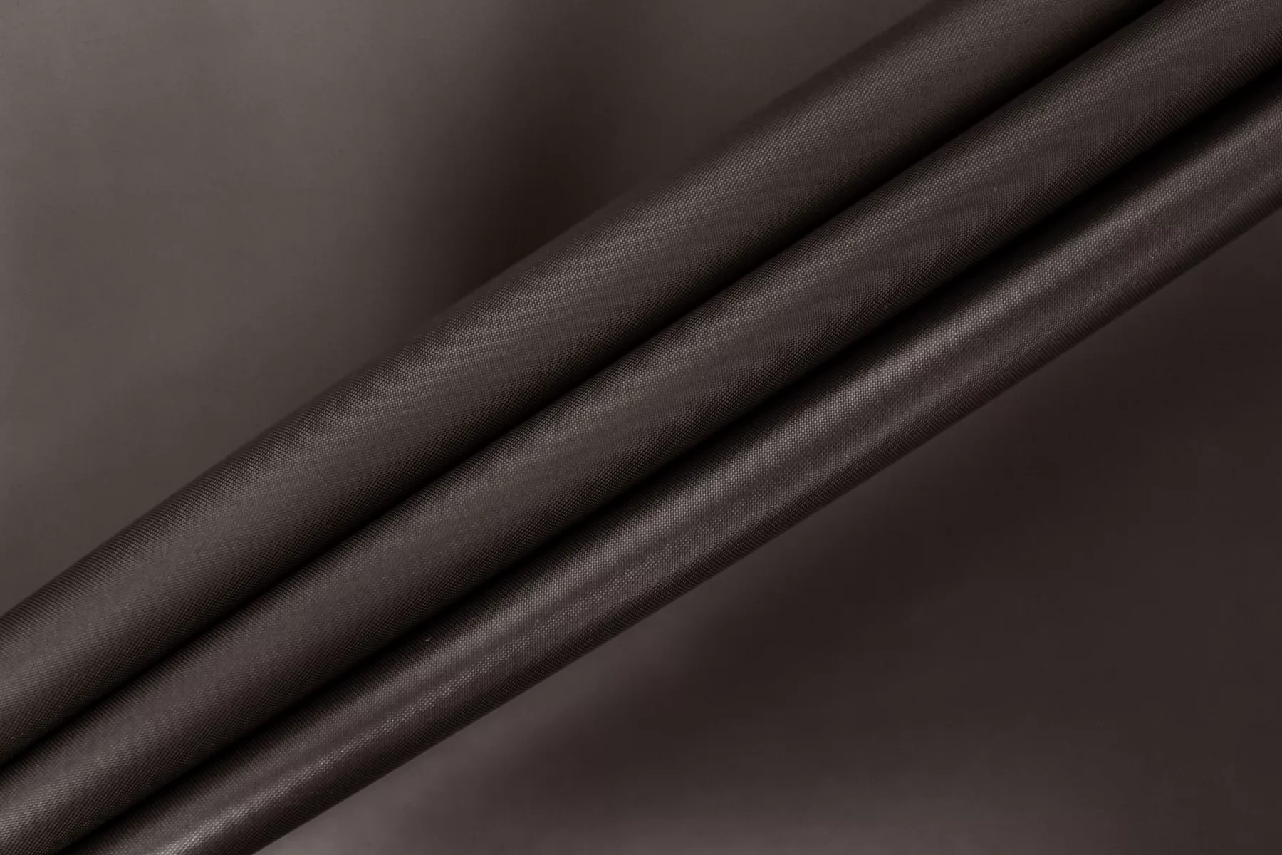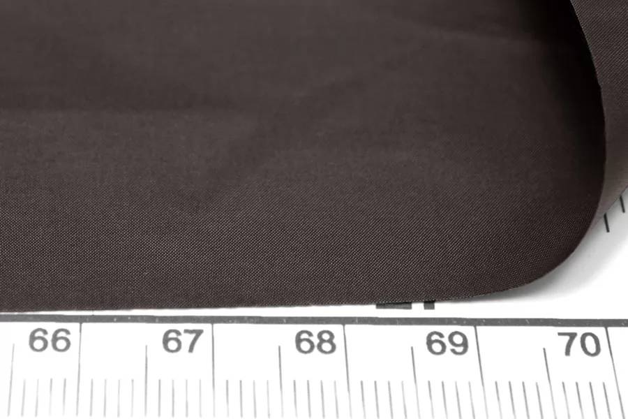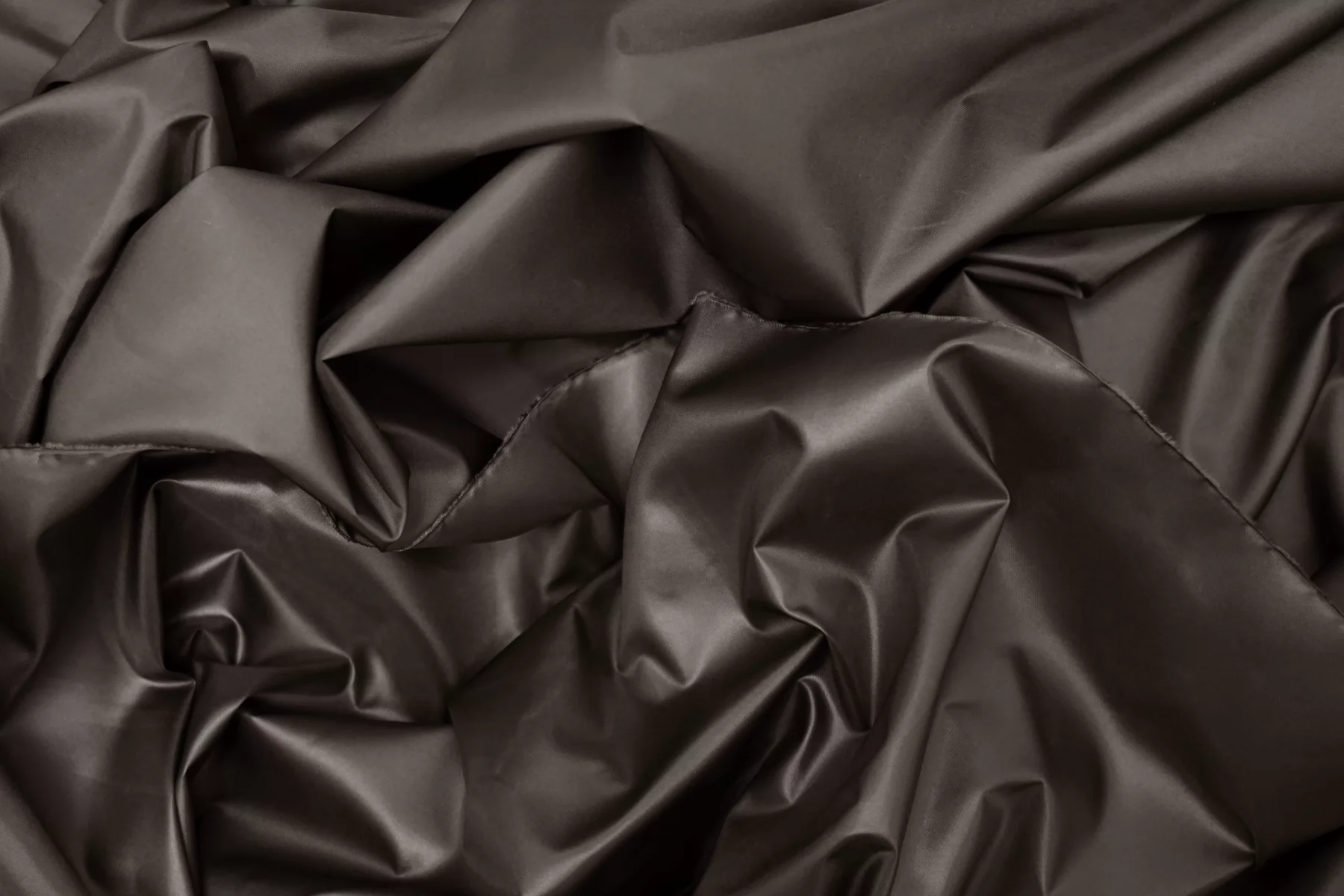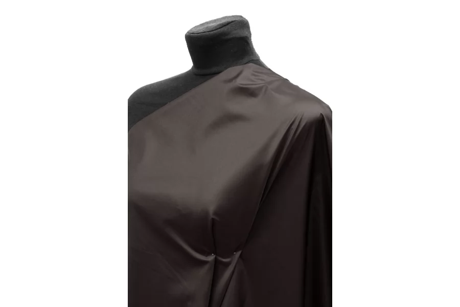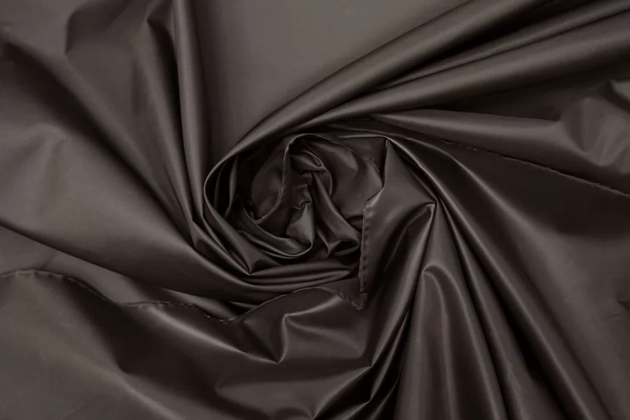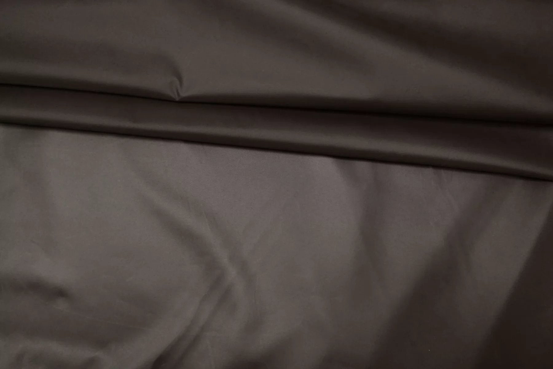 Плащевка тонкая, сложного коричневого оттенка с баклажанным подтоном (холодным), от MAX MARA. Одна сторона с отблеском, другая ближе к матовой. Тактильно очень приятная, мягкая. Плотная, легкая. Ветрозащитная, вода скатывается с поверхности. Сминается. Может слегка просвечивать силуэт. Минимально держит форму. Прекрасно подойдет для пошива дождевика, куртки, плаща, жилета (простегать с наполнителем и подкладкой).