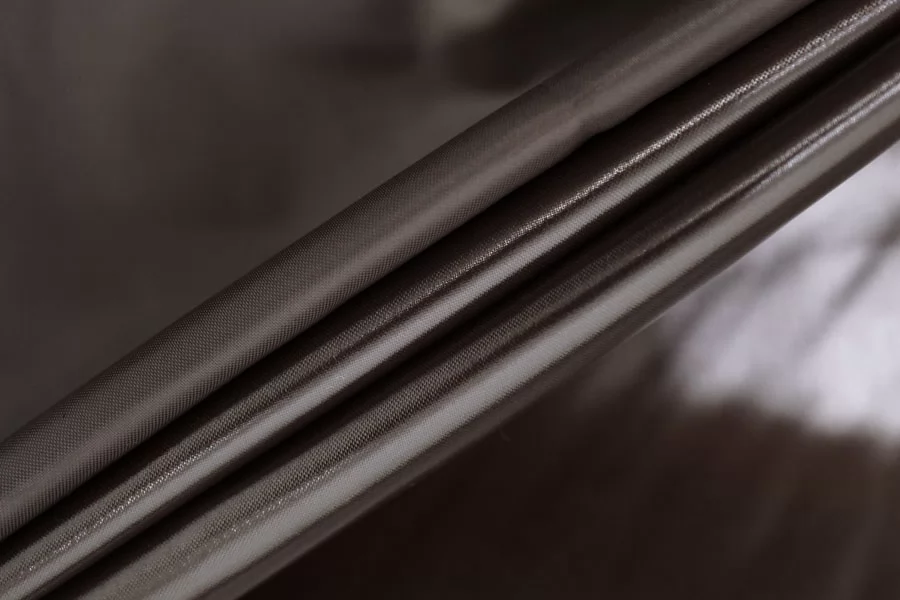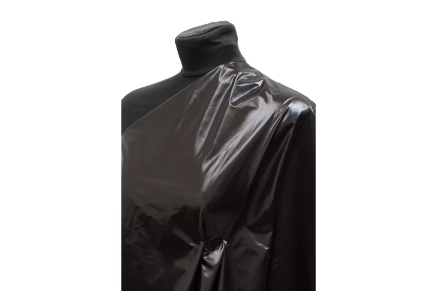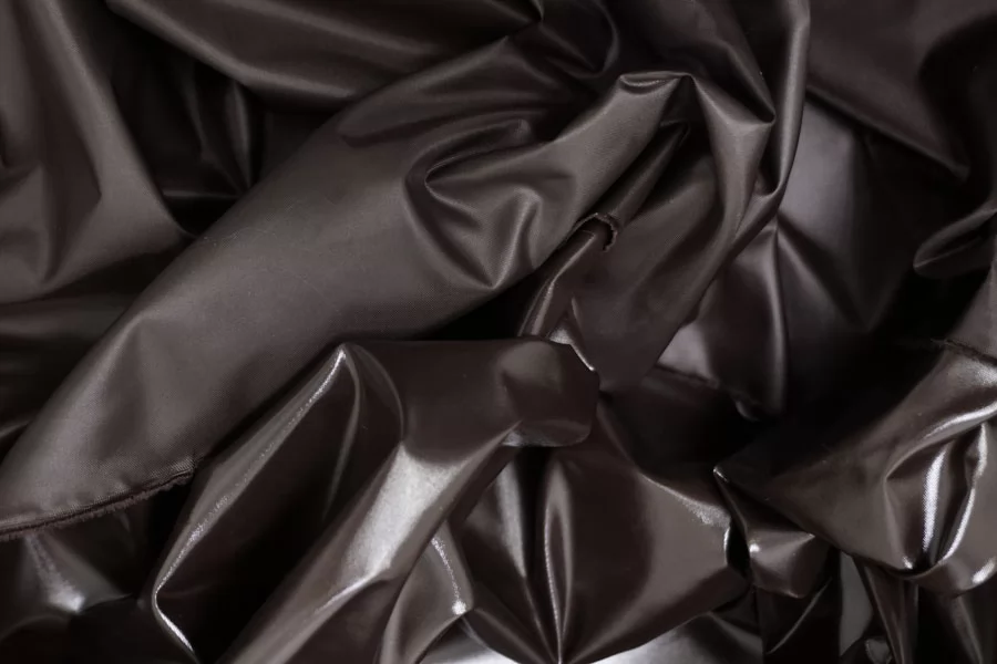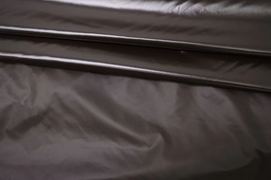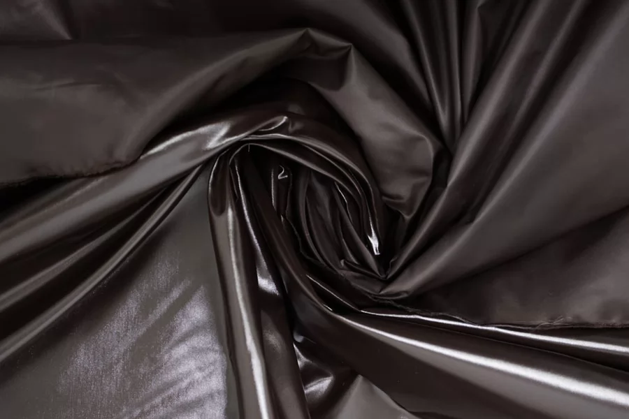 Плащевка тёмного коричневого оттенка (как очень горький шоколад), от MAX MARA. Одна сторона с ярким отблеском, другая матовая. Тактильно очень приятная, мягкая. Плотная. Ветрозащитная, вода скатывается с поверхности. Не просвечивает, держит форму. Мнётся. Прекрасно подойдет для пошива дождевика, куртки, плаща, жилета (простегать с наполнителем и подкладкой).