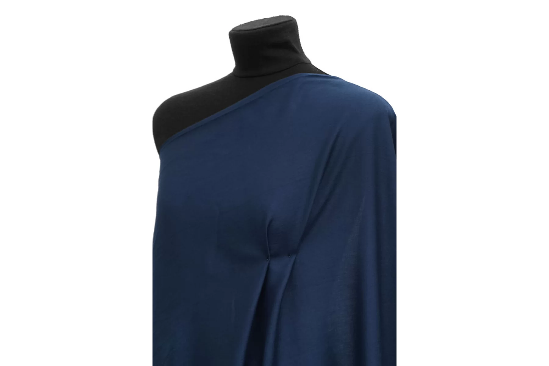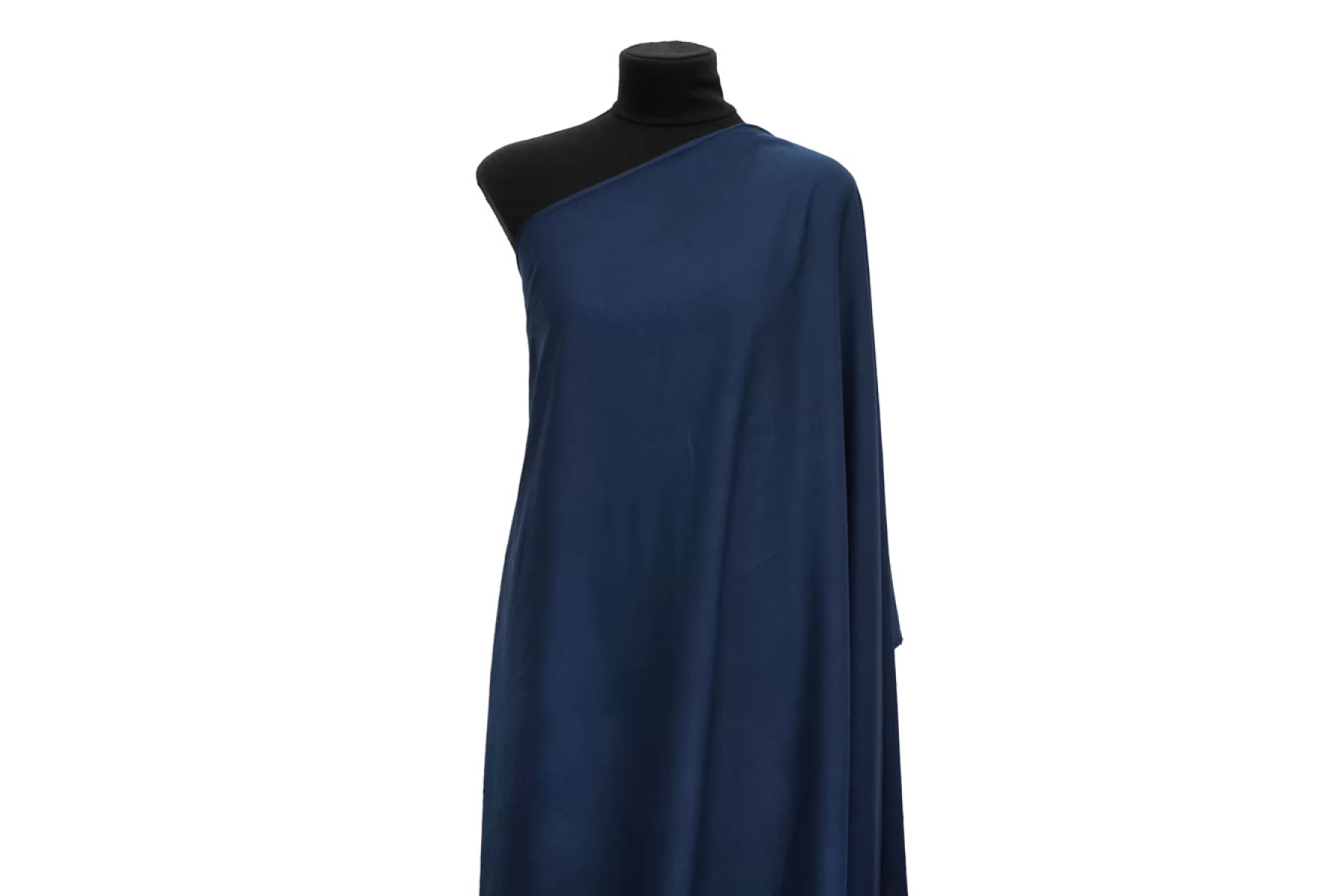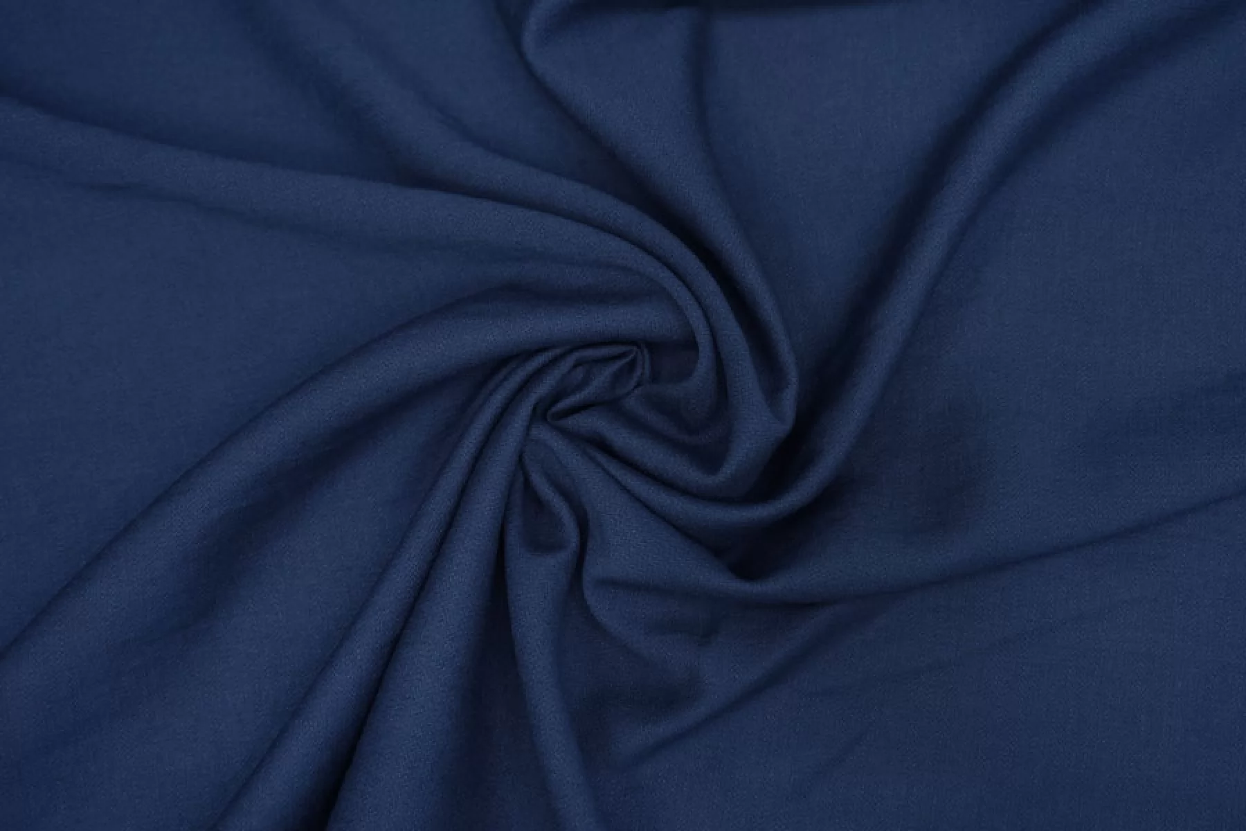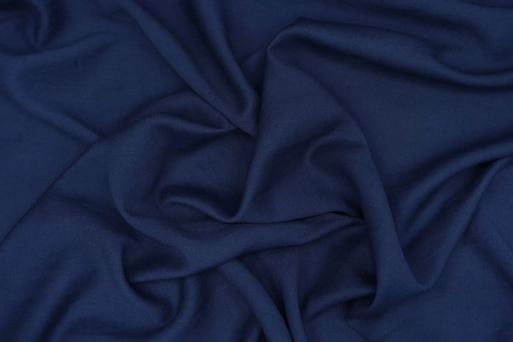 Плательная вискоза насыщенного синего цвета. Тактильно приятная, мягкая, со слегка шероховатой и слегка жатой поверхностью. Обладает красивой пластикой, красива в складках. Форму практически не держит. Немного просвечивает контур силуэта. Не тянется. Несильно сминается. С легким приятным лоском. Прекрасный вариант на платья, блузки, юбки и не только. Обязательно учитывайте возможную усадку 5-10%