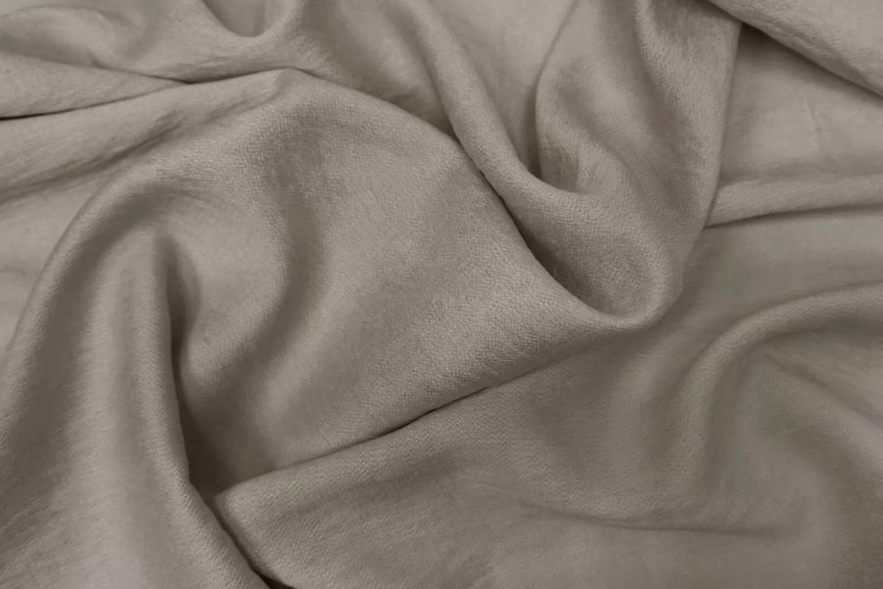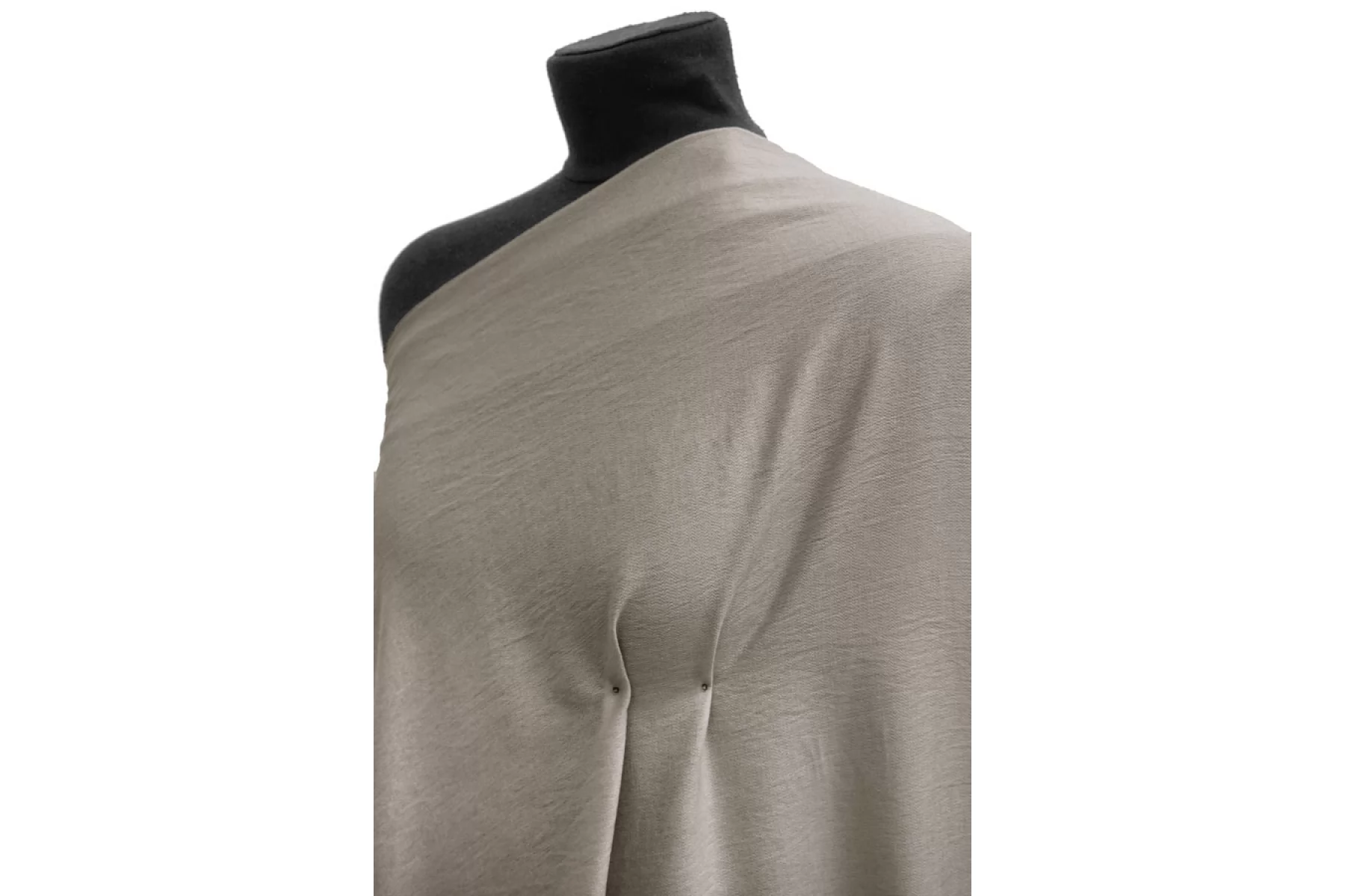 Плательная вискоза оттенка тауп. Тактильно приятная, мягкая, со слегка шероховатой и слегка жатой поверхностью. Обладает красивой пластикой, красива в складках. Форму практически не держит. Немного просвечивает контур силуэта. Не тянется. Несильно сминается. С легким приятным лоском. Прекрасный вариант на платья, блузки, юбки и не только. Обязательно учитывайте возможную усадку 5-10%
