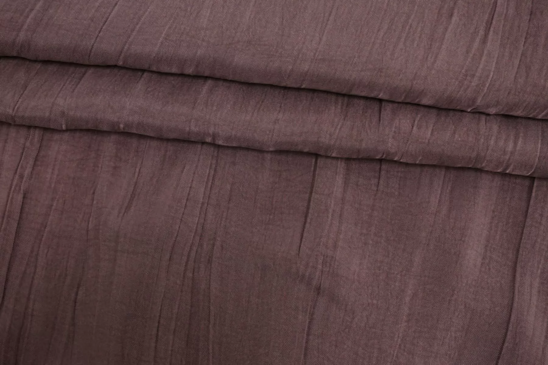 Внимание! Встречаются хаотичные как будто подплавленные участки см. фото. Плательная купра со своеобразной плиссировкой, цвет красивый, сложный как разбелённо-припылённо черешневый или тёмный оттенок какао (тут есть и коричневый, и розоватый тон). Материал тактильно очень приятный, мягкий, напоминает замшу на ощупь. Классическая для купры белёсость. Не тянется. Сминается. Немного просвечивает контур силуэта, если смотреть прямо на просвет. Красив в пластике. Вариант на платья, рубашки, брюки, юбки и не только.