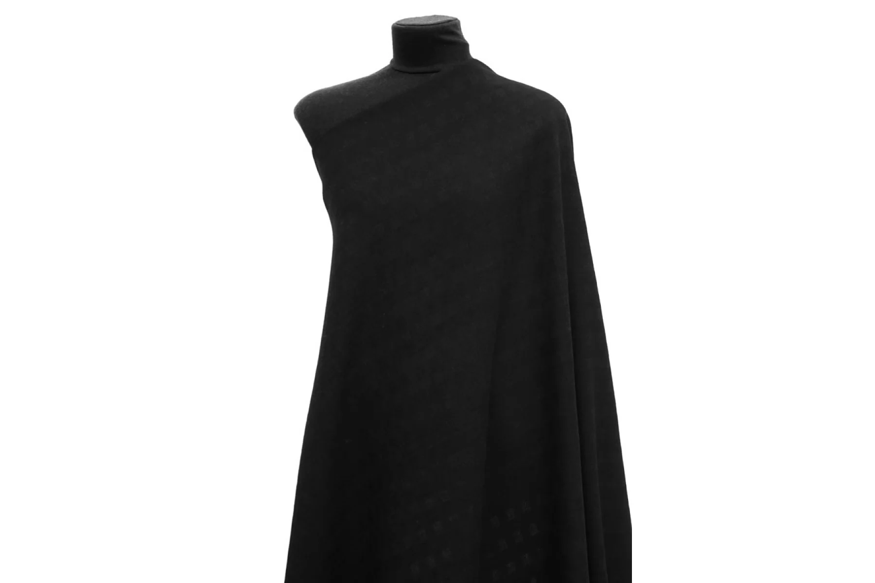 Шикарная плательная шерсть мережка от Burberry в черном цвете. Приятная мягкая и суховатая наощупь, совсем немножко колется. Плетение образуется слегка заметную клетку. Просвечивает силуэт. Не тянется. Форму держит совсем слабо. Прекрасный вариант на платья, юбки, жакеты и другие костюмные варианты. Уход деликатный.