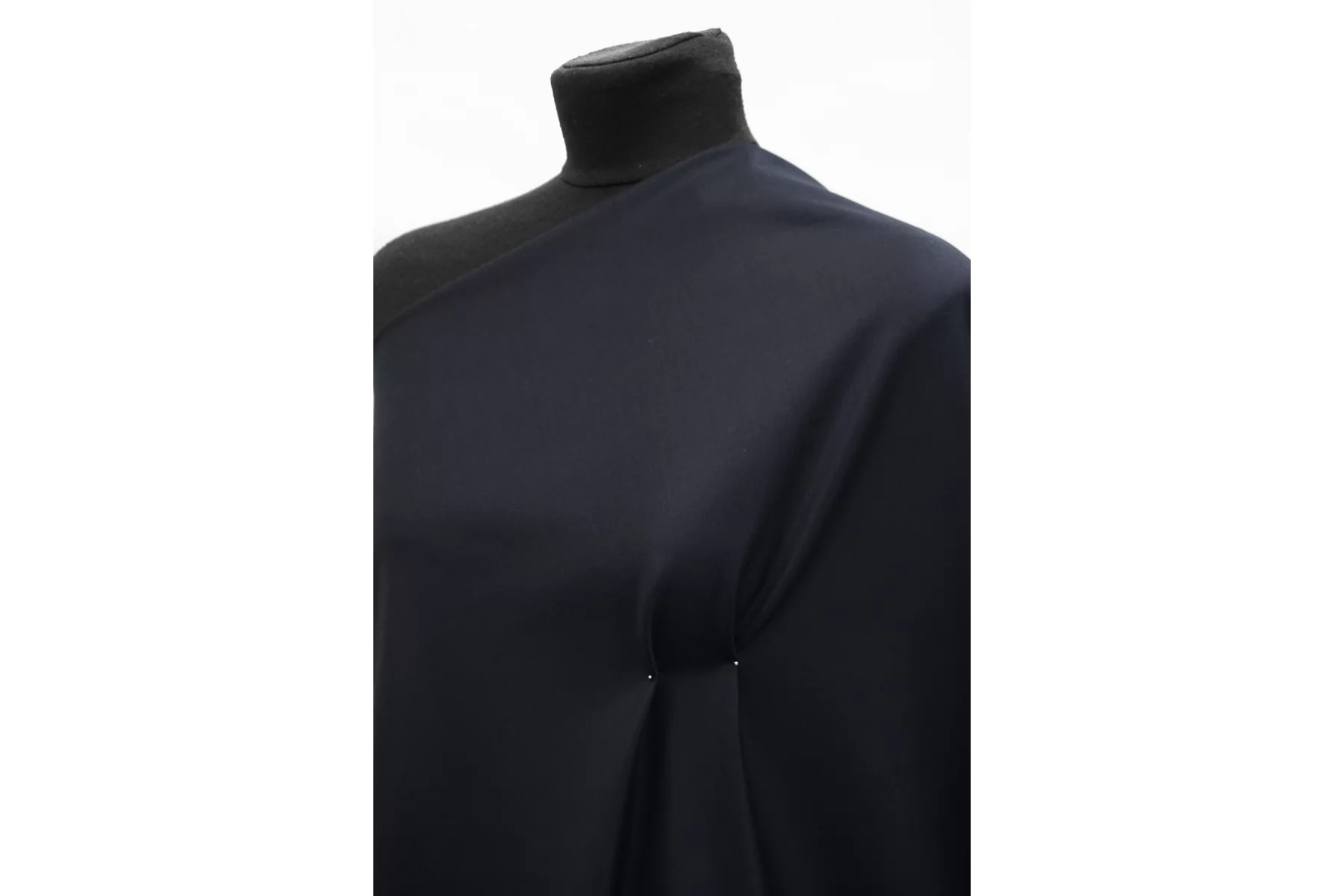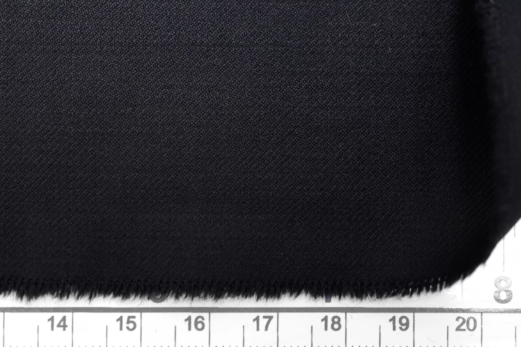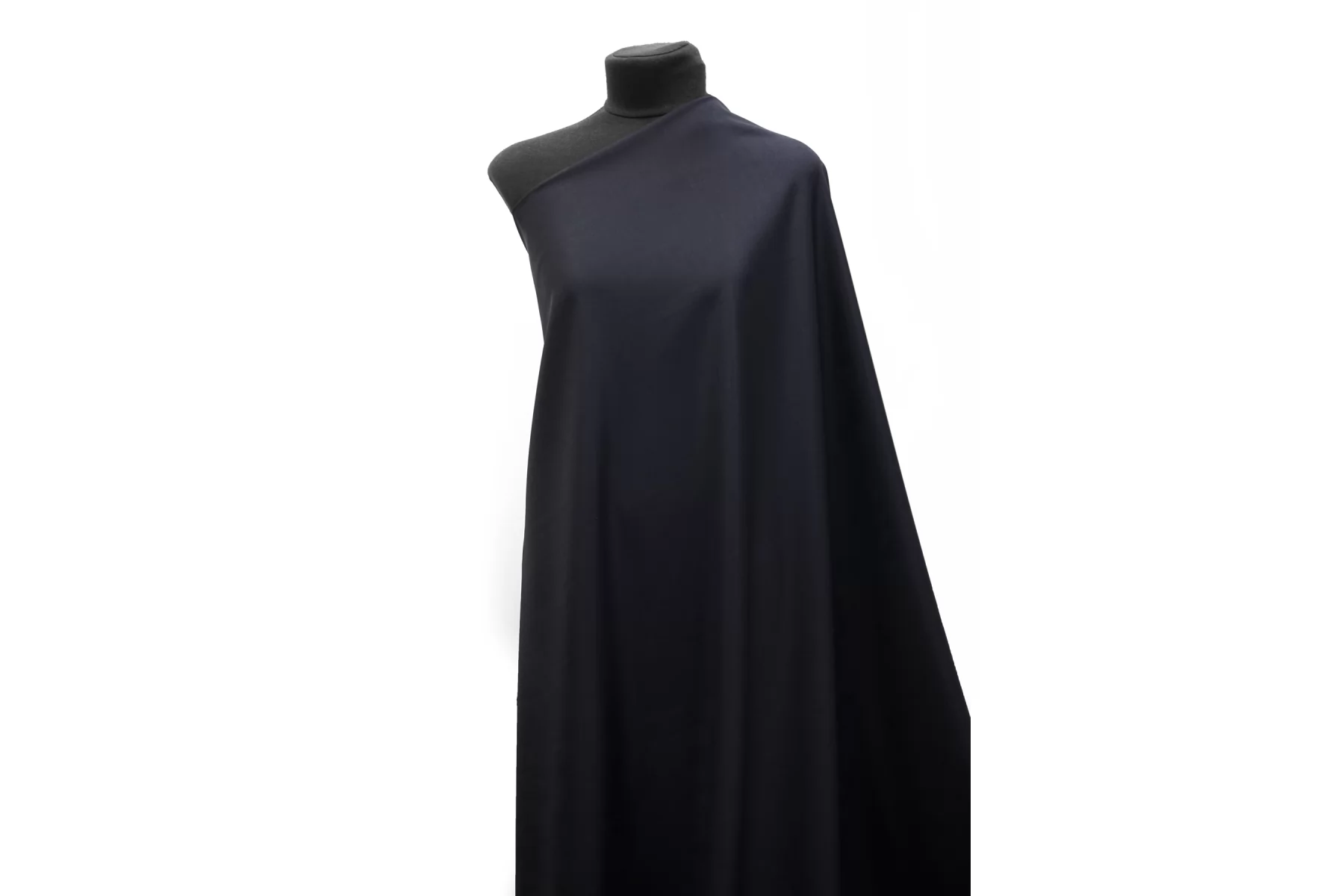 Прекрасная полированная шерсть качества virgin плательной плотности черно-синего оттенка диагонального плетения. Мягкая, гладкая, тонкая, тактильно невероятно приятная и не колется. Обладает дорогим лоском. Плотненькая, не просвечивает. Очень пластичная. Форму держит, но слабо. Неплохо тянется. Шьем зимние рубашки, платья, юбки, брюки. Уход деликатный.