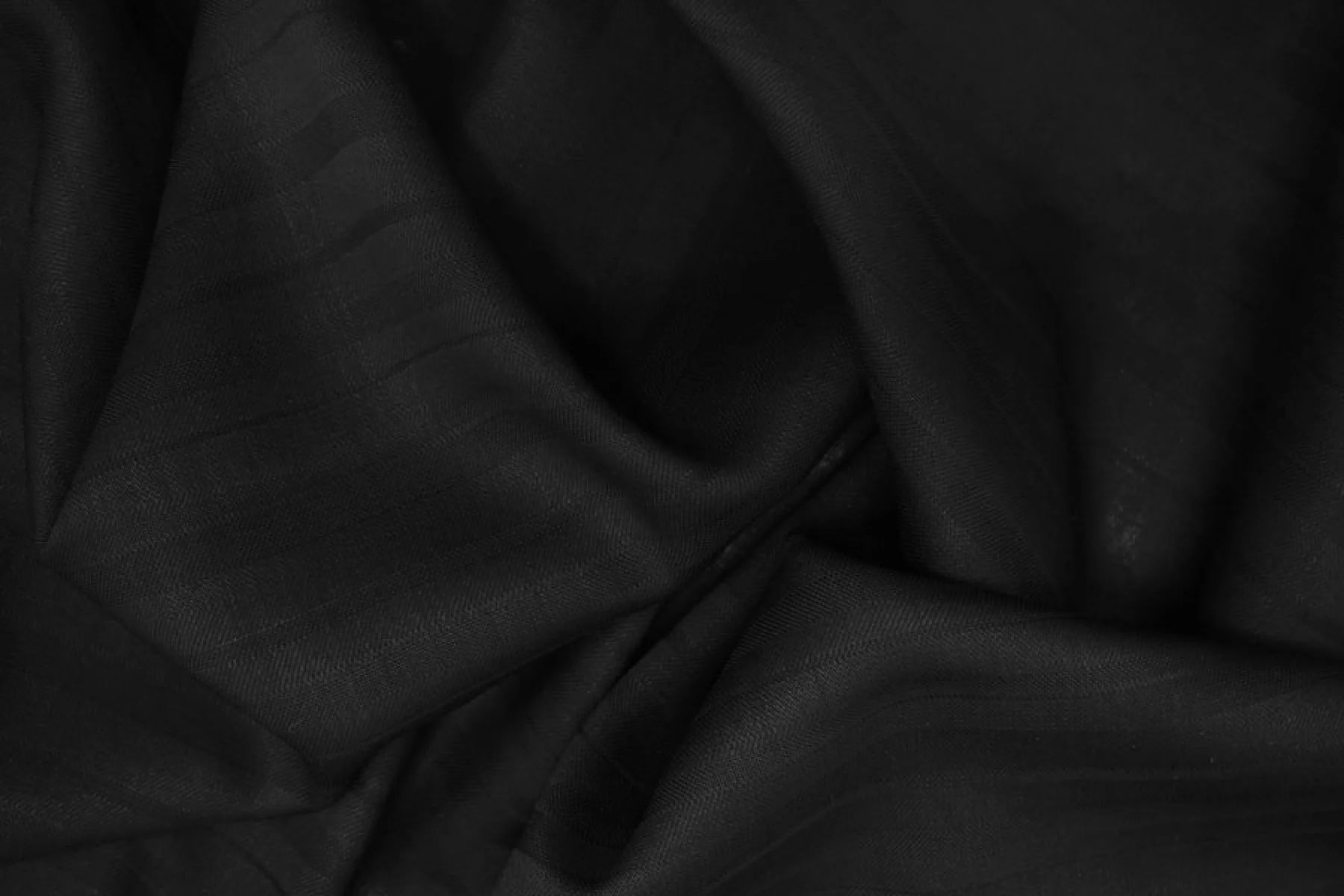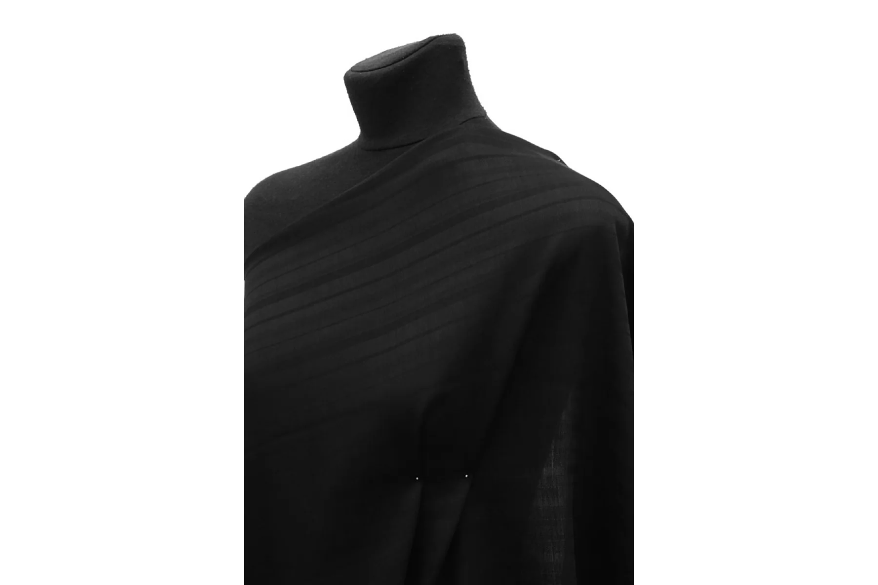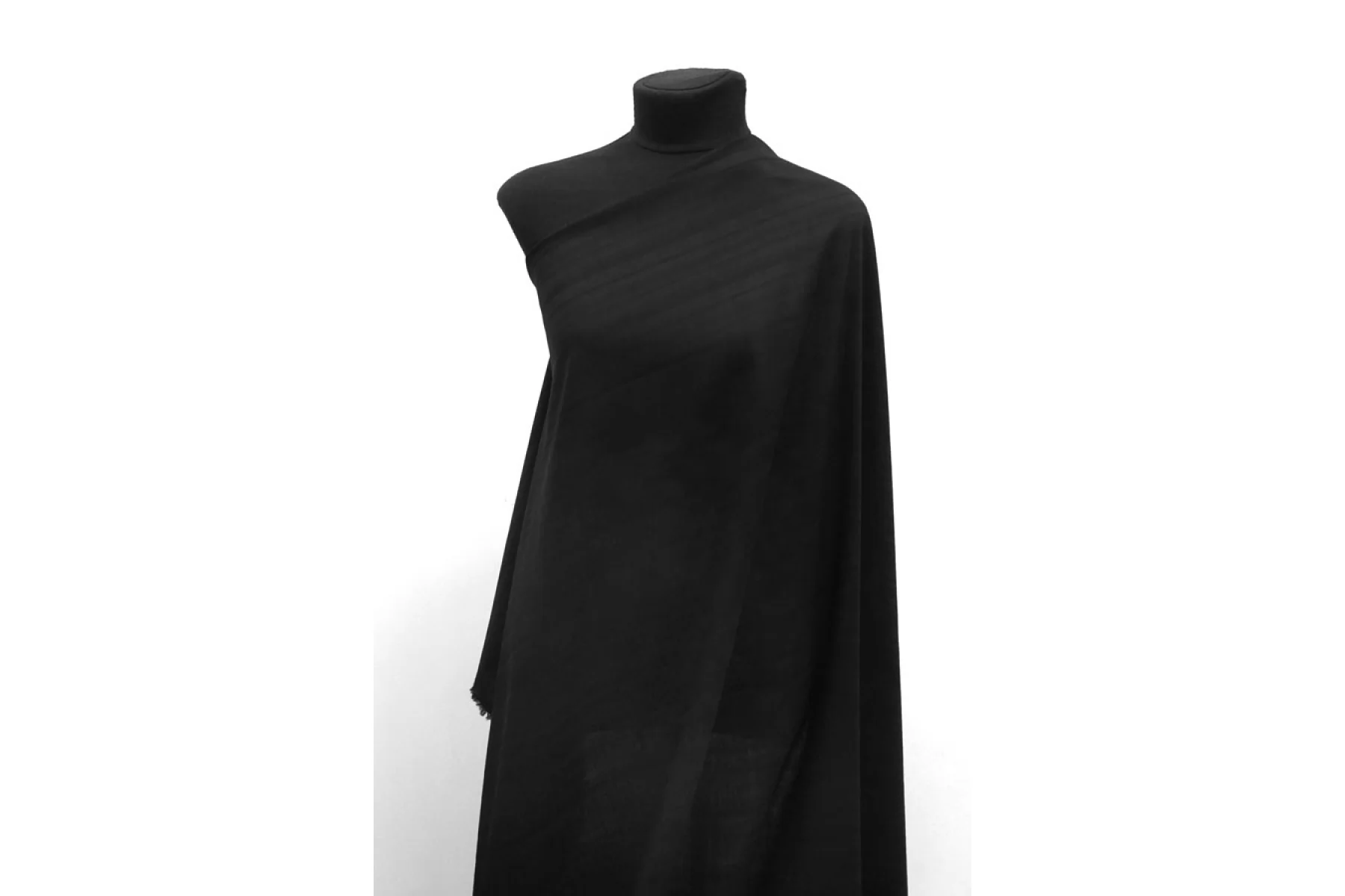Интересная ткань из шерсти и вискозы, по плотности плательно-рубашечная, в с интересной фактурой. Классический чёрный цвет. Пластичная, тонкая (но плотная), просвечивает насквозь в один слой. Чувствительной коже может немного колоться. Не тянется, упругая пластика. Подойдет для пошива платья, рубашки, юбки. Используйте подклад при необходимости. Уход деликатный.