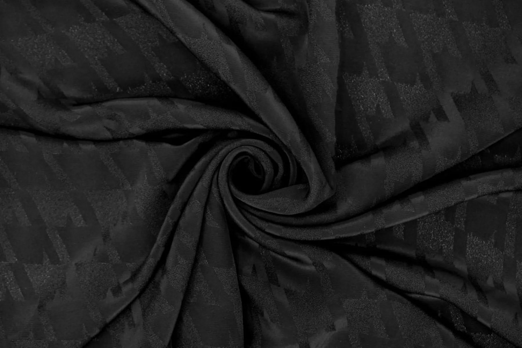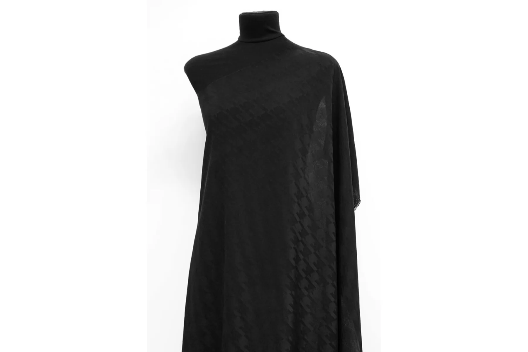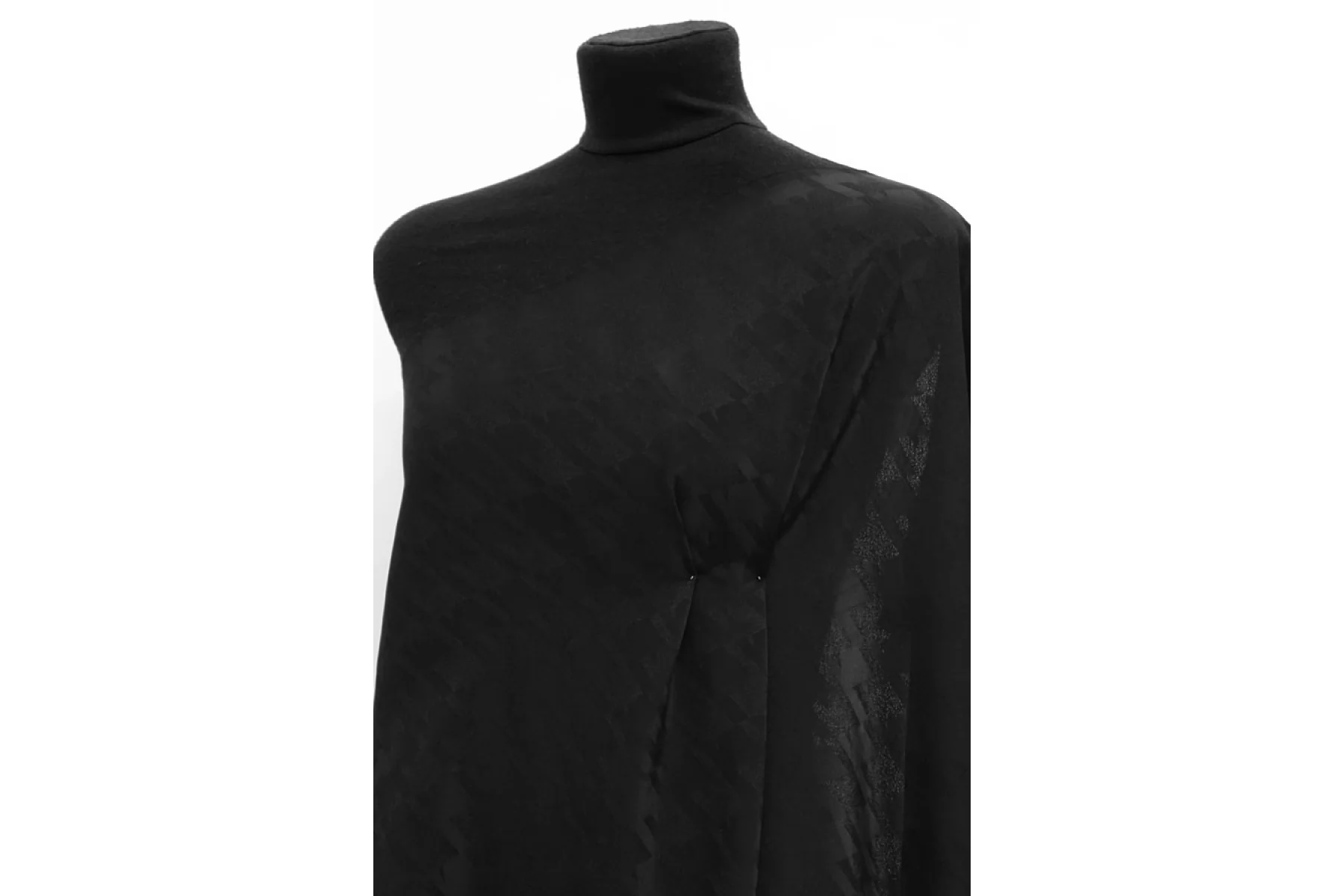 Очень классная блузочно-плательная жаккардовая вискоза с выработкой абстрактной гусиной лапки в черном цвете. Приятная, тонкая, пластичная и мягкая. Просвечивает силуэт. Немного мнется. Форму не держит. Красива в складках. Прекрасно подойдет на варианты платья, юбки, блузки и одежды в пижамном стиле. Уход за материалом деликатный. При необходимости используйте подкладочный материал. Учитываем усадку порядка 5-10%.