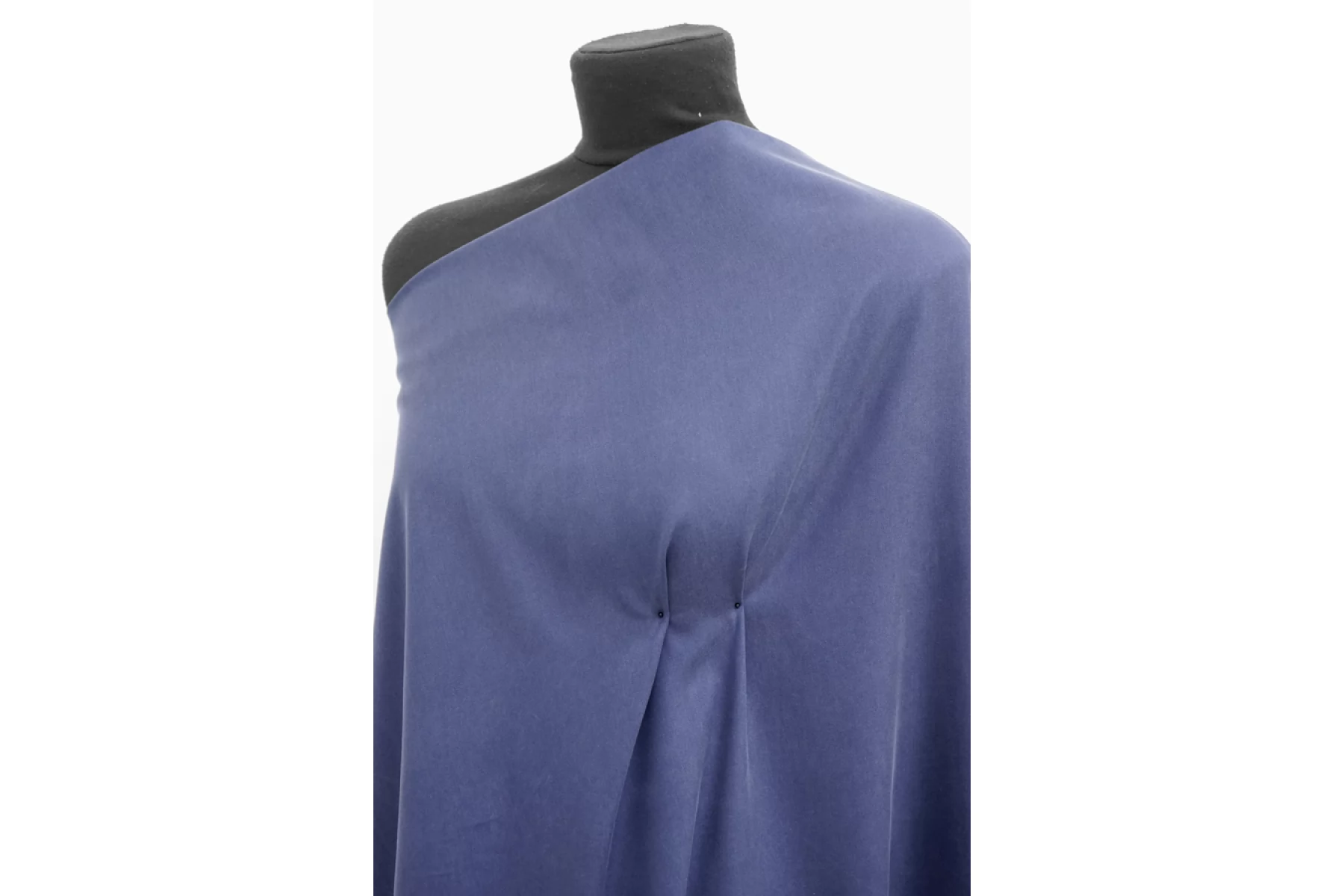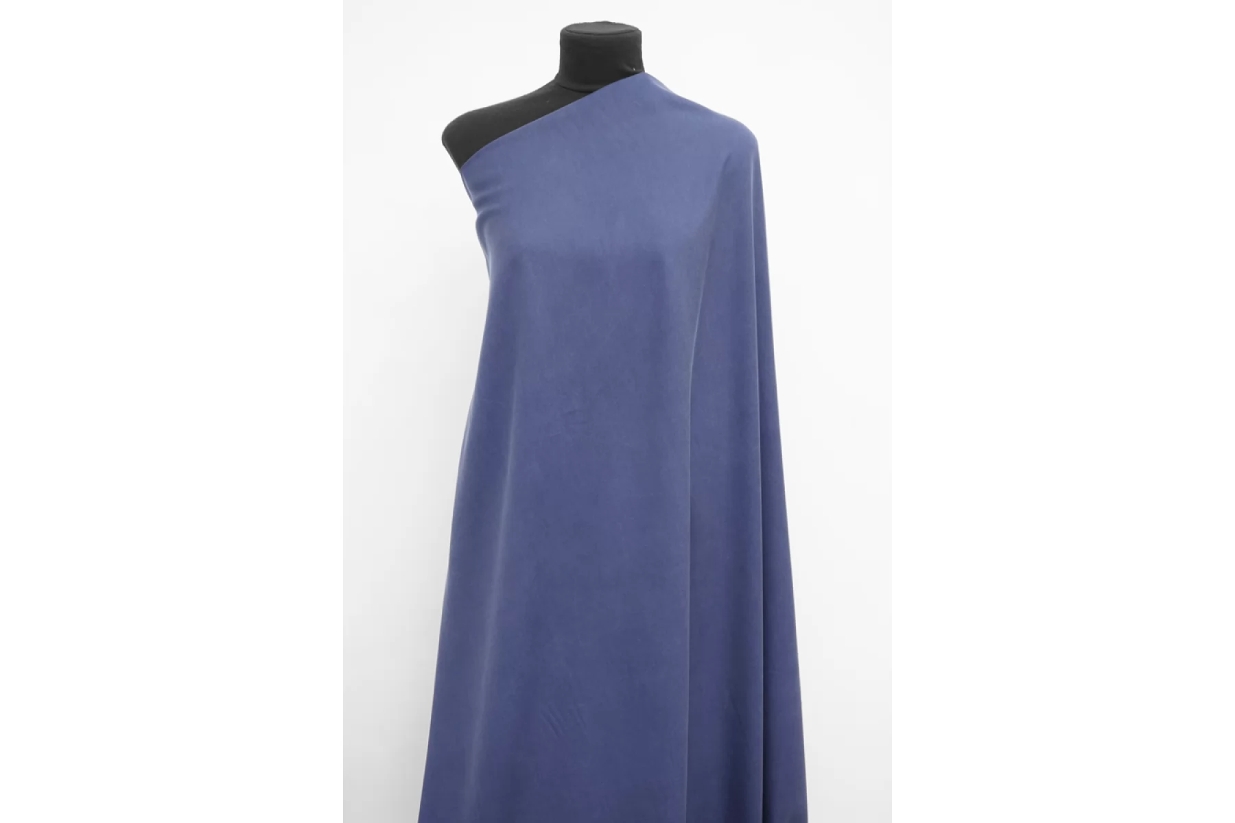 Очень классная плательно-костюмная купра с хлопком диагонального плетения в припыленном синем оттенке. Материал тактильно очень приятный, очень мягкий, бархатистый. Плотненький по плетению. Пластичный. Слегка пружинит за счет плетения. Сминается. Просвечивает силуэт, если смотреть прямо на просвет. Хорошо драпируется и красиво смотрится в складках. Форму практически не держит. Отличный вариант для пошива костюма, платья, мягкого жакета, юбки или брюк. При необходимости используйте подкладочный материал.