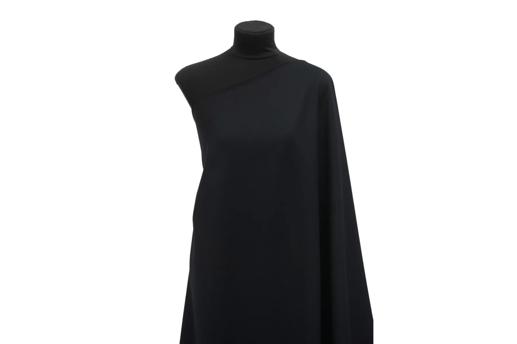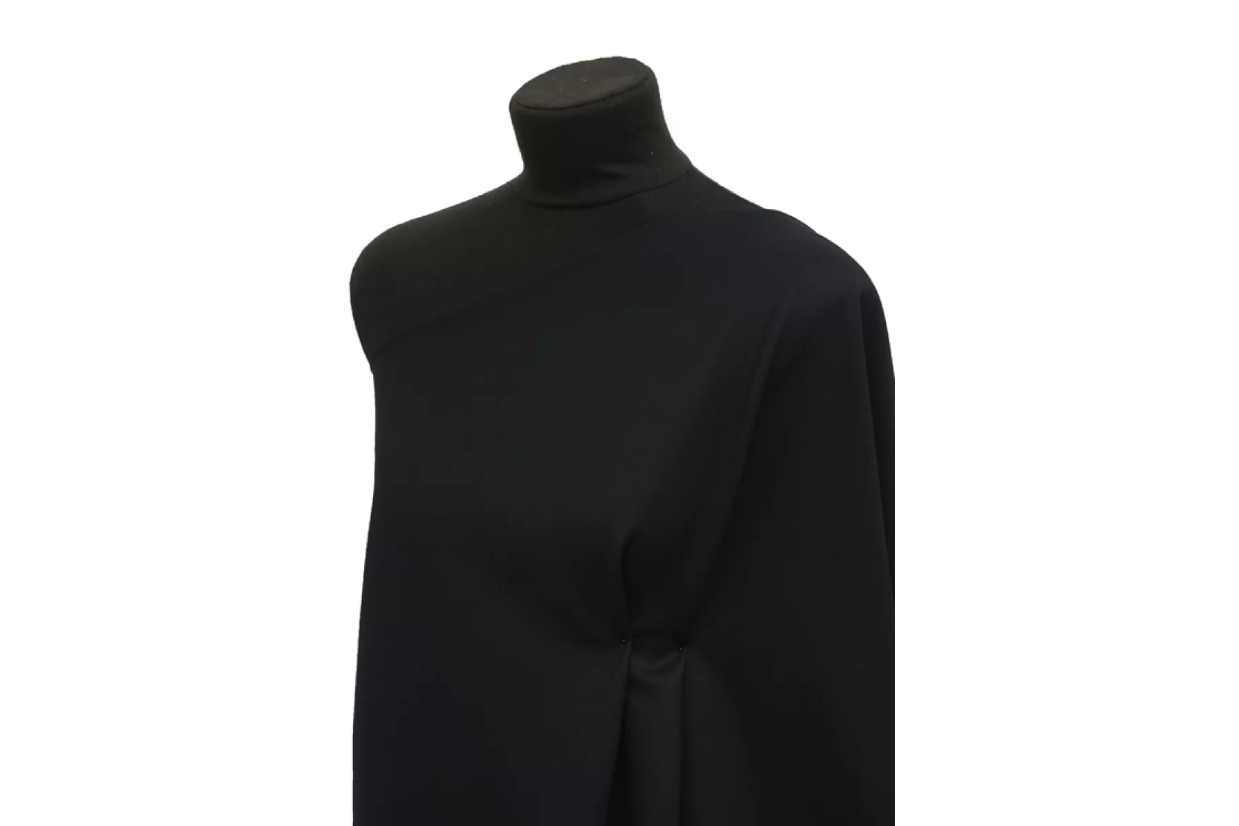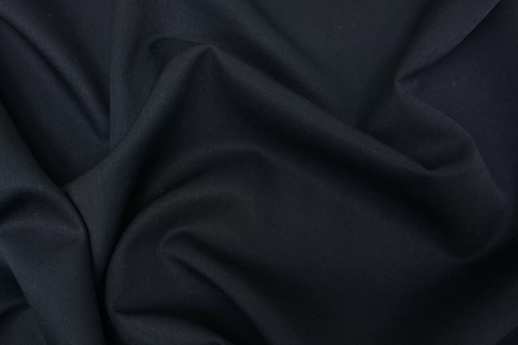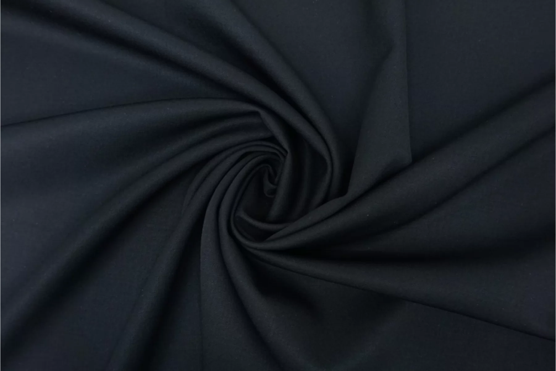 Итальянская костюмная шерсть диагонального плетения глубокого темно-синего оттенка. Тактильно сухая, мягкая, не колется. Не просвечивает, не тянется и не мнется. Обладает легким лоском. Отлично держит форму. Шьем жакеты, костюмные варианты, юбки, брюки и не только. При необходимости используйте подкладочный материал. Уход за шерстью деликатный.