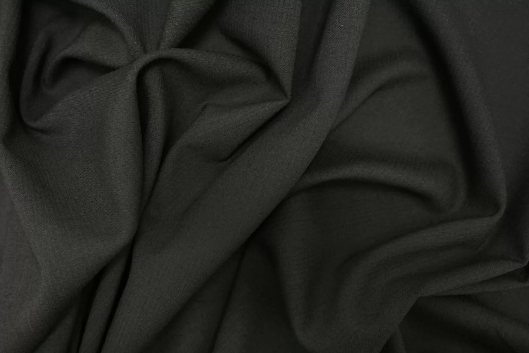 Классная костюмно-плательная шерсть в темном оттенке хаки. Мягкая, тонкая, тактильно приятная, немножко суховатая и шероховатая. Слегка колется. С очень легким ворсом. Шикарно тянется. Немного просвечивает при растяжении. Форму практически не держит. Очень пластичная. Шьем зимние рубашки, платья, юбки, брюки. Уход деликатный.