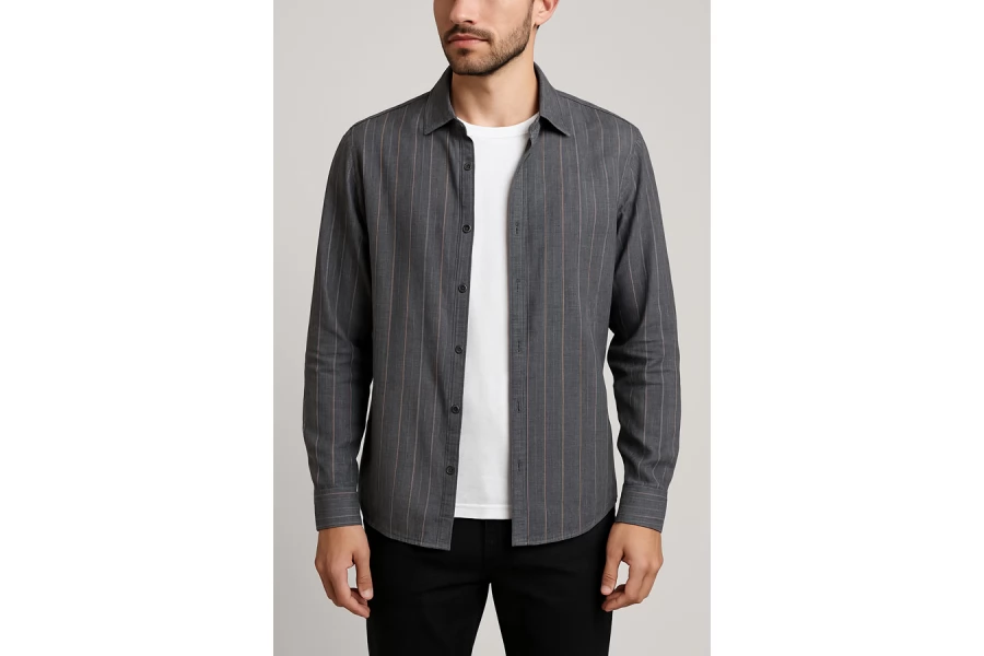 Плательно-рубашечный хлопок с шерстью в полоску Серый BRS H5 A40 13082538
