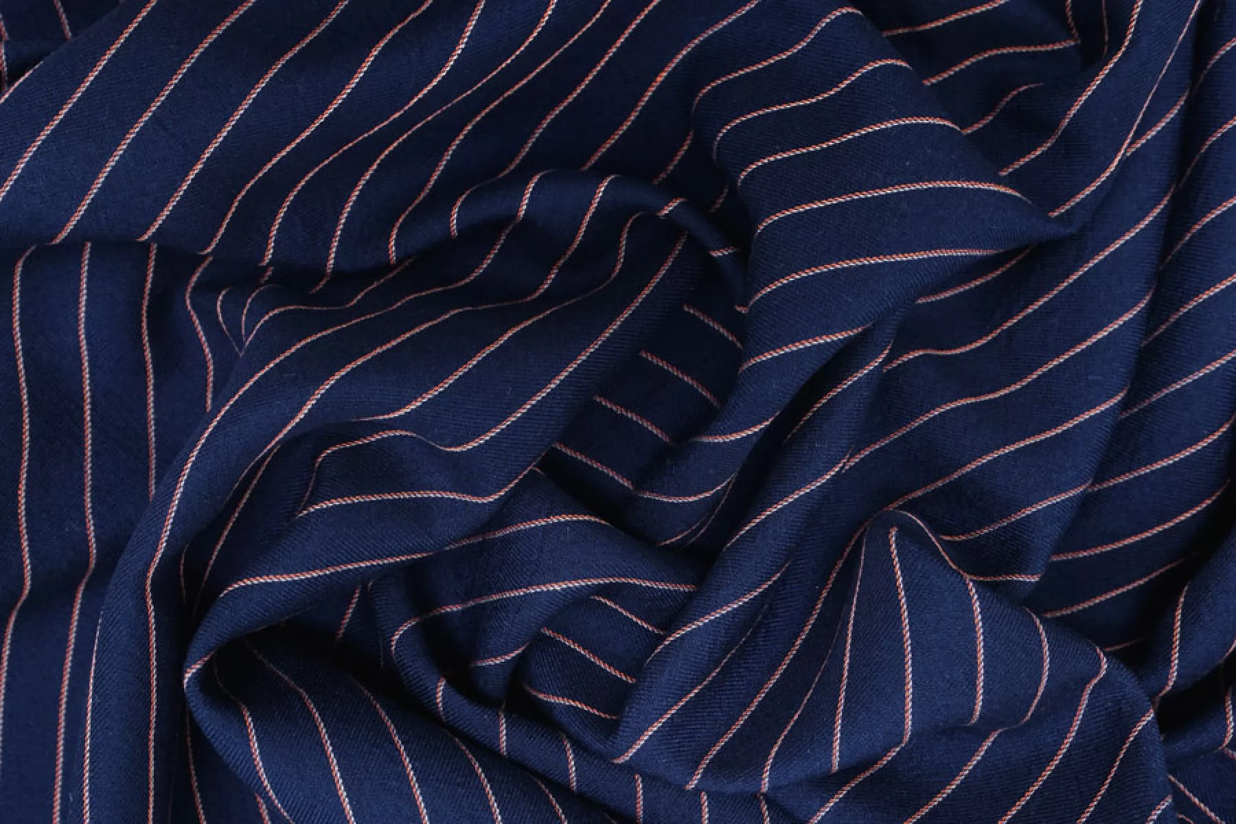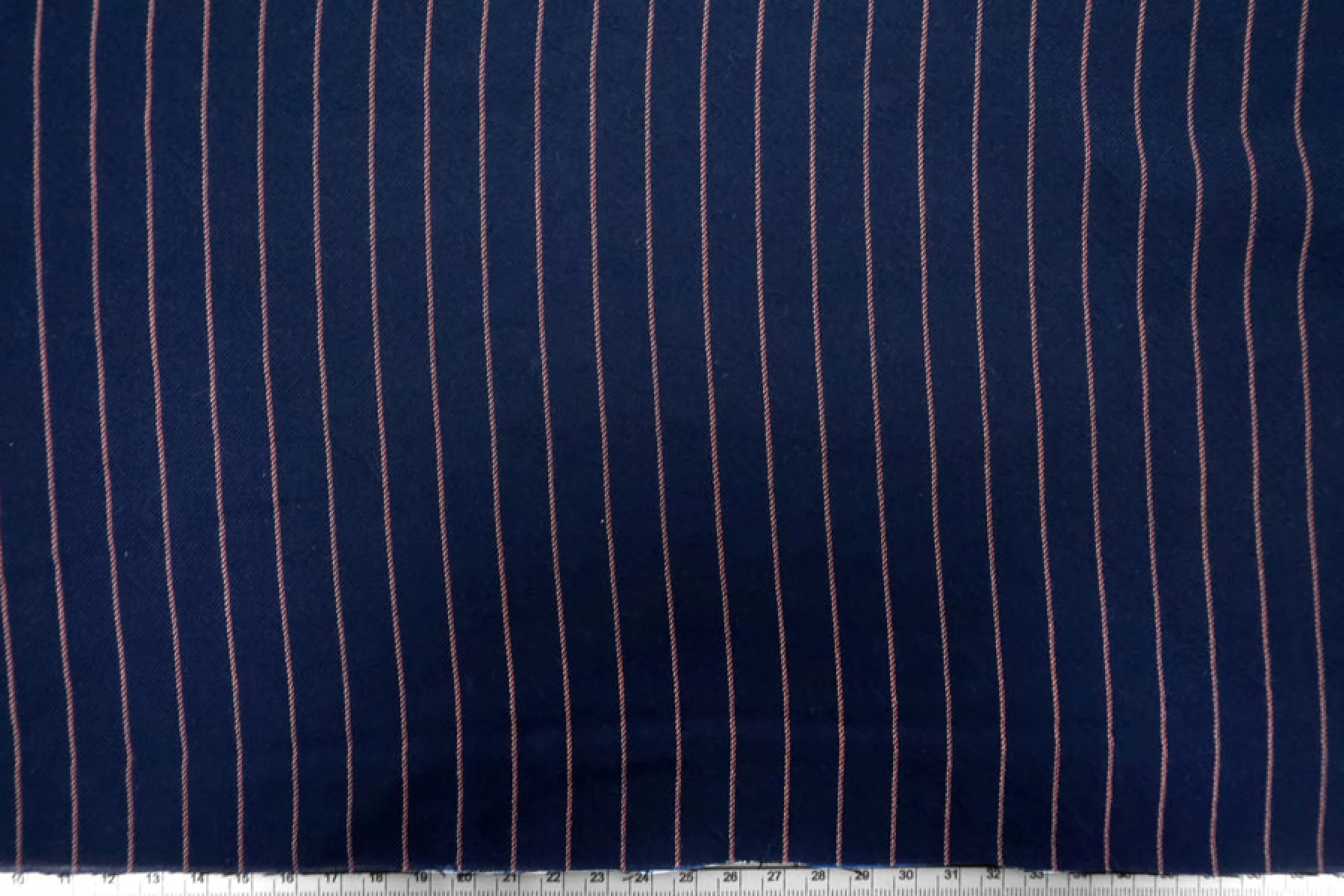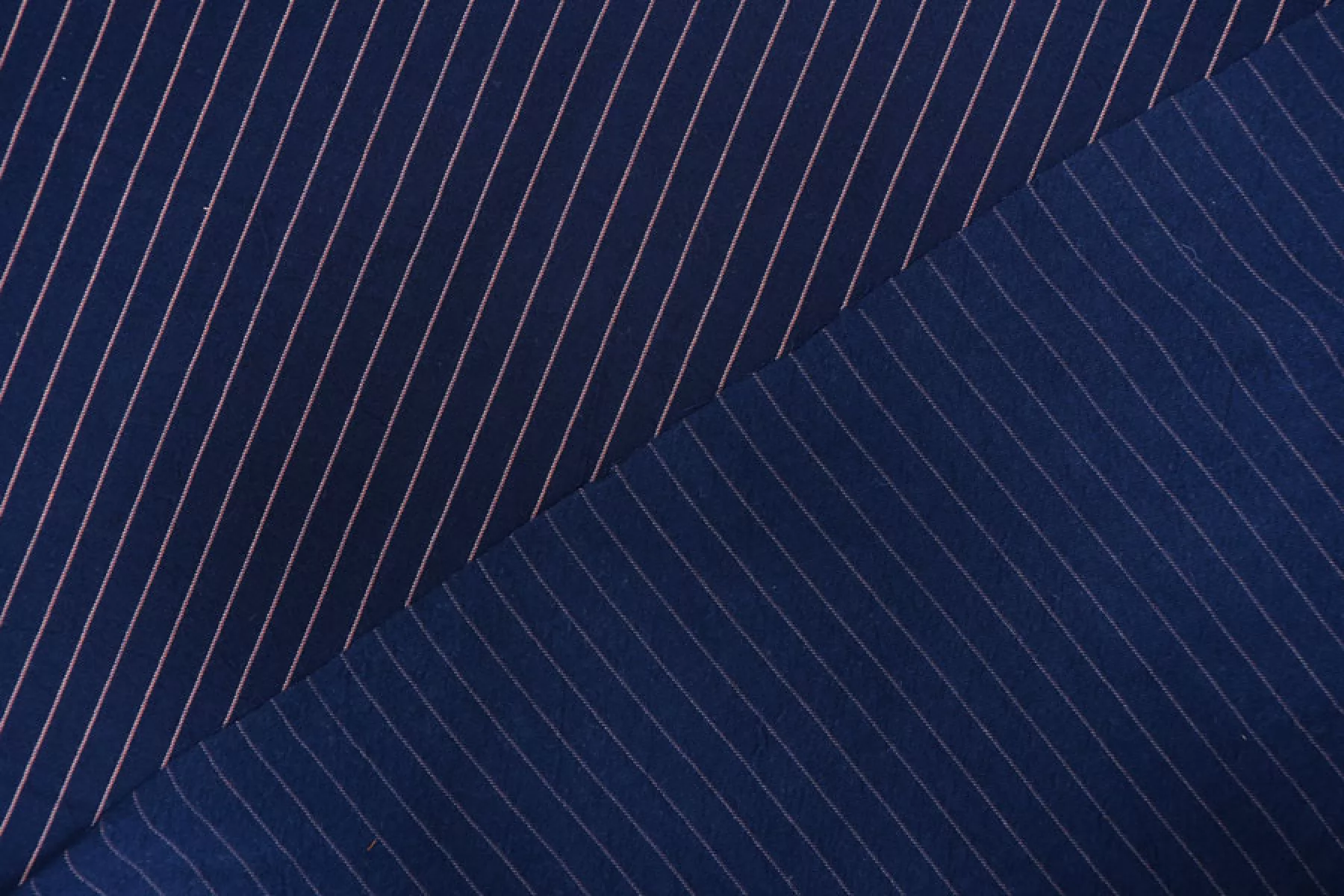 Прекрасный плательно-рубашечный хлопок в полоску, которая расположена вдоль кромки. Основной цвет тёмно-синий, плюс тонкие полосы белого и розового цвета. Материал очень приятный, мягкий. Изнаночная сторона чуть ворсистая. Не очень толстый но при этом достаточно плотный. Не просвечивает, не тянется. Мнется. Пластичный, форму практически не держит. Отличный вариант на рубашки, платья, юбки, лёгкие брюки или шорты, летние костюмы.