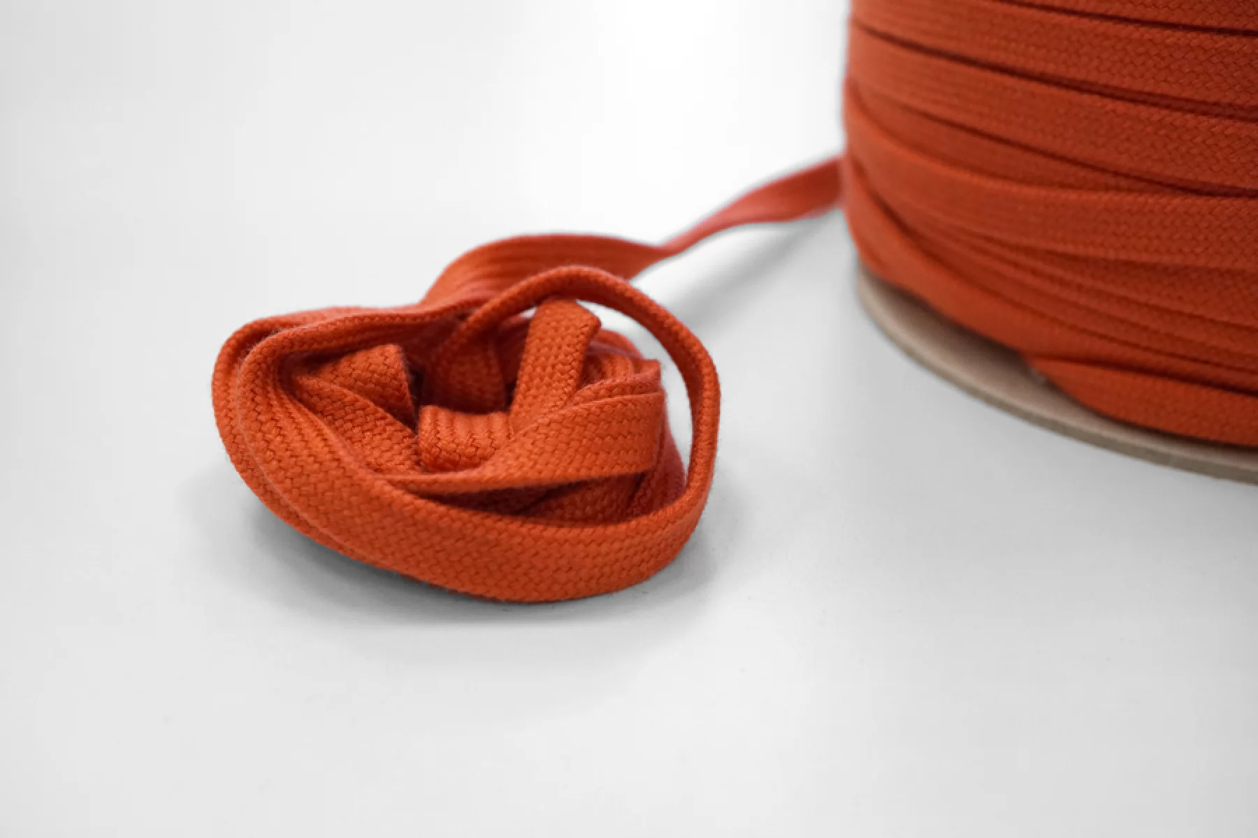 Плоский хлопковый шнур оранжевого цвета, ширина 1 см.