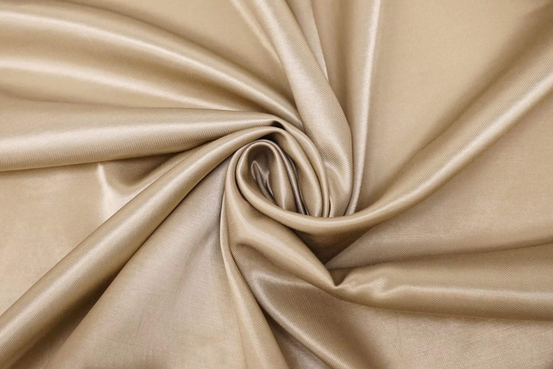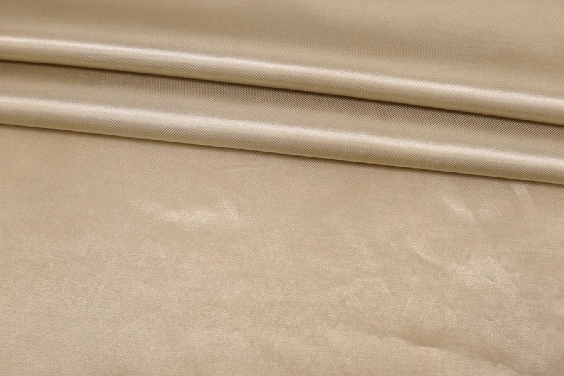 Шикарная подкладочная купра с хлопком в припыленно-бежевом оттенке. Шелковистая, очень мягкая, тактильно приятная, мягкая, с красивым блеском. Достаточно плотная. Немного просвечивает силуэт. Подойдет для изделий на костюмы: к пиджакам, жилеткам, юбкам и брюкам, а также на пальто и шубы. Обязательно учитывайте усадку 5-10%.