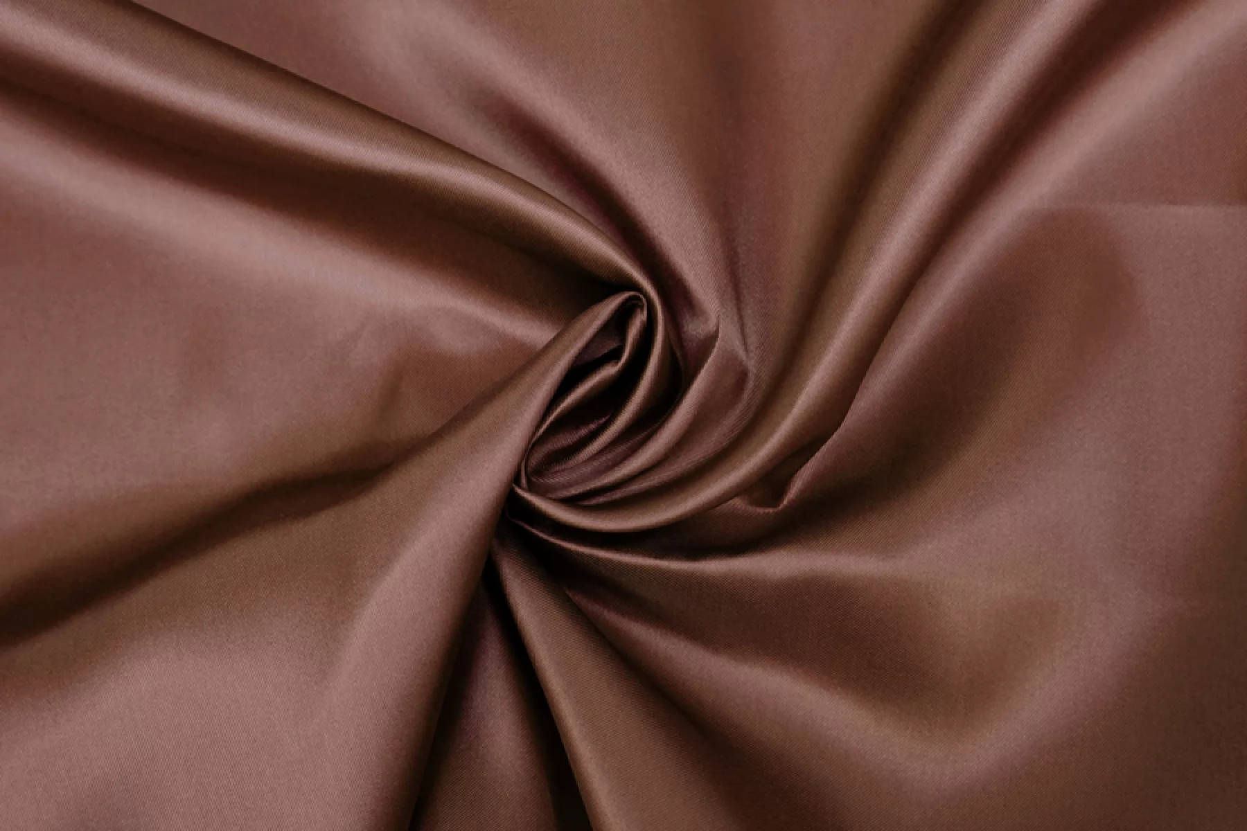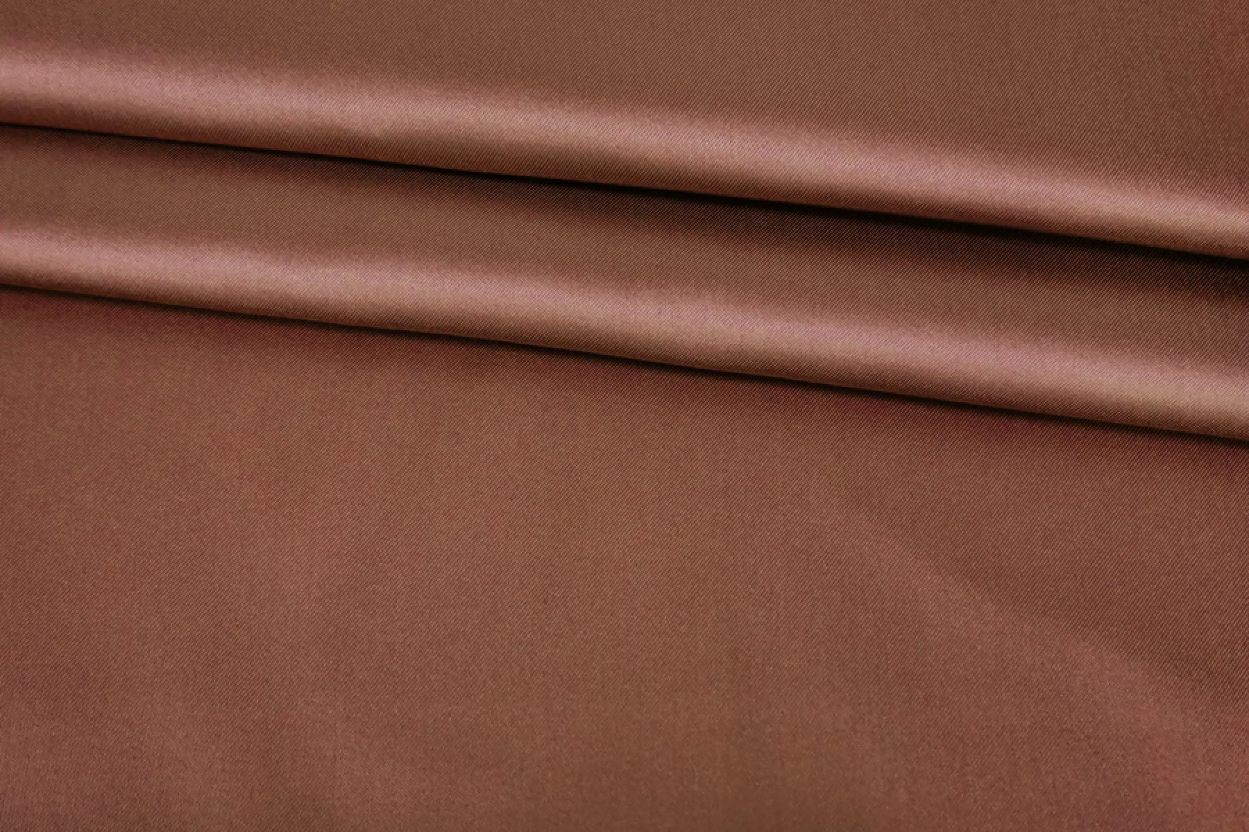 Подкладочная атласная итальянская вискоза с ацетатом коричневого цвета. Гладкая, шелковистая, тактильно приятная, с красивым блеском. Подкладочный материал плотный, не просвечивает. Подойдет для изделий на верхнюю группу: пальто, шубы, куртки и другое. Обязательно учитывайте усадку 5-10%.