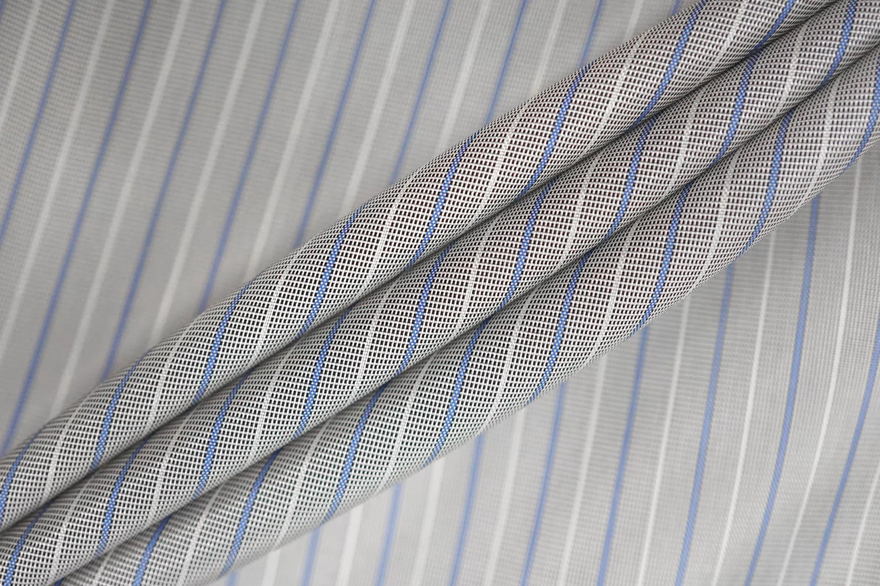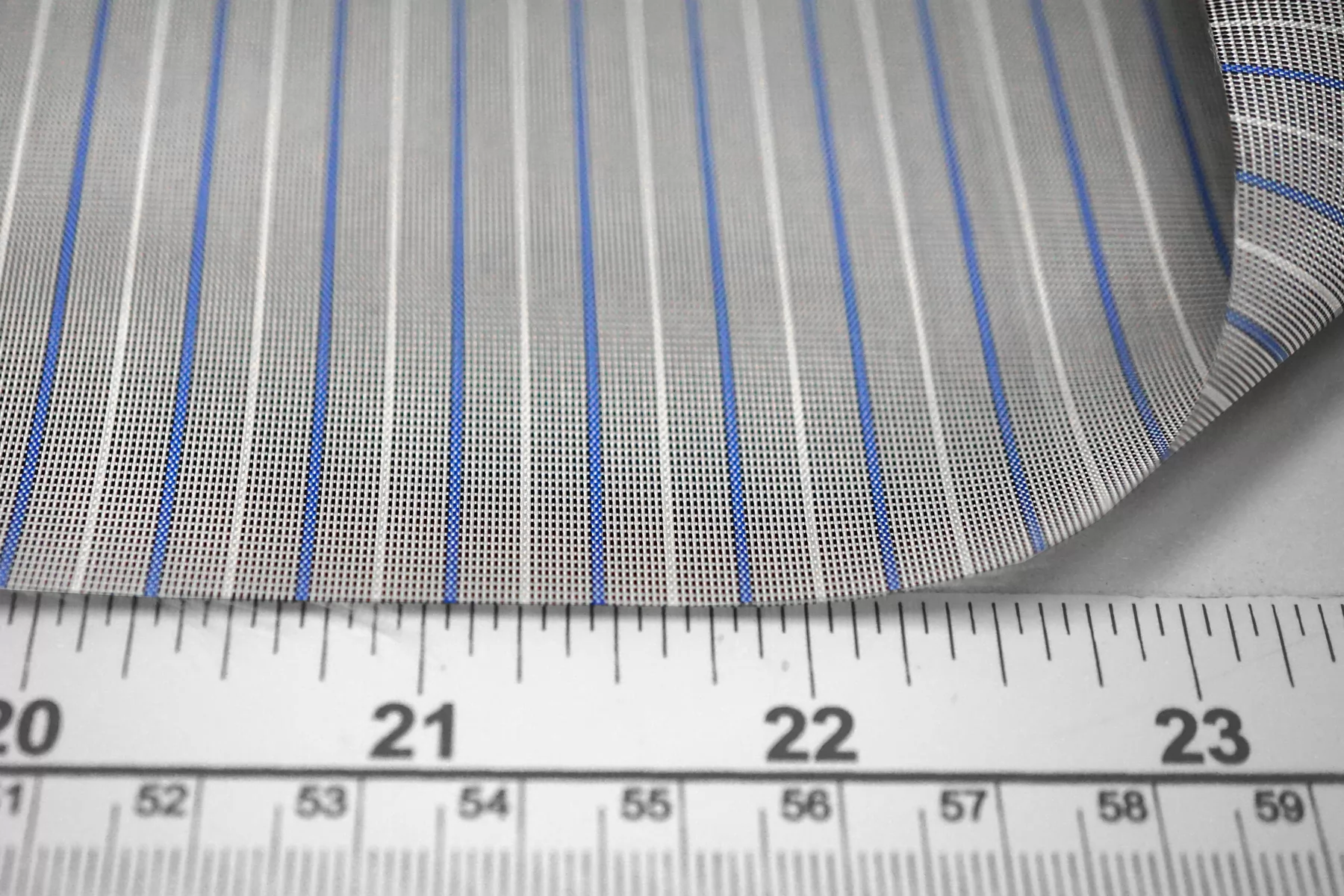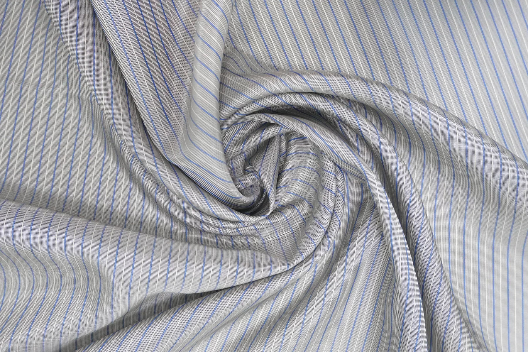 Подкладочная вискоза в полоску, нити голубого и молочного цвета. Тактильно приятная, мягкая, скользящая, тонкая. Обладает красивым лоском. Не тянется. Просвечивает. Прекрасно подойдет для костюмов, пальто. Обязательно учитывайте возможную усадку 5-10%