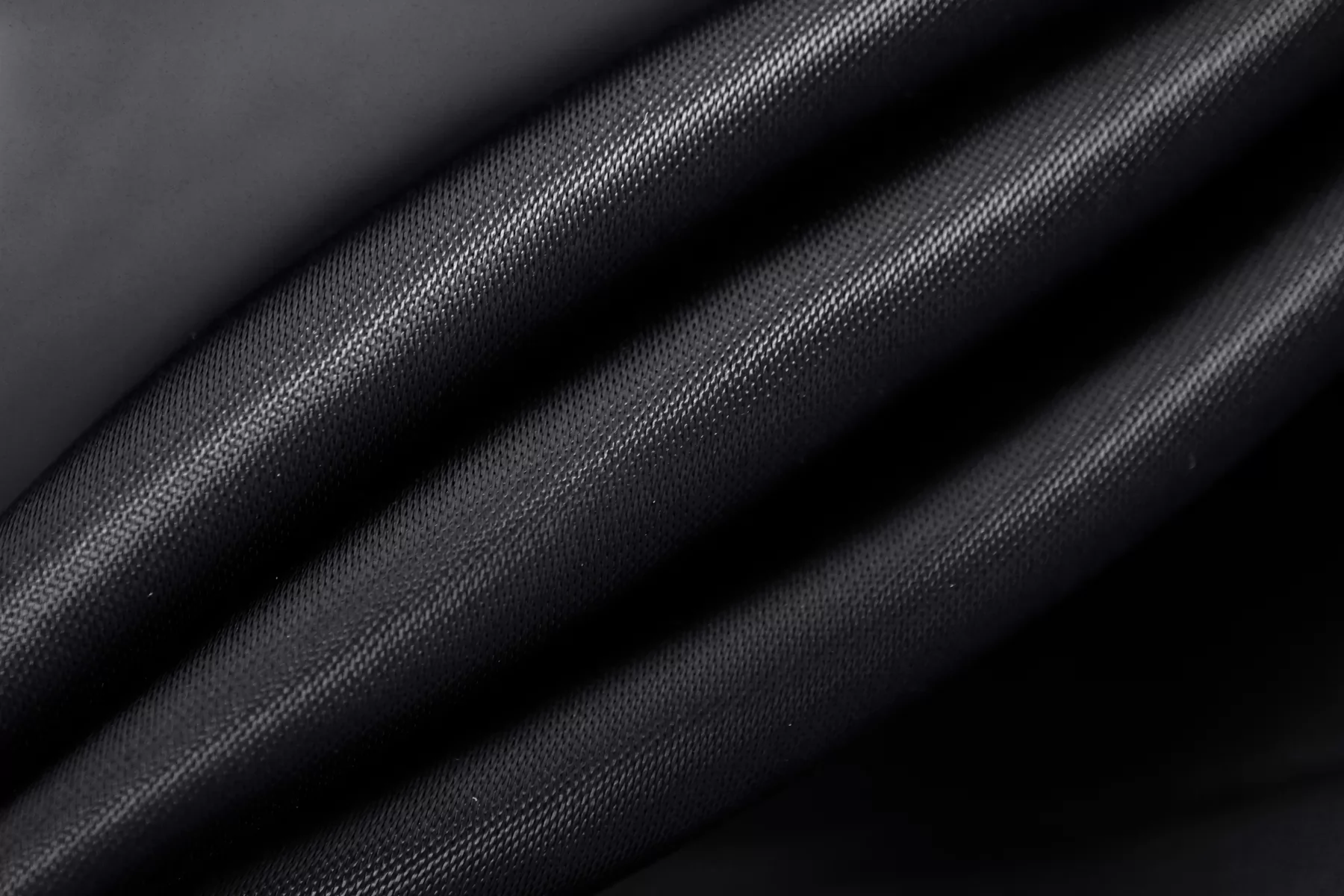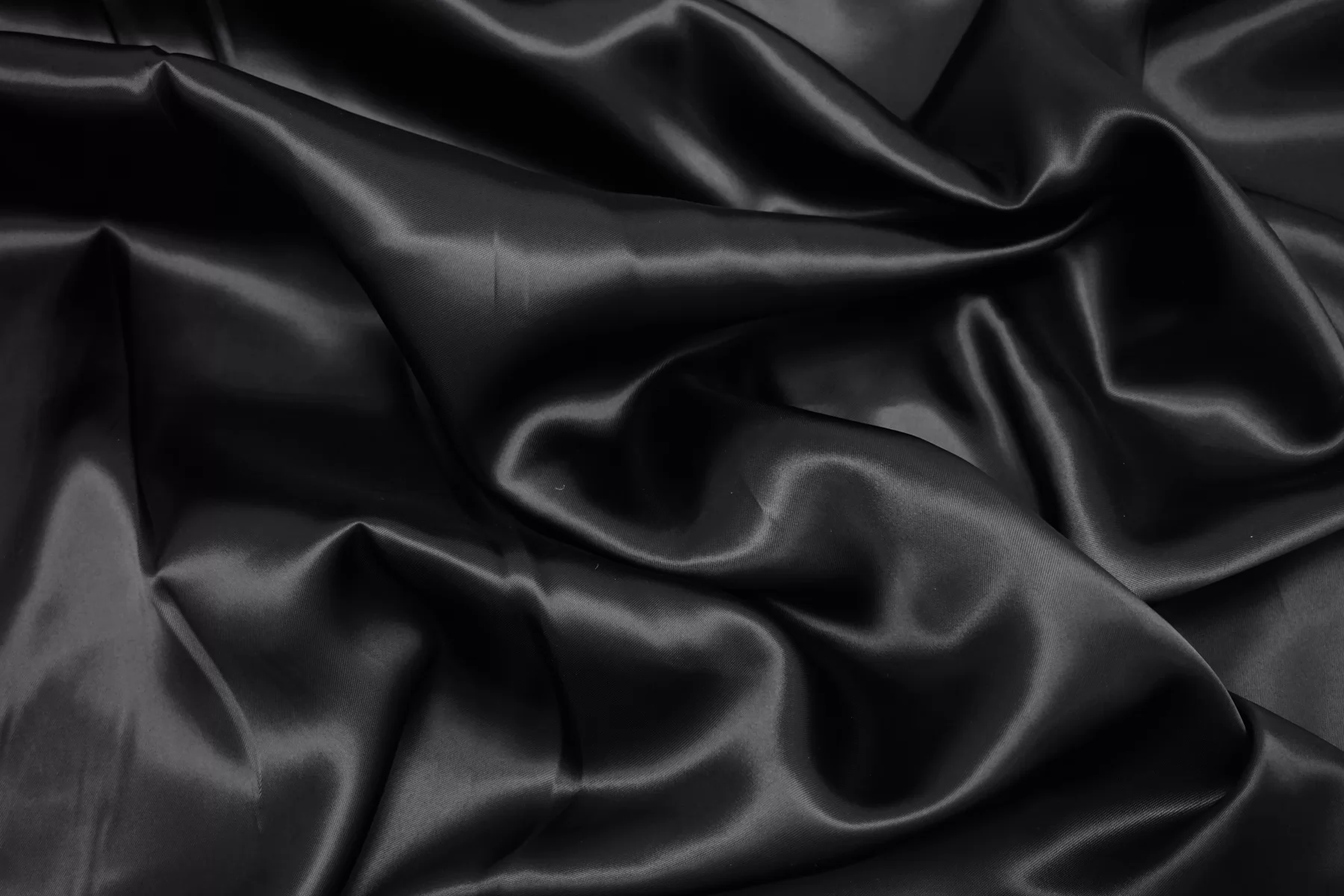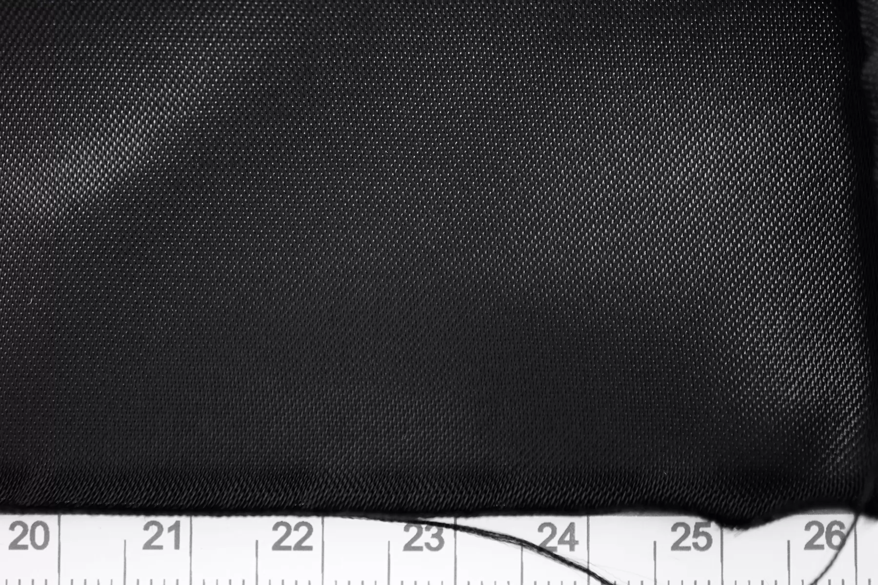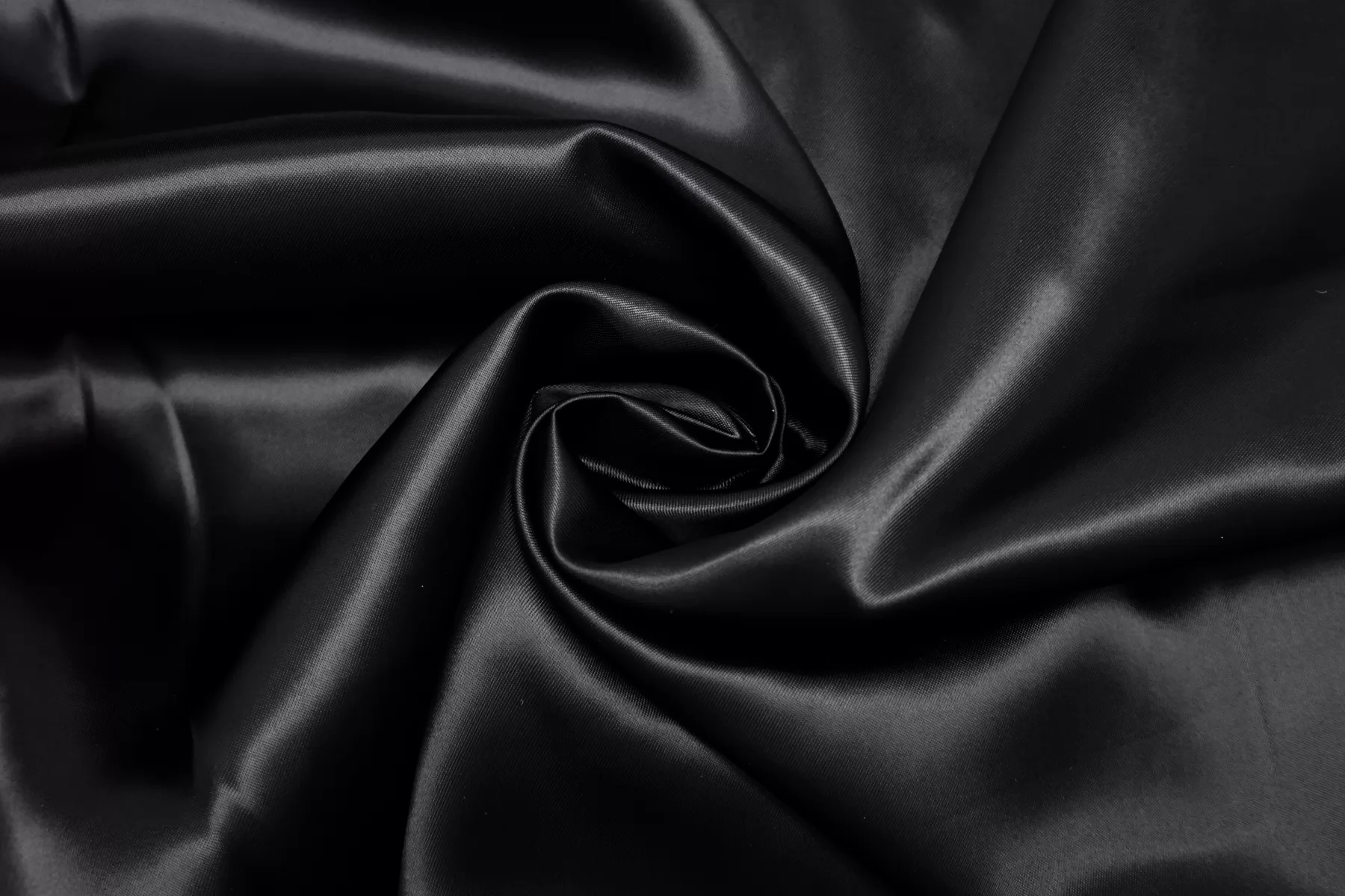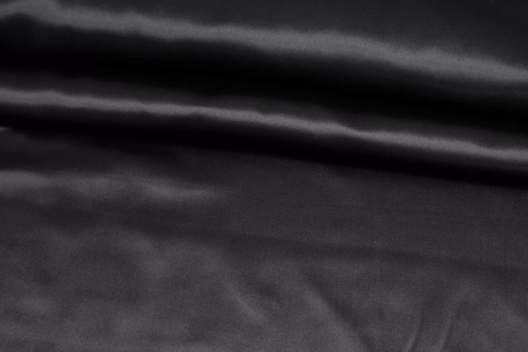 Подкладочная вискоза чёрного цвета, диагонального плетения. Гладкая, тонкая, обладает легким красивым лоском. Не тянется. Мнется. Подойдет как подкладочный материал к костюмно-плательной группе, и для демисезонных пальто, курток. Обязательно учитывайте возможную усадку 5-10%