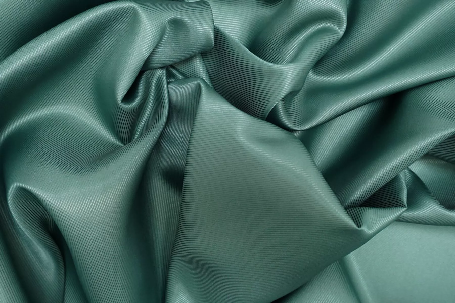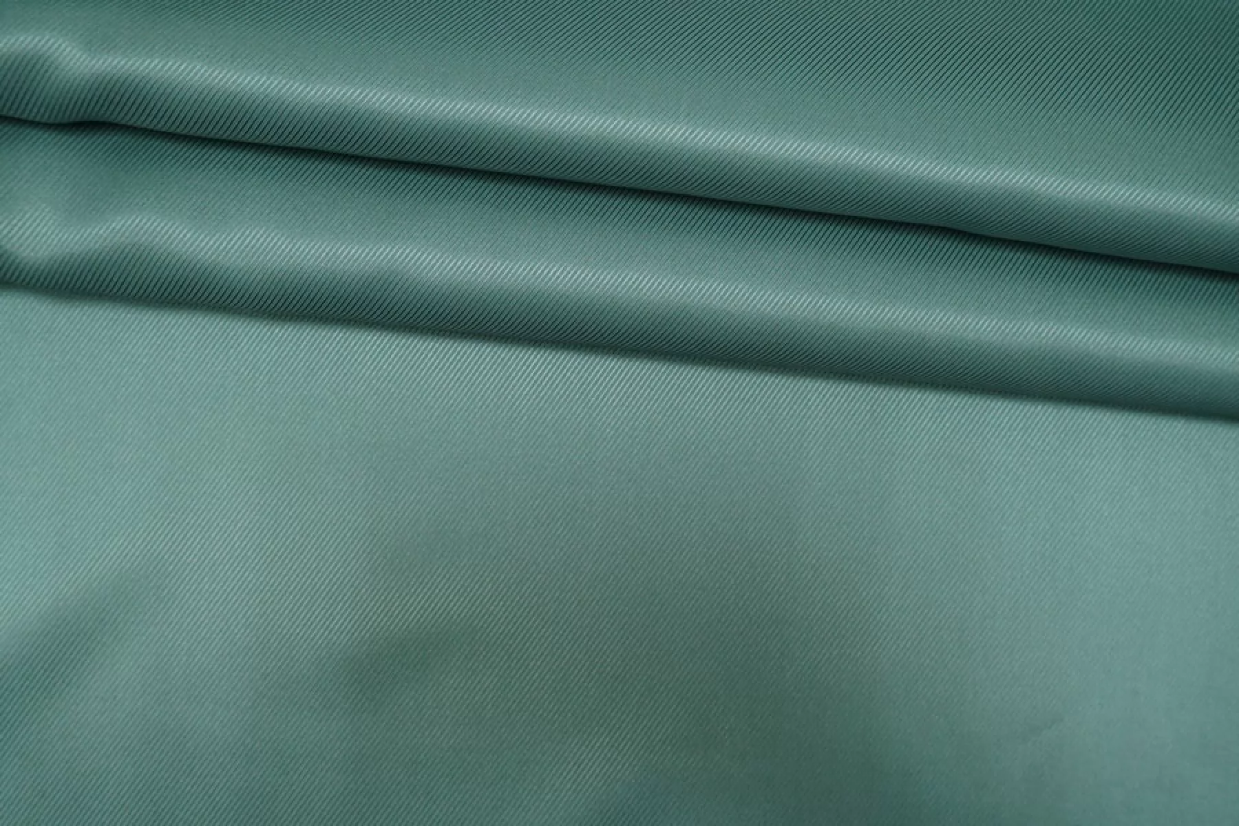 Подкладочная вискоза с ацетатом в сложном оттенке, ближе всего к эвкалиптовому, плетение диагональное с выраженным рубчиком. Гладкая, тонкая, обладает красивым лоском. Не тянется. Мнется. Подойдет как подкладочный материал к костюмной группе, демисезонным пальто, курткам. Обязательно учитывайте возможную усадку 5-10%