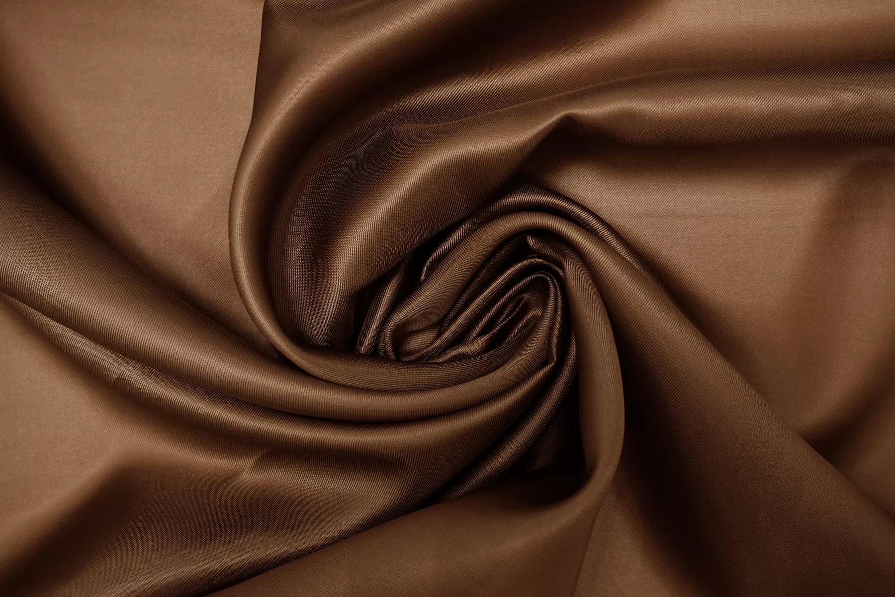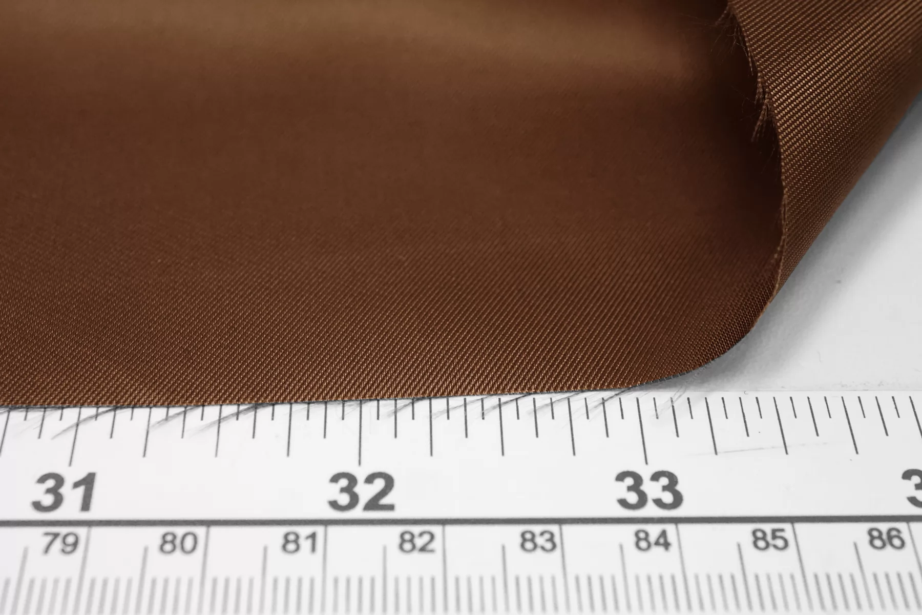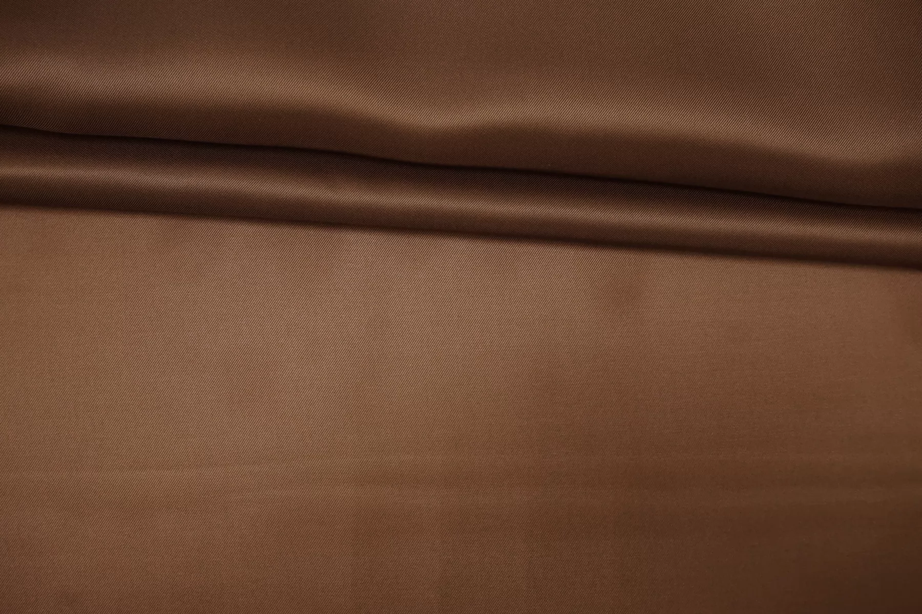 Подкладочная купра в коричневом цвете, плетение саржевое. Гладкая, тонкая, обладает красивым лоском. Не тянется. Мнется. Подойдет как подкладочный материал к костюмной группе, пальто или курткам. Обязательно учитывайте возможную усадку 5-10%