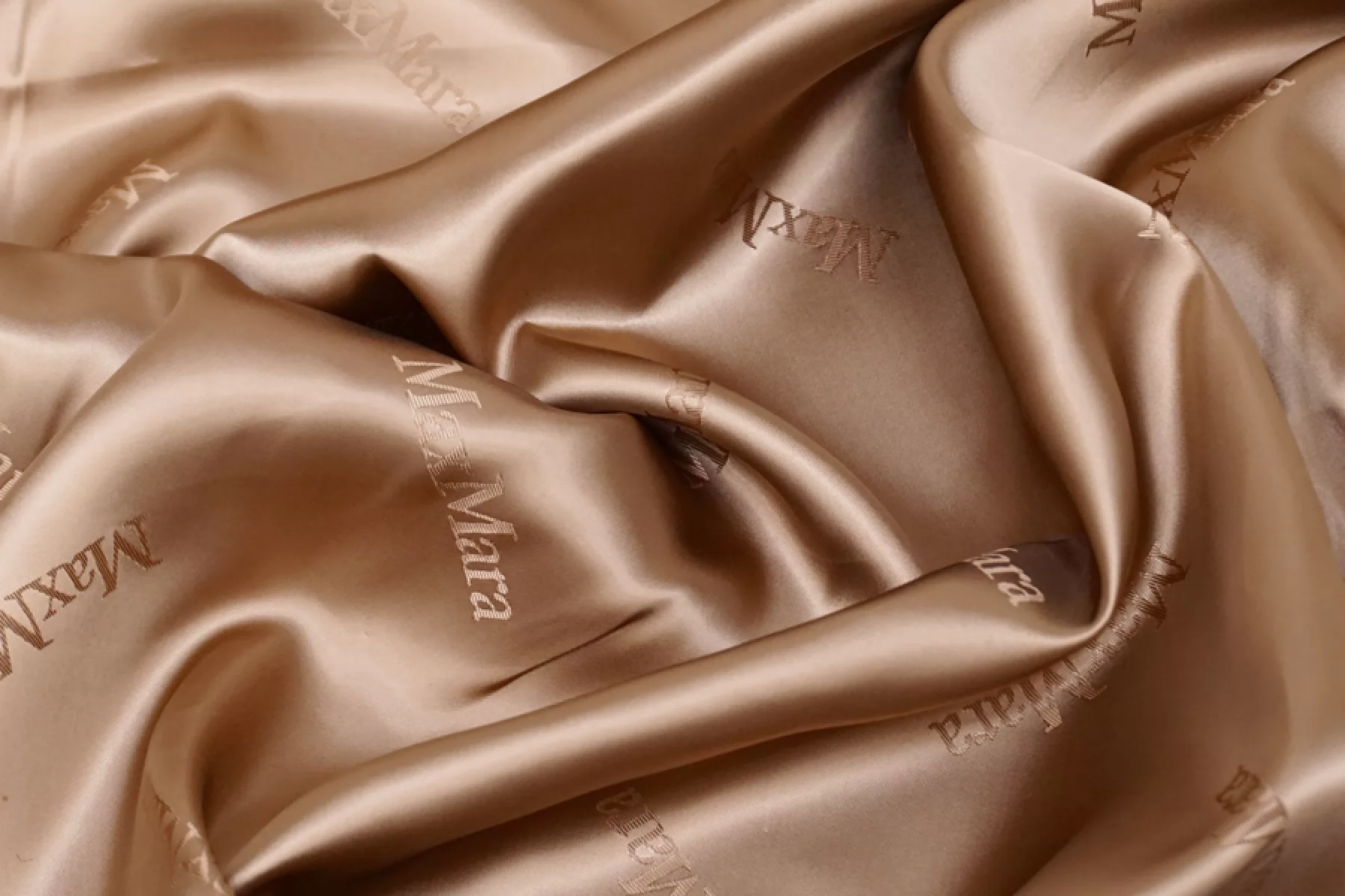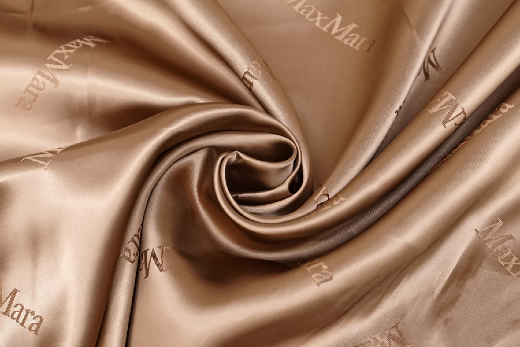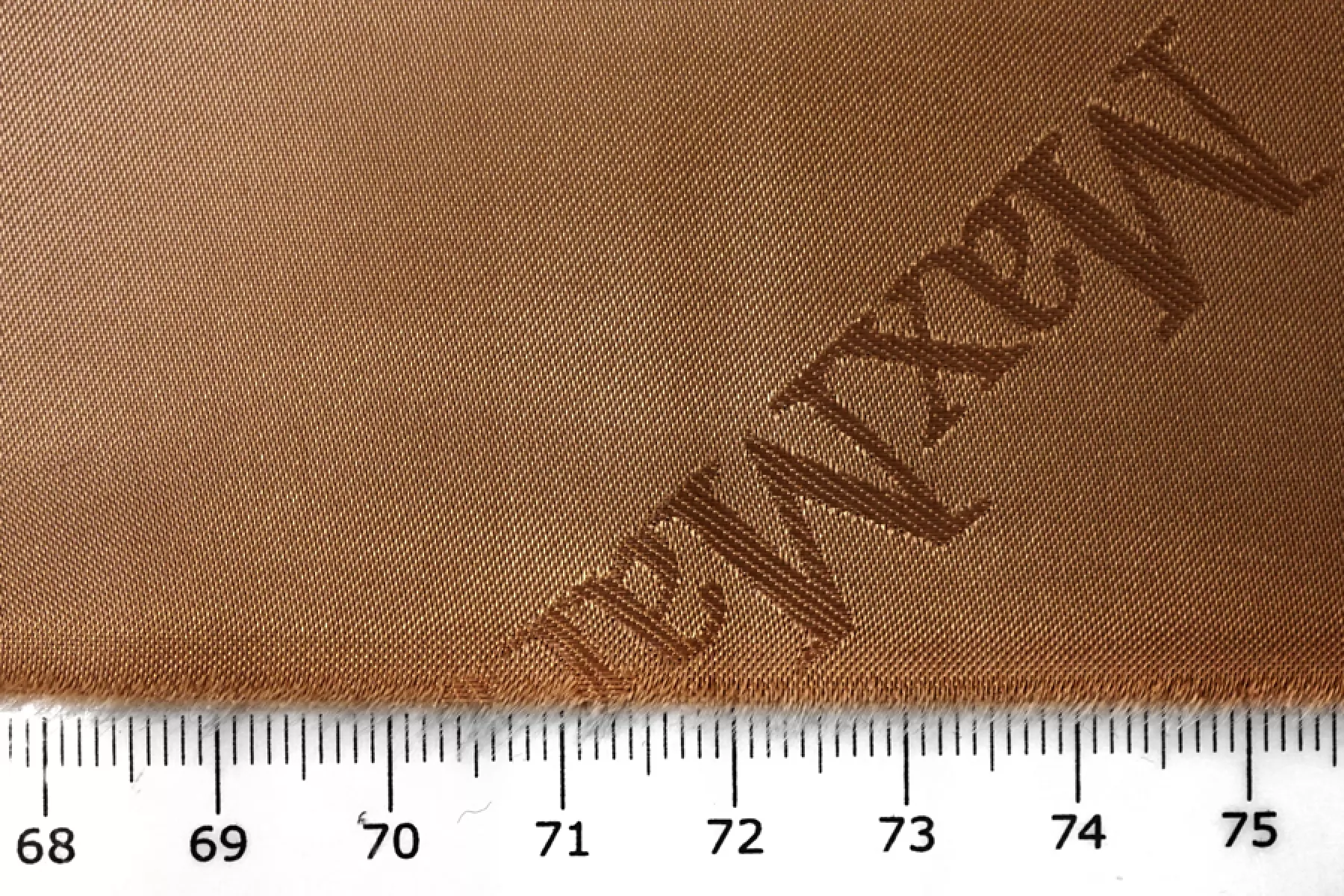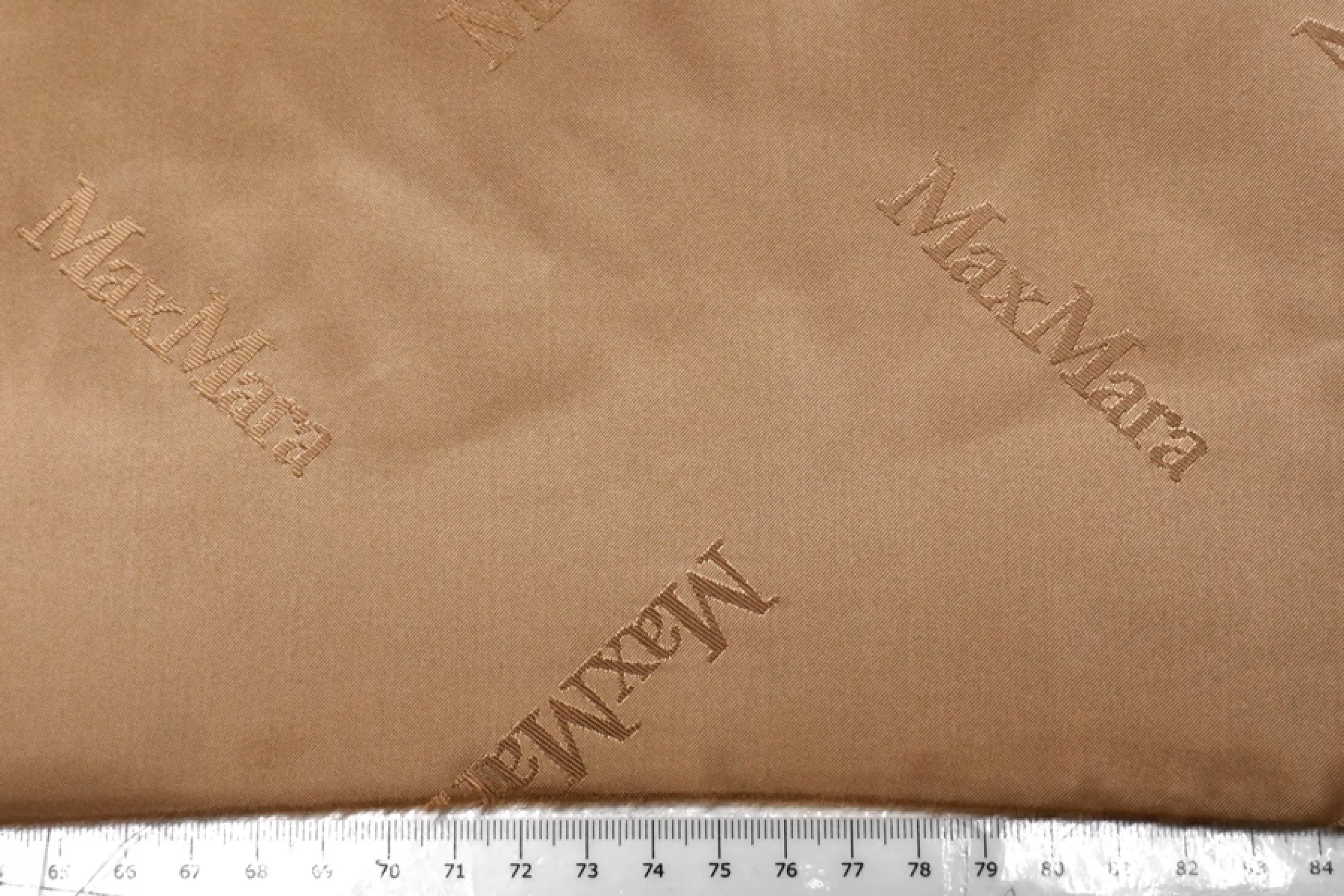 Классная подкладочная вискоза с жаккардовой выработкой в виде надписи MAX MARA, коричневого оттенка, плетение диагональное. Гладкая, шелковистая, плотненькая. Красиво блестит. Просвечивает силуэт. Форму держит. Подойдет для изделий на костюмы: к пиджакам, жилеткам, юбкам и брюкам и на верхнюю группу. Обязательно учитывайте усадку 5-10%.