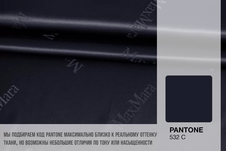 Классная подкладочная вискоза с жаккардовой выработкой в виде надписи MAX MARA, в тёмно-синем цвете, плетение близкое к атласному. Гладкая, шелковистая, плотненькая. Красиво атласный лоск. Просвечивает силуэт. Форму держит. Подойдет для костюмно-пальтовой группы, курток, иск.шуб. Обязательно учитывайте усадку 5-10%.