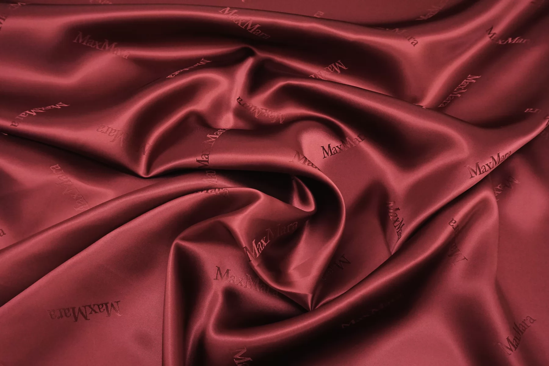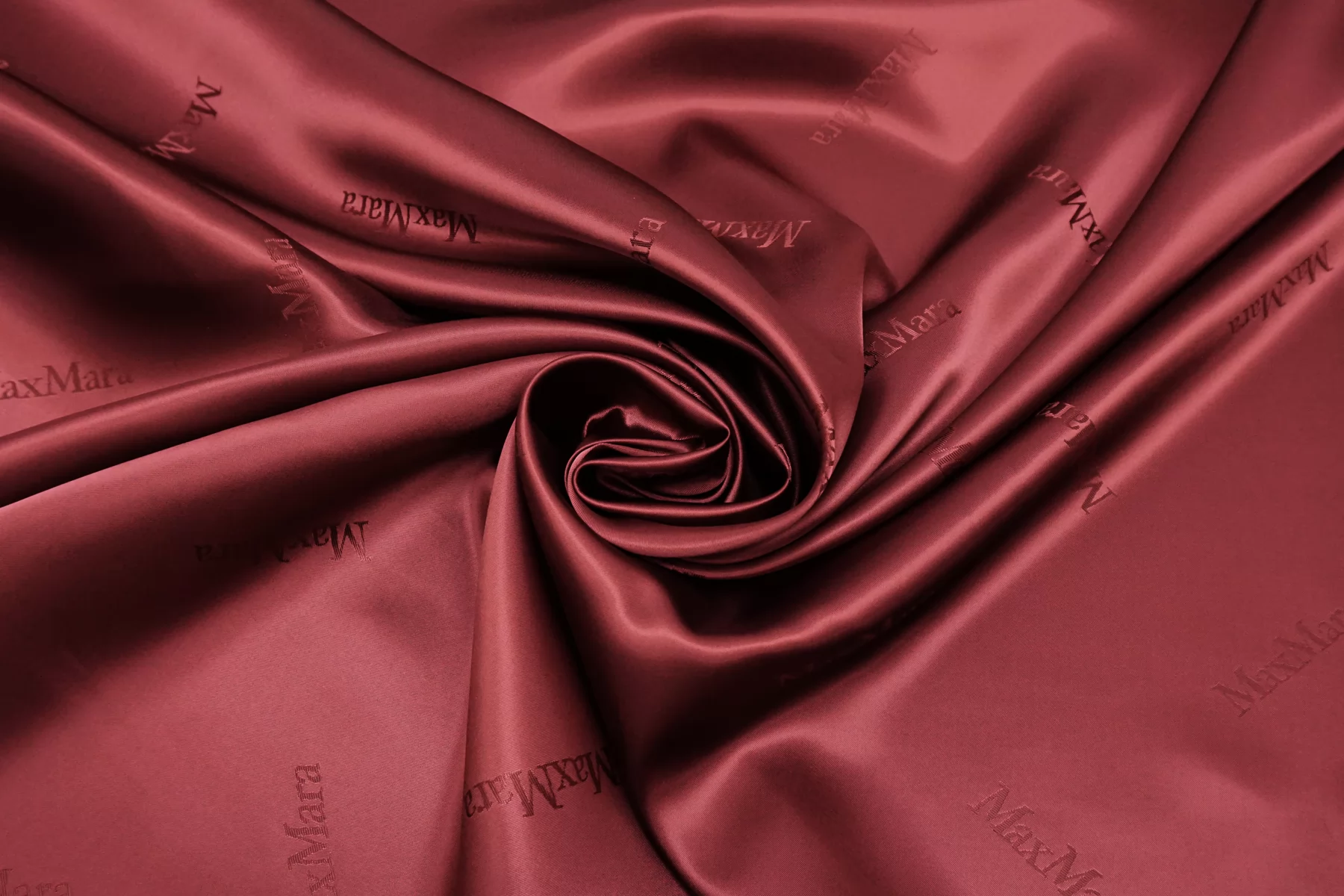 Классная подкладочная вискоза с жаккардовой выработкой MAX MARA насыщенного темно-красного цвета, плетение близкое к атласному. Гладкая, шелковистая, плотненькая. Красиво атласный лоск. Просвечивает силуэт. Форму держит. Подойдет для костюмно-пальтовой группы, курток, иск.шуб. Обязательно учитывайте усадку 5-10%.