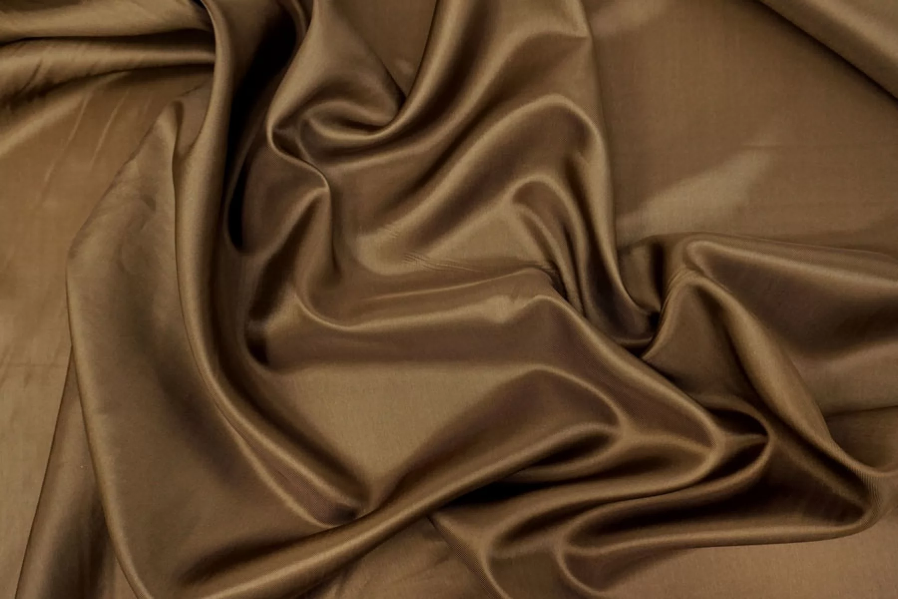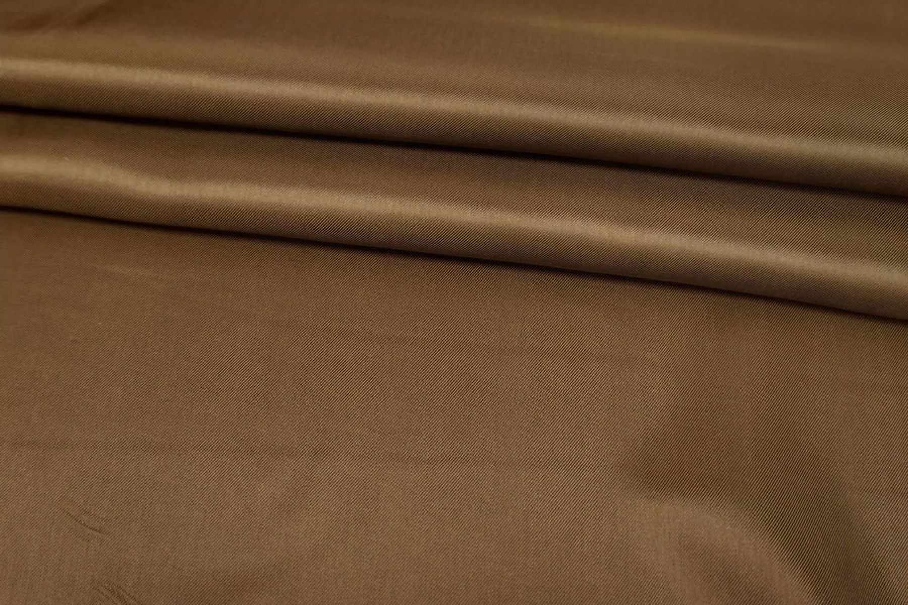 Подкладочная итальянская вискоза с ацетатом диагонального плетения в интересном орехово-коричневом оттенке. Шелковистая, тактильно приятная, мягкая, гладкая, с красивым лоском. Немного просвечивает силуэт. Подойдет для изделий на костюмы: к пиджакам, жилеткам, юбкам и брюкам и на верхнюю группу. Обязательно учитывайте усадку 5-10%.