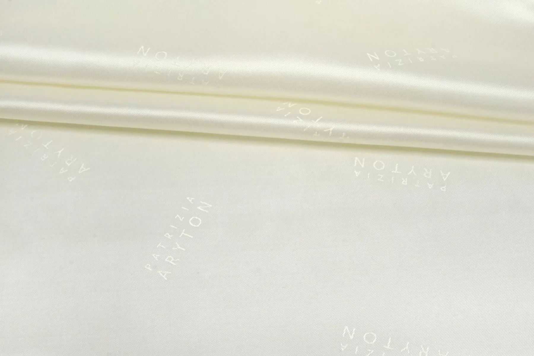 Внимание! Присутствуют чёрные полоски см. фото. Жаккардовая подкладочная вискоза нежного сливочно-белого цвета, диагонального плетения с выработкой Patrizia Aryton. Тактильно приятная, мягкая. Достаточно тонкая и легкая. Не тянется. Немного мнется. Отличный вариант подкладки к костюмной группе, легким пальто, курткам, тренчам. Обязательно учитывайте возможную усадку 5-10%