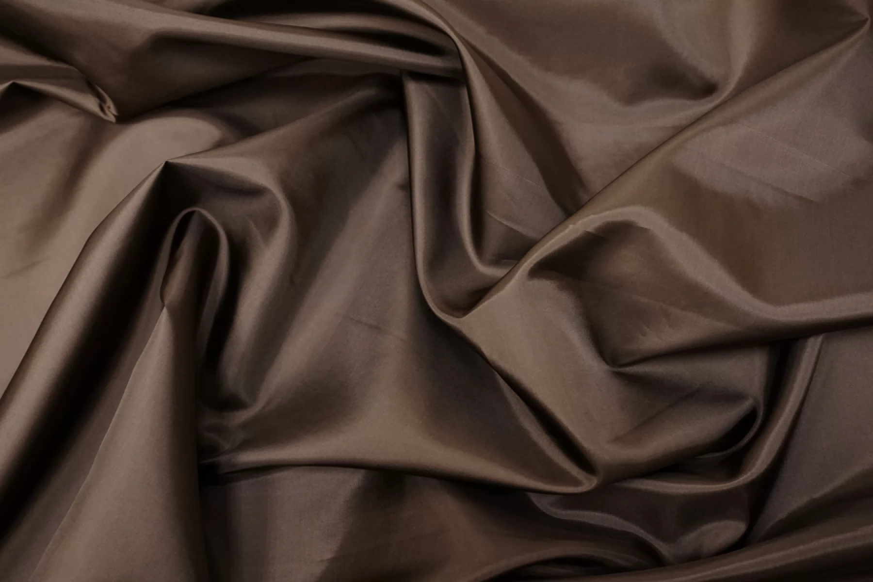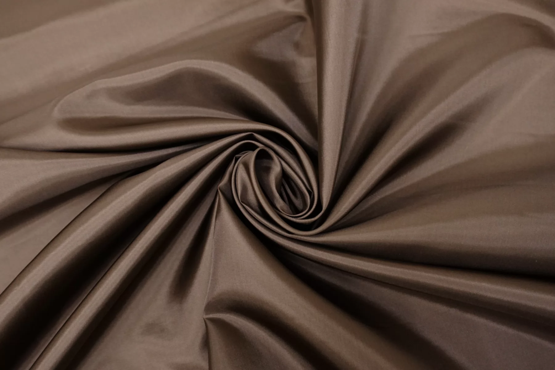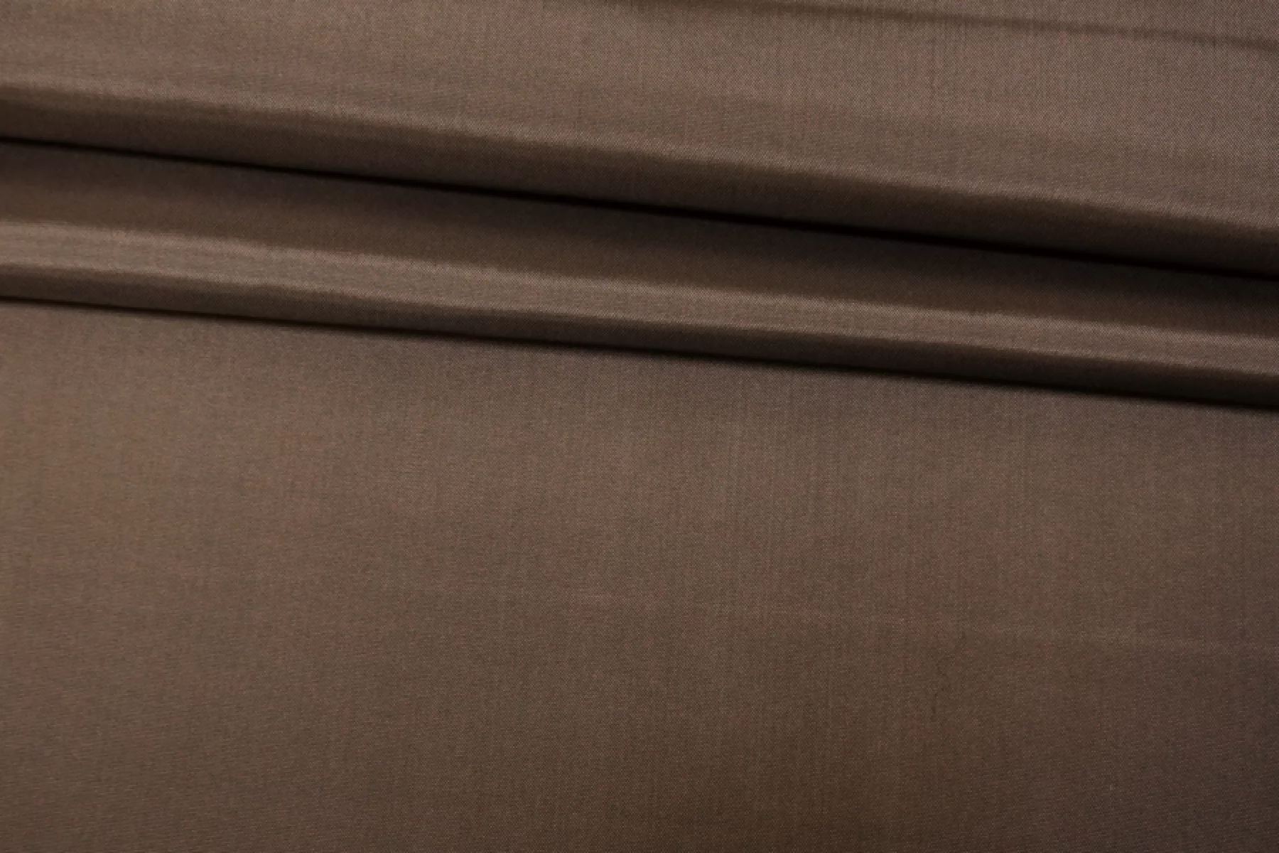 Подкладочная итальянская вискоза диагонального плетения в серовато-коричневом оттенке. Шелковистая, тактильно приятная, мягкая, с красивым блеском. Совсем немного просвечивает силуэт, если смотреть на просвет. Подойдет для изделий на костюмы: к пиджакам, жилеткам, юбкам и брюкам, а также на верхнюю группу. Обязательно учитывайте усадку 5-10%.