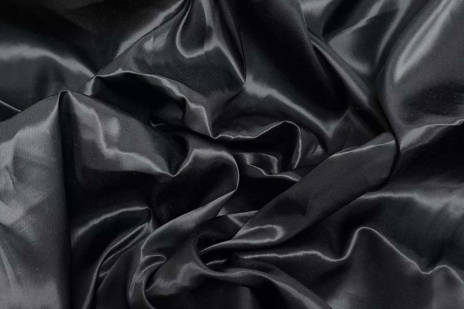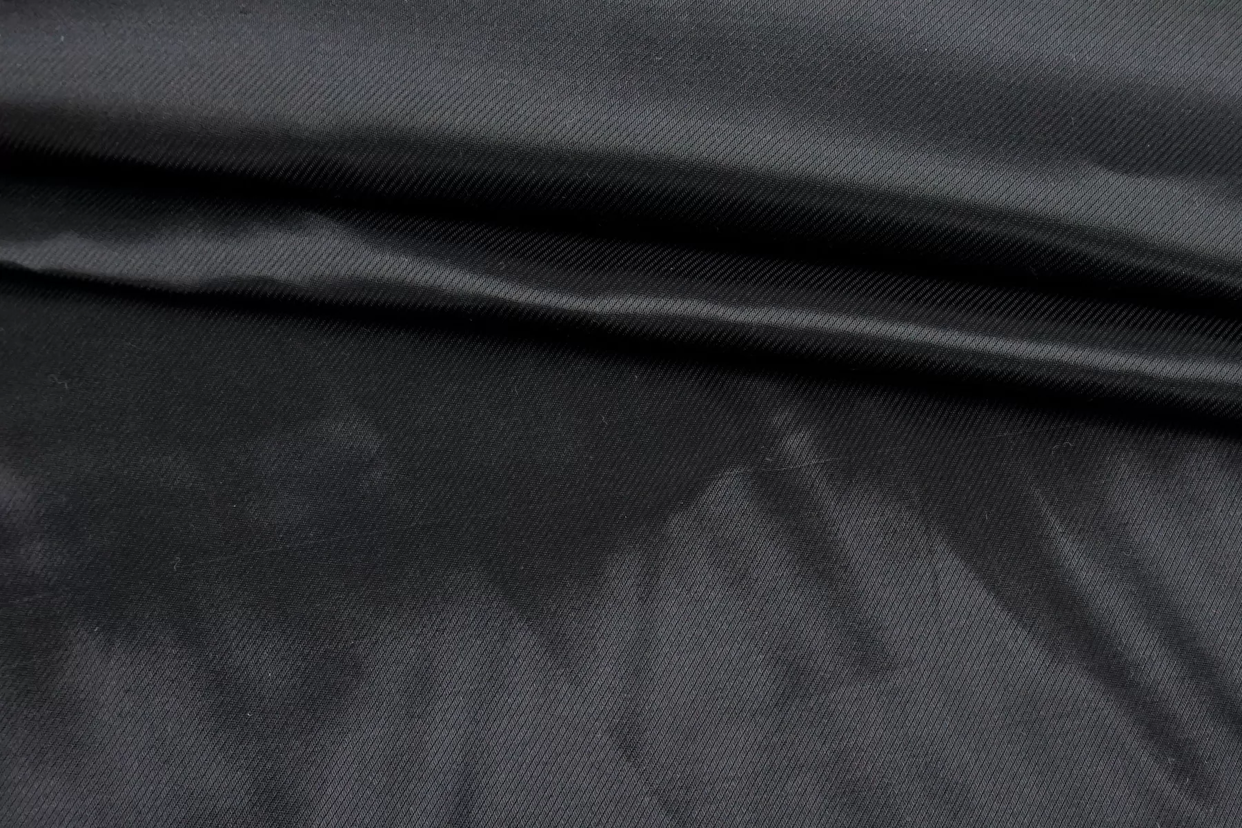 Подкладочная итальянская вискоза с хлопком диагонального плетения чёрного цвета (хлопковые нити тёмно-серые). Шелковистая, тактильно приятная, с красивым лоском. Не просвечивает. Сминается. Форму держит. Подойдет для верхней одежды и костюмов, юбок. Обязательно учитывайте усадку 5-10%.